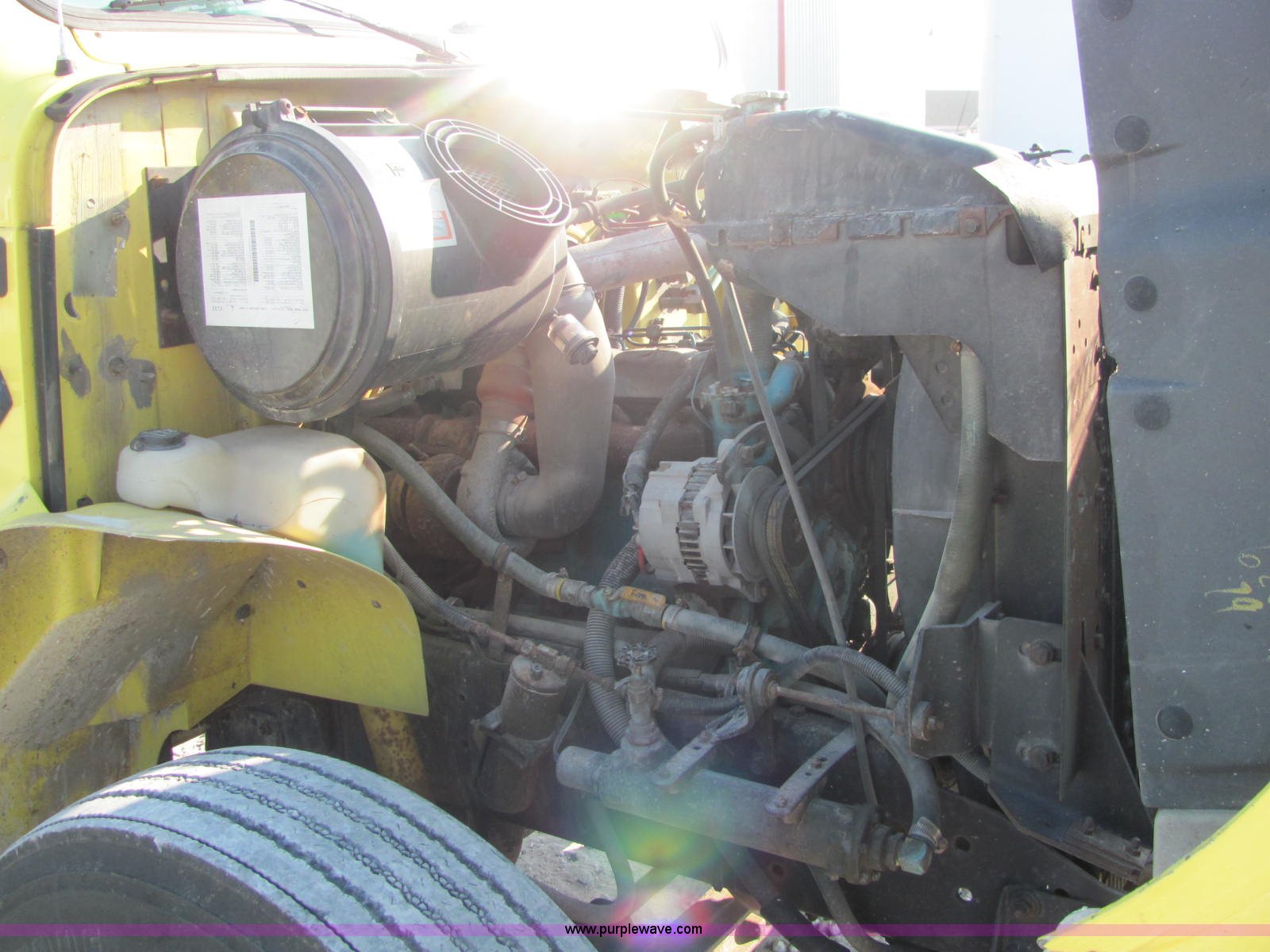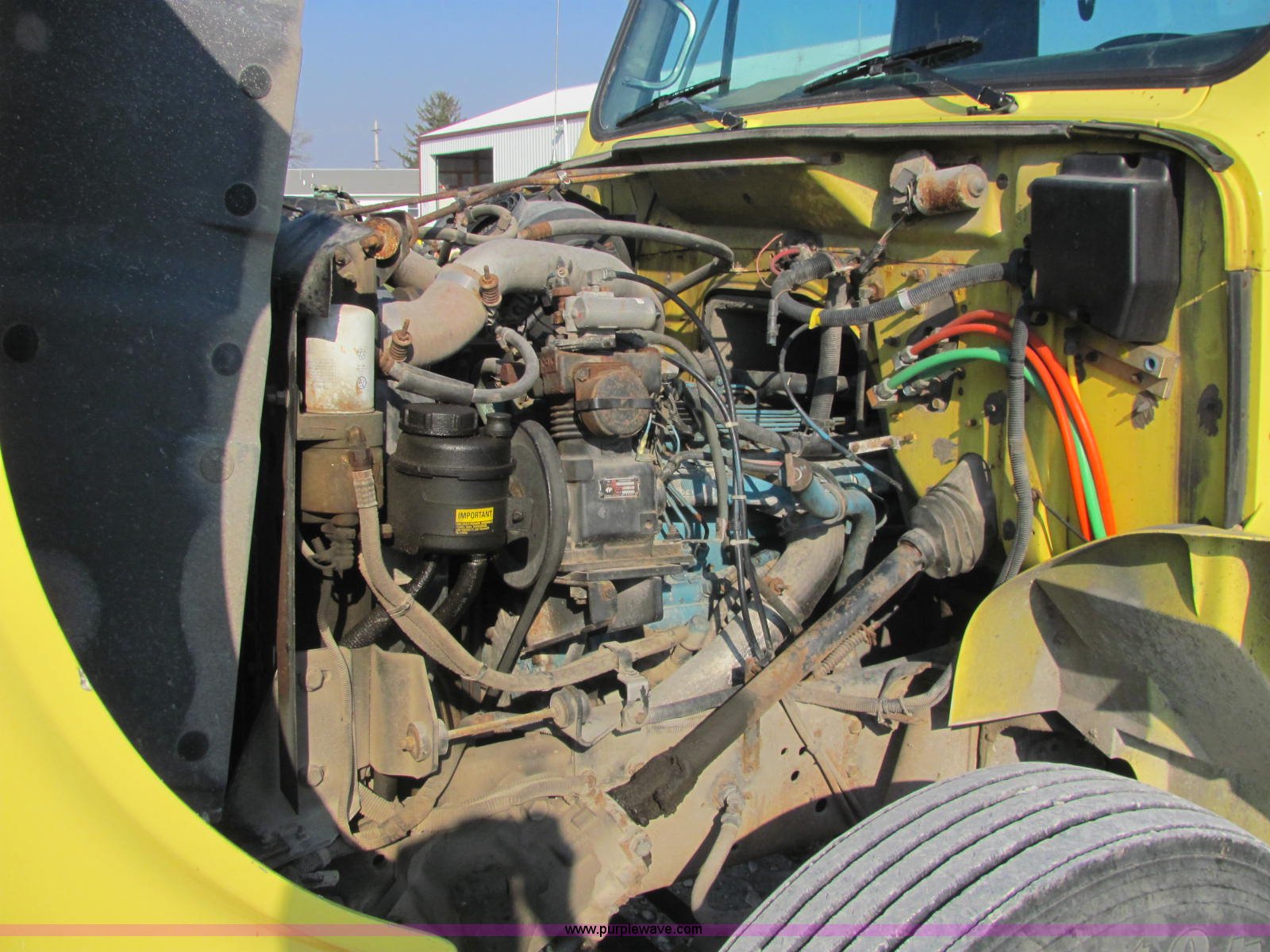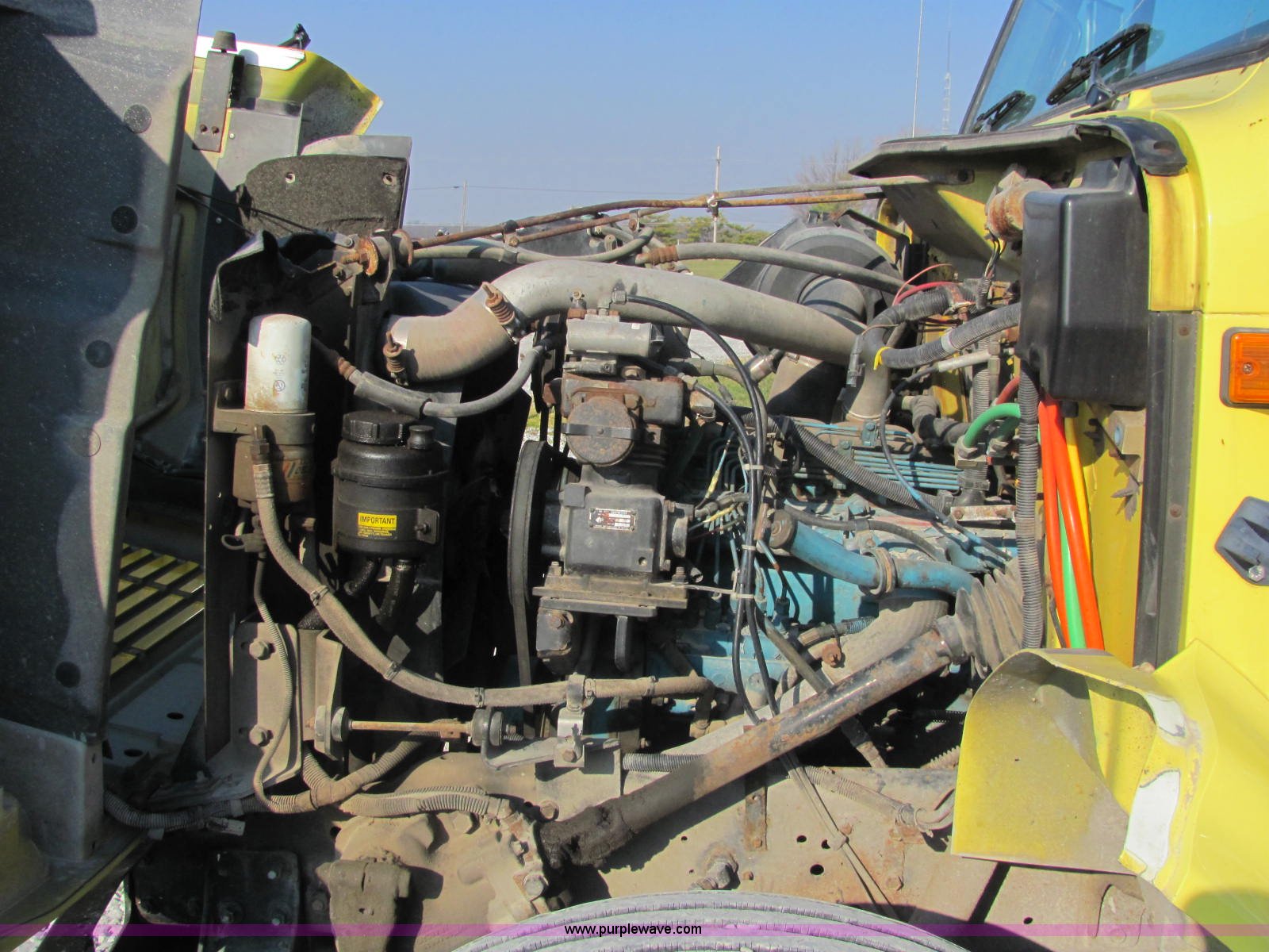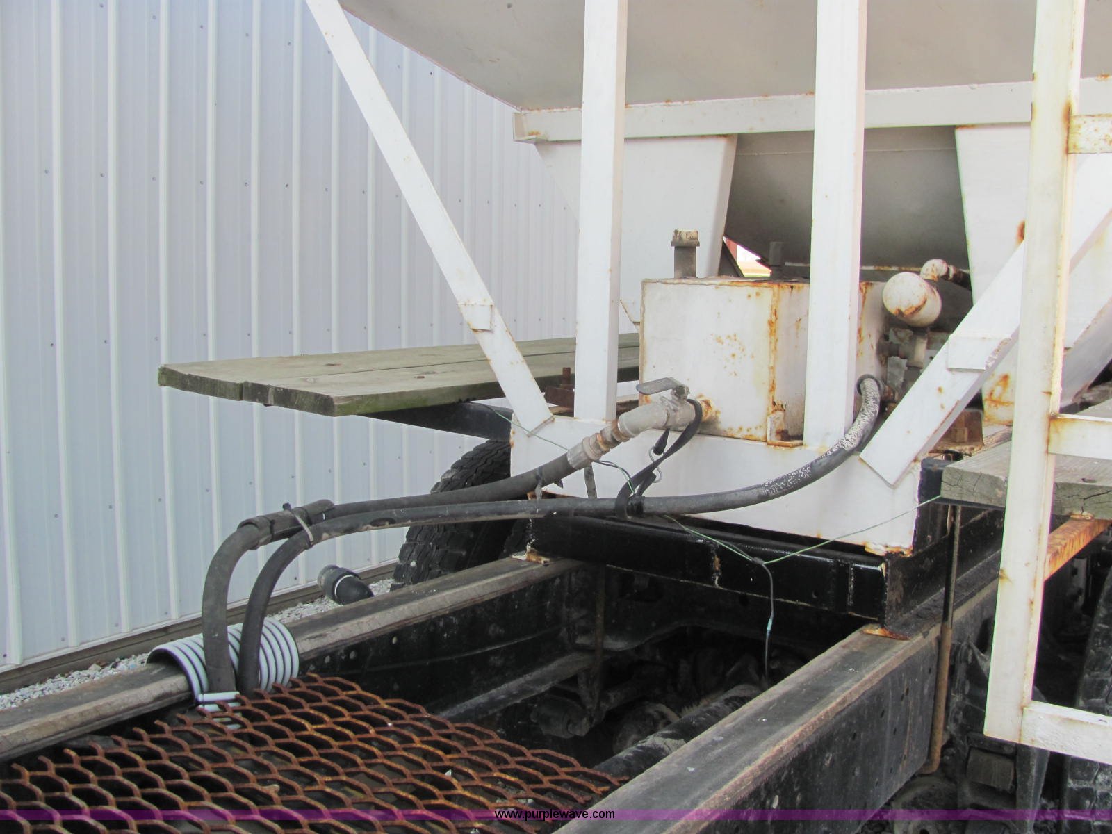 Purple Wave is selling a used Fertilizer or Feed Delivery Truck in Indiana. This item is a 1994 International 4900 fertilizer tender truck with the following: 370,200 miles on odometer, International DT466 7.6L L6 diesel engine, Five speed manual transmission, AC and heat, AM/FM/cassette, Maxon CB radio, Block heater, Dual 100 gallon fuel tanks, Western 14' tender bed, 16 ton capacity, Single lever hydraulic control, 10" diameter auger, (2) access ladders, Shur-Lok rollover tarp, Pin hitch, PTO, Wet kit, Spring suspension, Air brakes, 276" wheelbase, 295/75R22.5 tires, GVWR 47,000 lbs, FAWR 12,000 lbs, IAWR 17,000 lbs, RAWR 18,000 lbs, Stainless steel tank and plumbing will be removed and replaced with tender bed, Unit# 47625