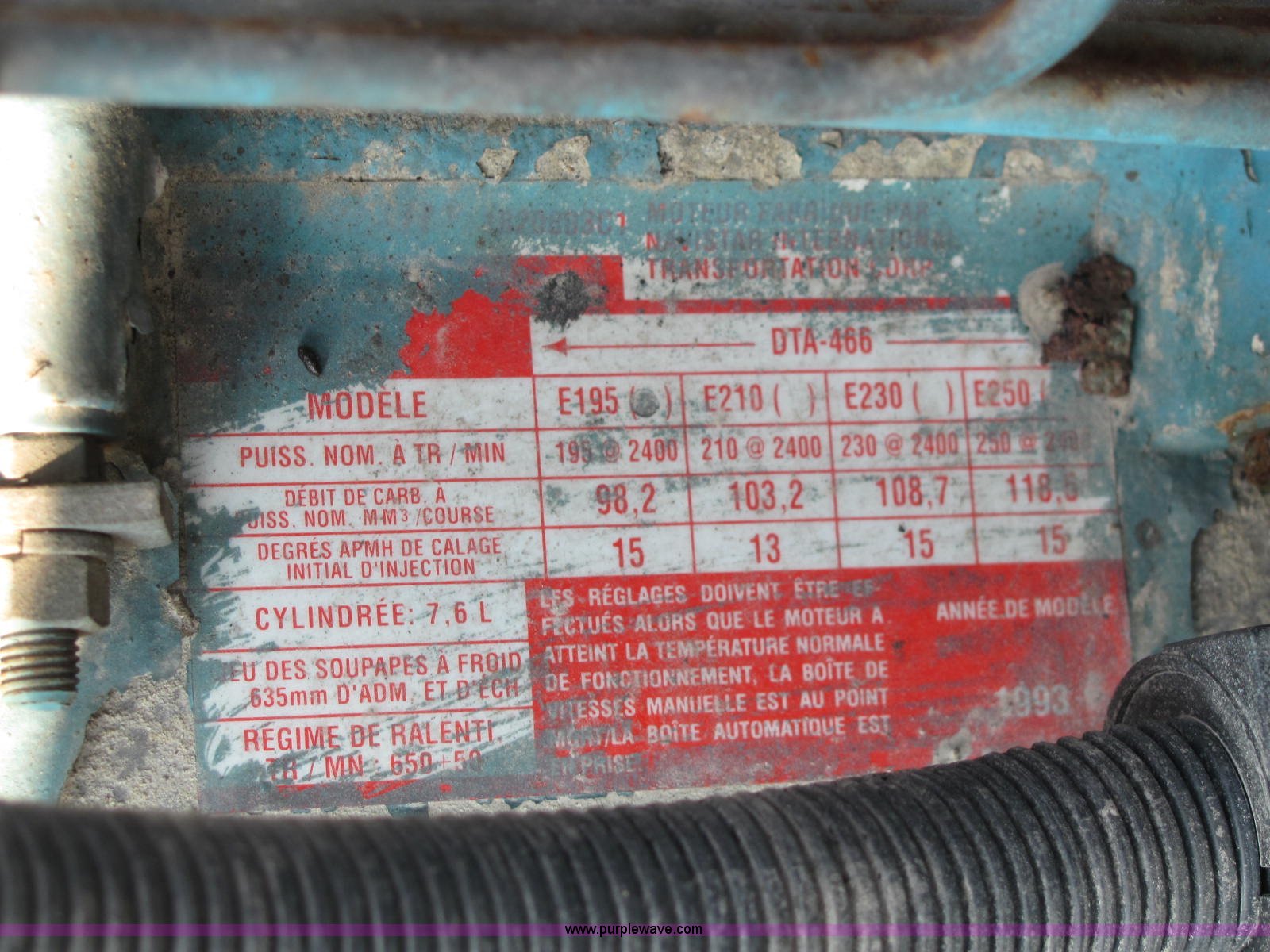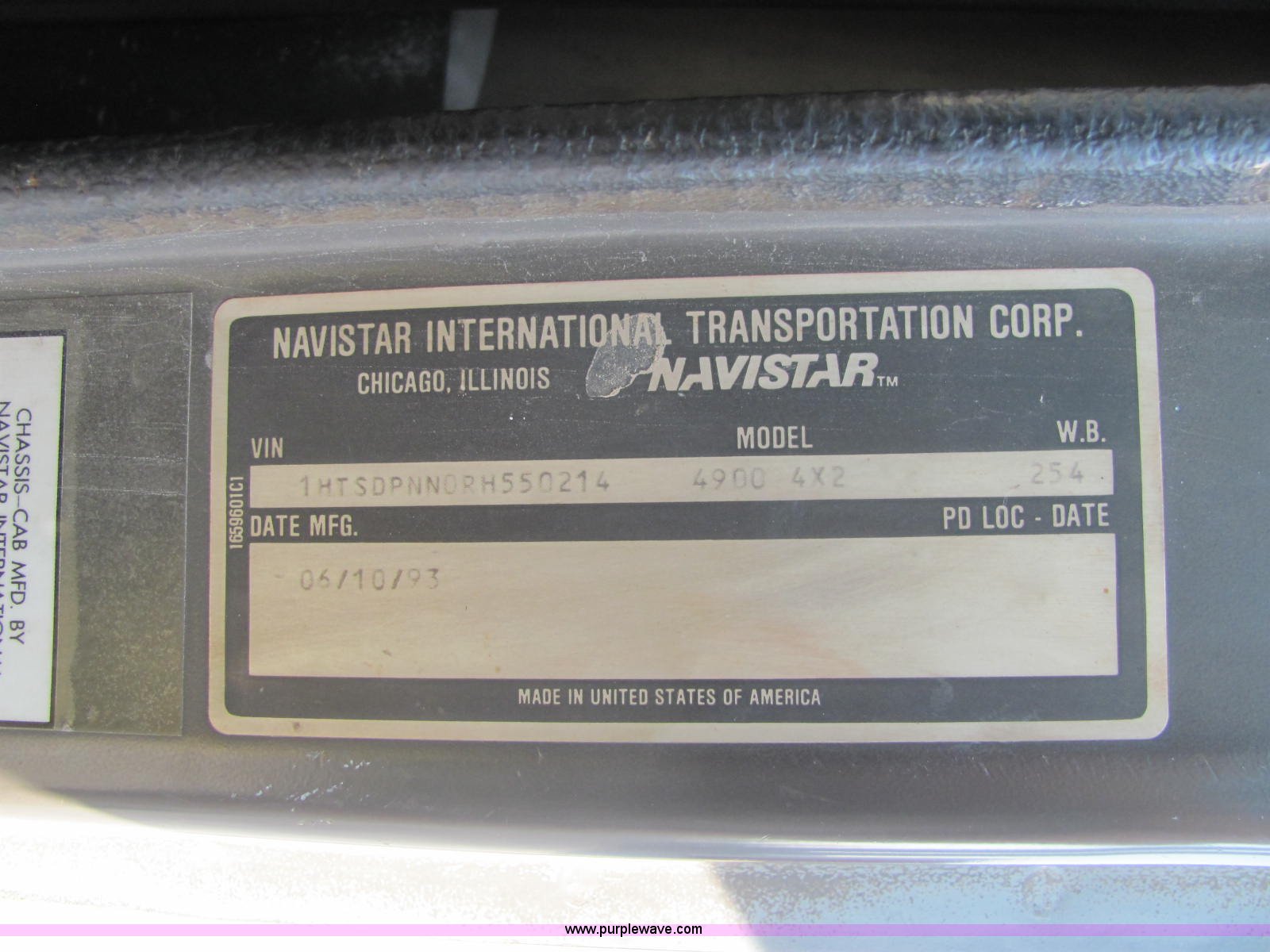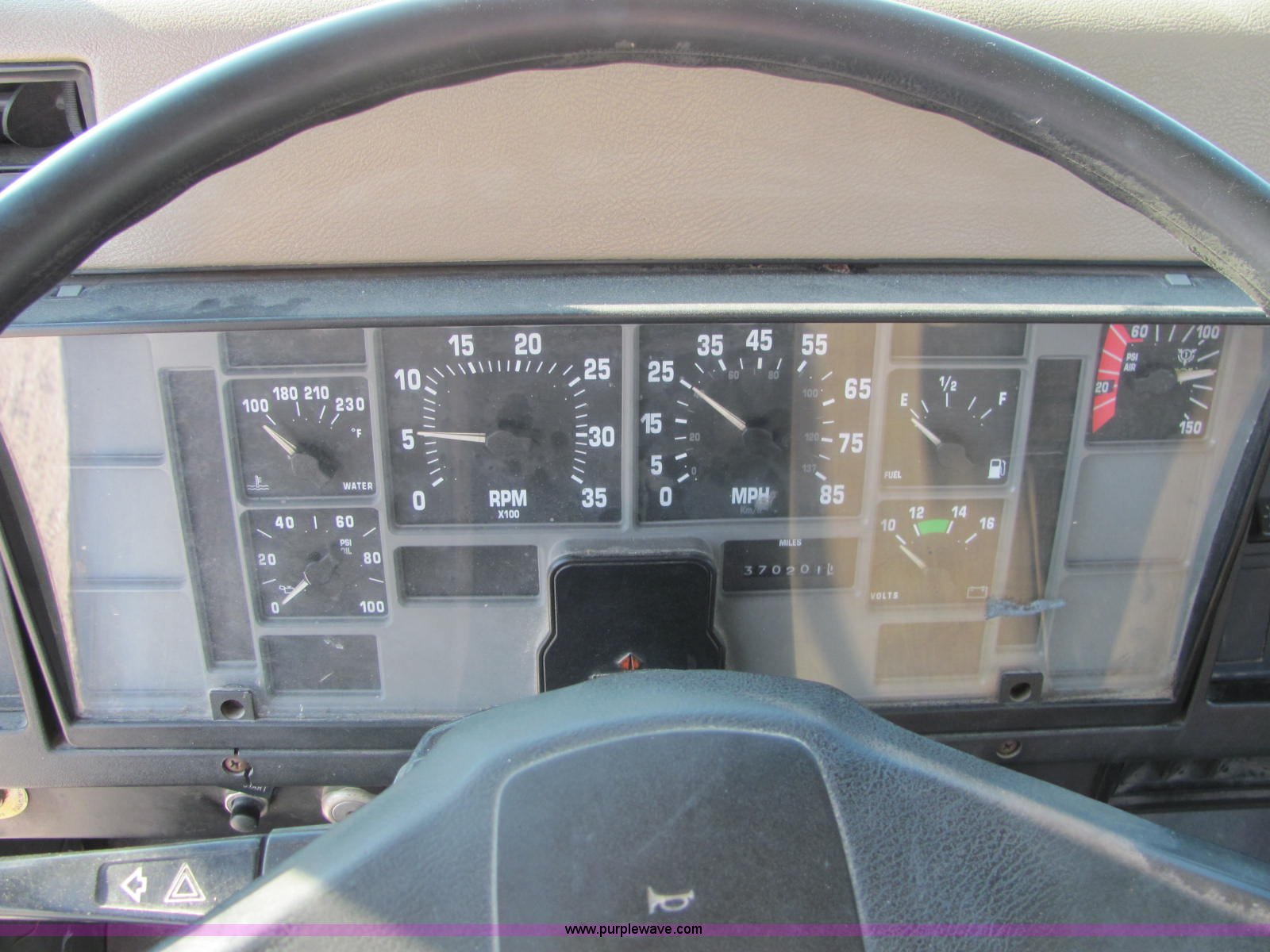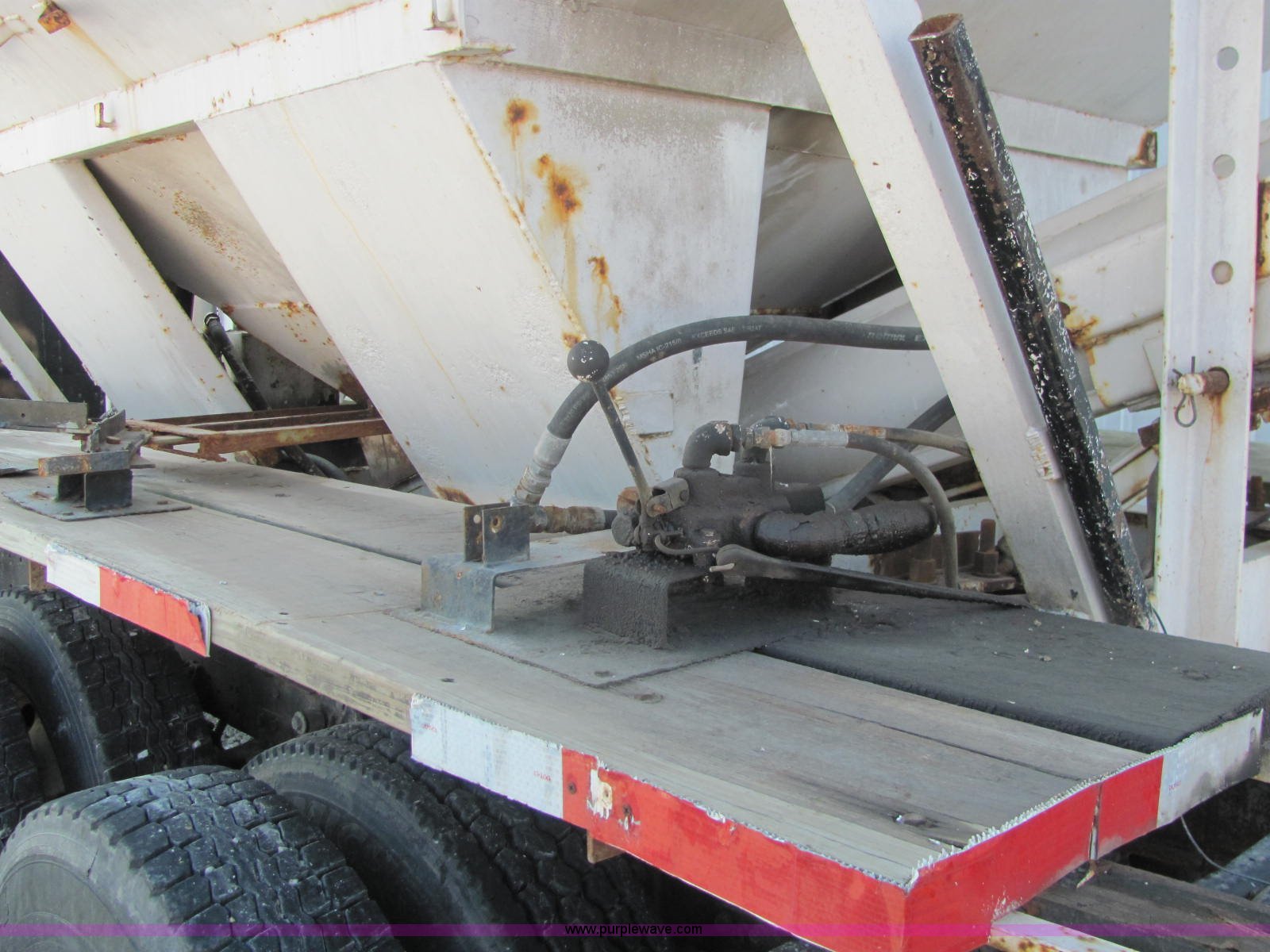 Purple Wave is selling a used Fertilizer or Feed Delivery Truck in Indiana. This item is a 1994 International 4900 fertilizer tender truck with the following: 370,200 miles on odometer, International DT466 7.6L L6 diesel engine, Five speed manual transmission, AC and heat, AM/FM/cassette, Maxon CB radio, Block heater, Dual 100 gallon fuel tanks, Western 14' tender bed, 16 ton capacity, Single lever hydraulic control, 10" diameter auger, (2) access ladders, Shur-Lok rollover tarp, Pin hitch, PTO, Wet kit, Spring suspension, Air brakes, 276" wheelbase, 295/75R22.5 tires, GVWR 47,000 lbs, FAWR 12,000 lbs, IAWR 17,000 lbs, RAWR 18,000 lbs, Stainless steel tank and plumbing will be removed and replaced with tender bed, Unit# 47625
