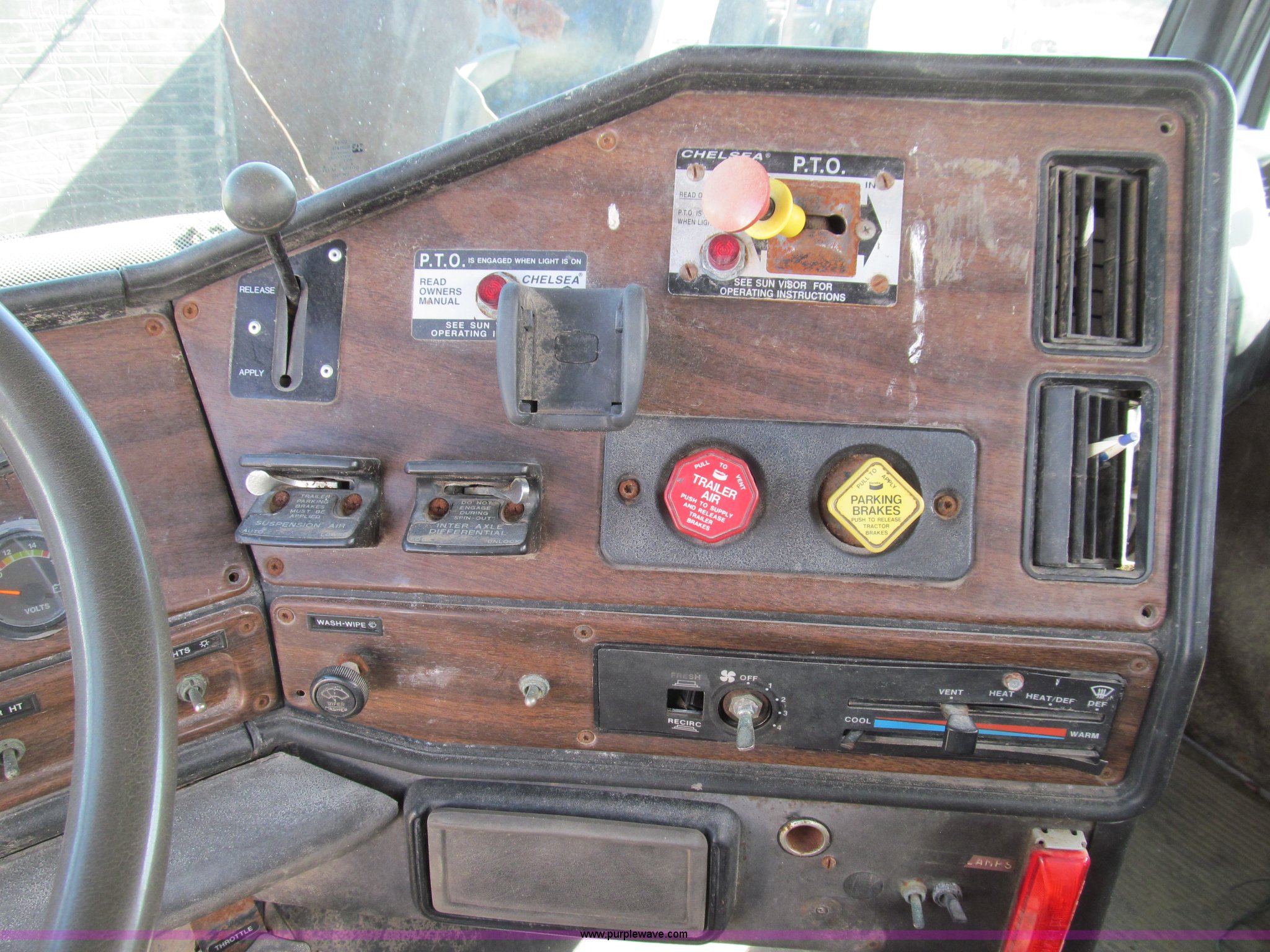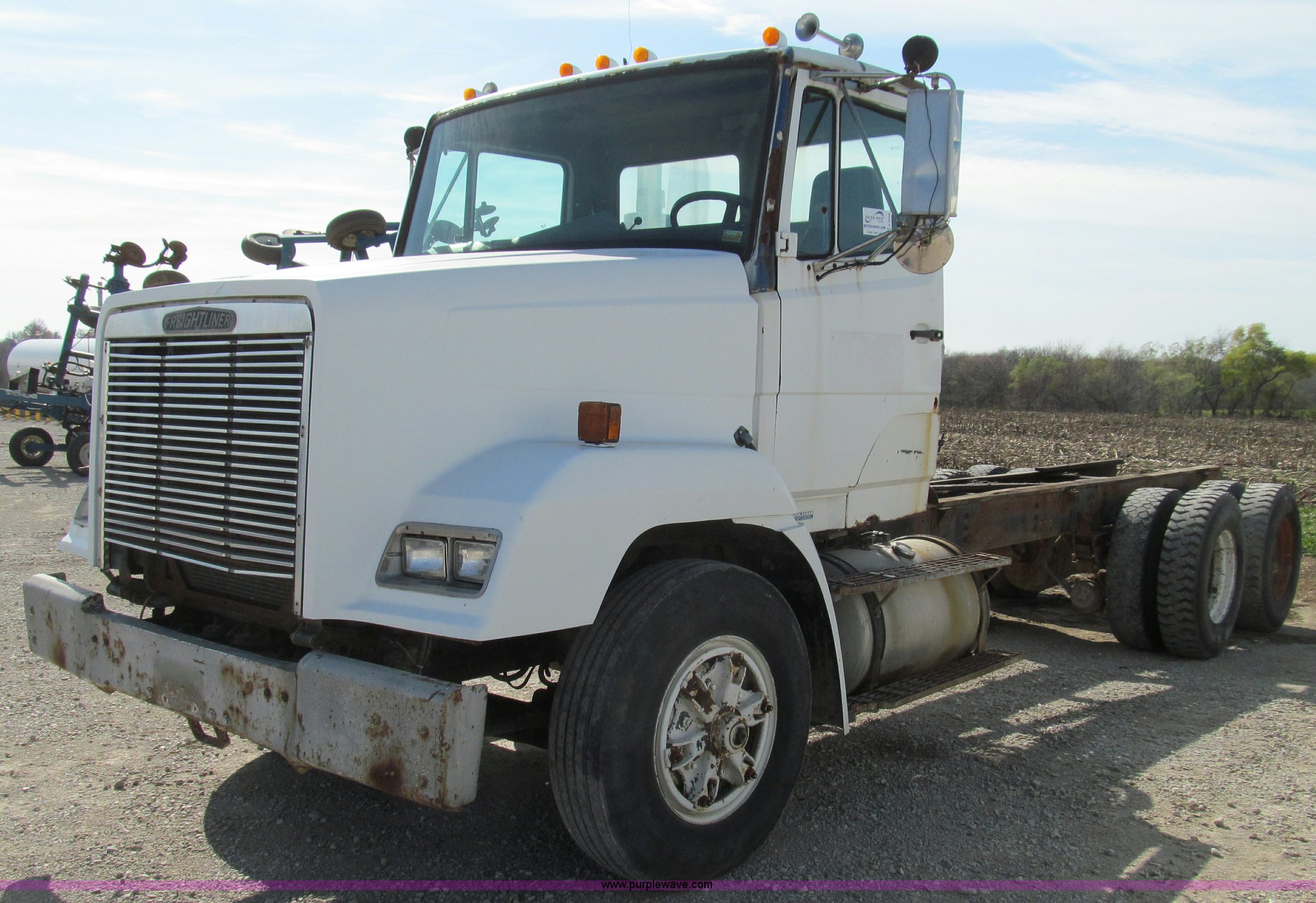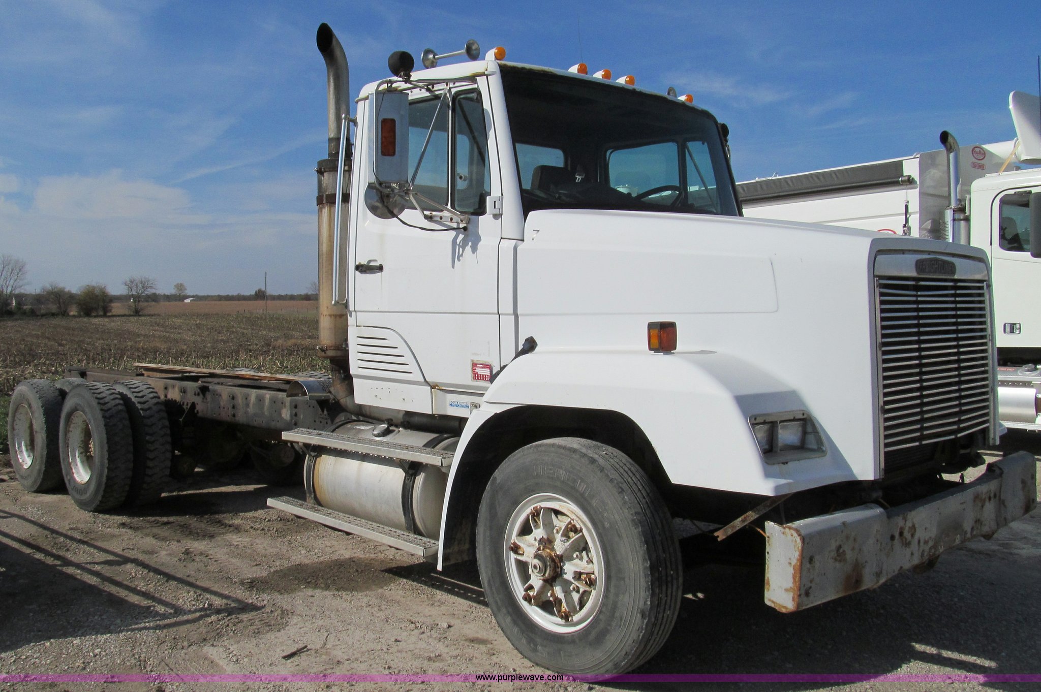 Purple Wave is selling a used Truck Chassis in Missouri. This item is a 1989 Freightliner FLC11264 semi truck with the following: 561,957 miles on odometer, Cummins STA110 diesel engine, 210 HP, Eaton Fuller nine speed manual transmission, Twin screw, Heat, AM/FM/cassette, Air suspension seat, Locking differential, Dual 70 gallon fuel tanks, Air brakes, Air suspension, 11R22.5 tires
