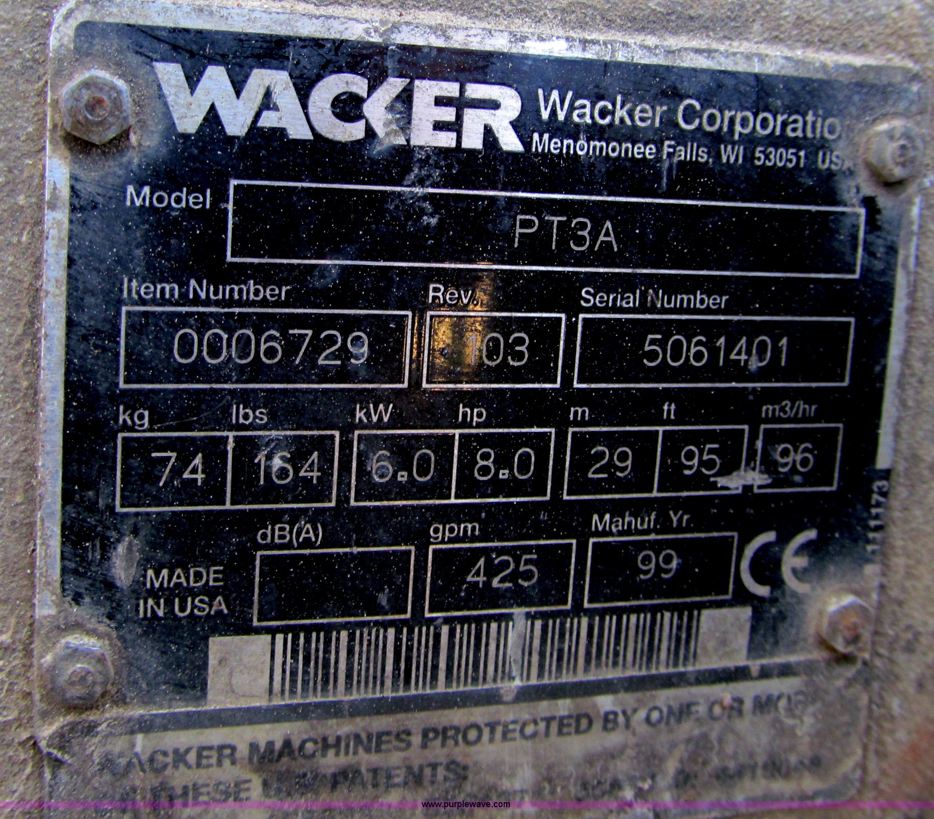 Wacker PT3A 3" water pump has sold in Winona, Minnesota for $412.50. Item F5605 sold on December 20th, 2012.