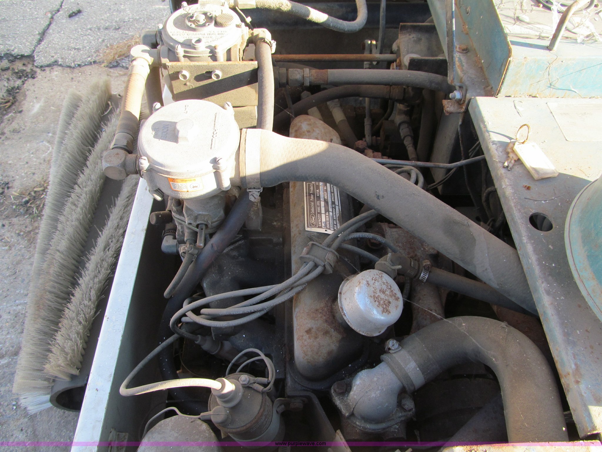 Purple Wave is selling a used Sweeper in Minnesota. This item is a Tennant 265 sweeper with the following: 3,092 hours on meter, Ford 2274E 1.6L four cylinder LP engine, Hydrostatic drive, 13" side broom, 40" main broom, Tennant scrubbing attachment, 38"W, Unknown condition, Serial SCR-15192, Three tires, GVWR 3,650 lbs, Non-operational, Serial 2653110