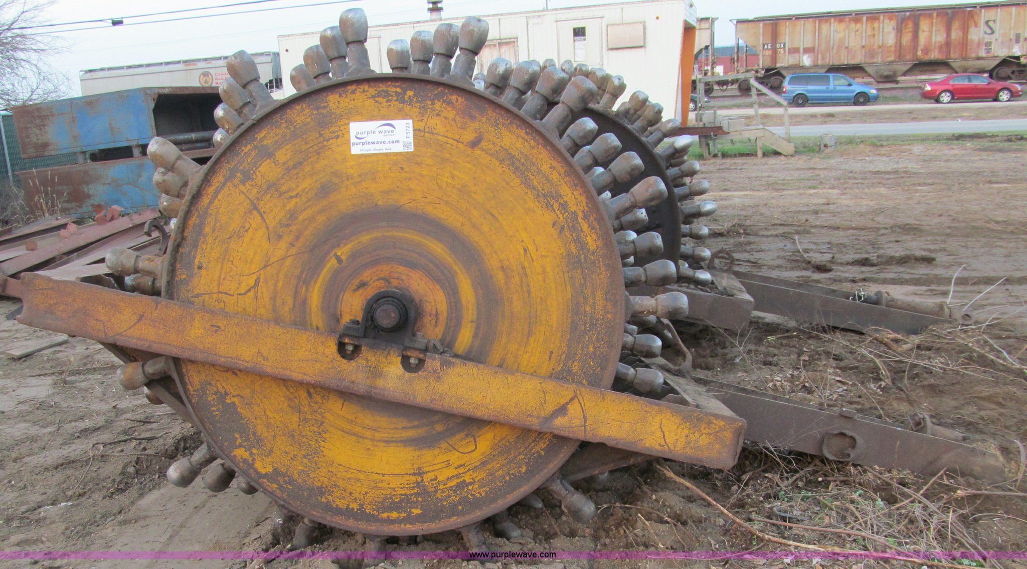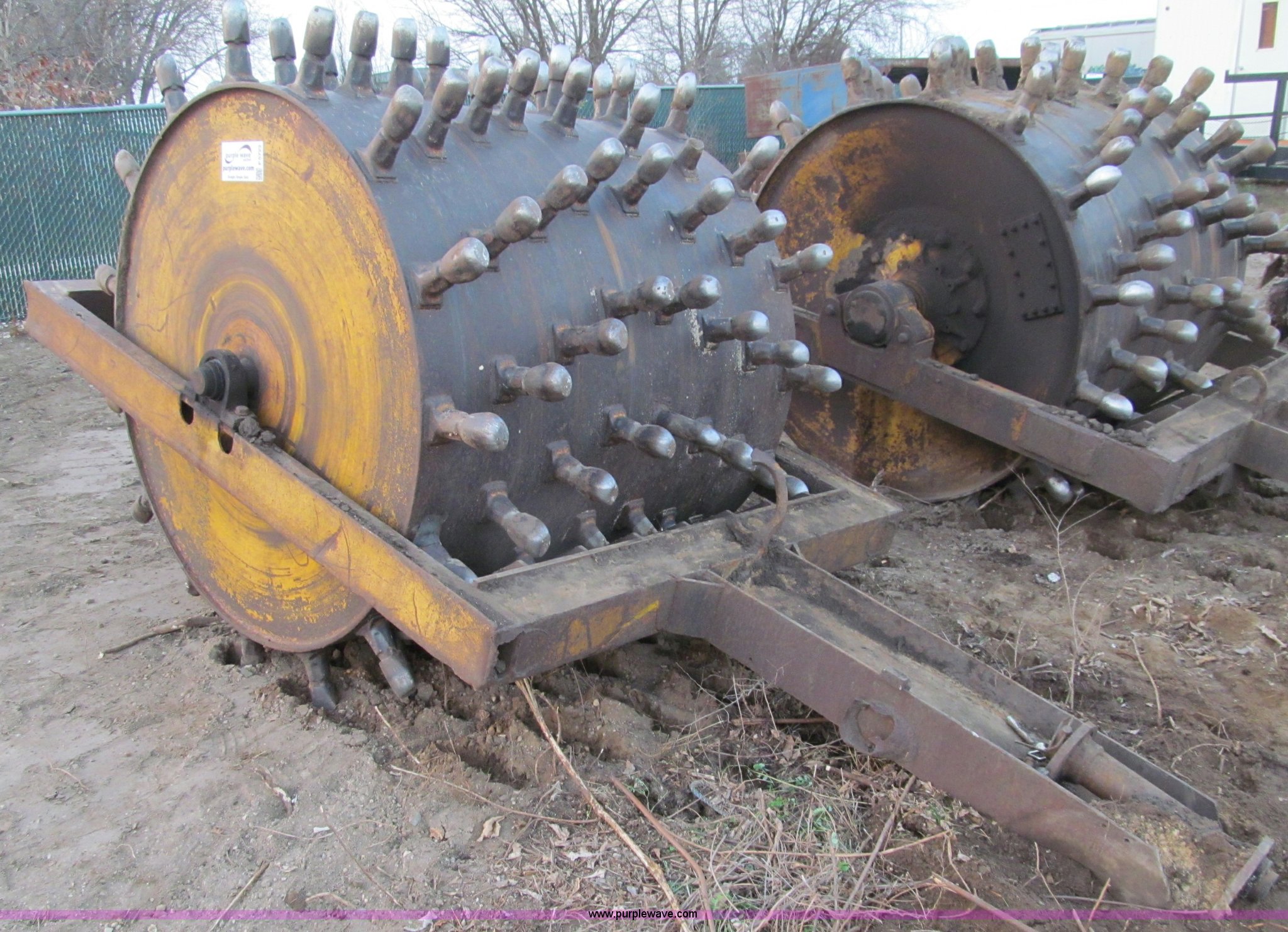 Purple Wave is selling a used Roller or Compactor Attach. in Minnesota. This item is a Tow behind pad foot compactor with the following: 60"W x 60"D drum, Front hitch broken