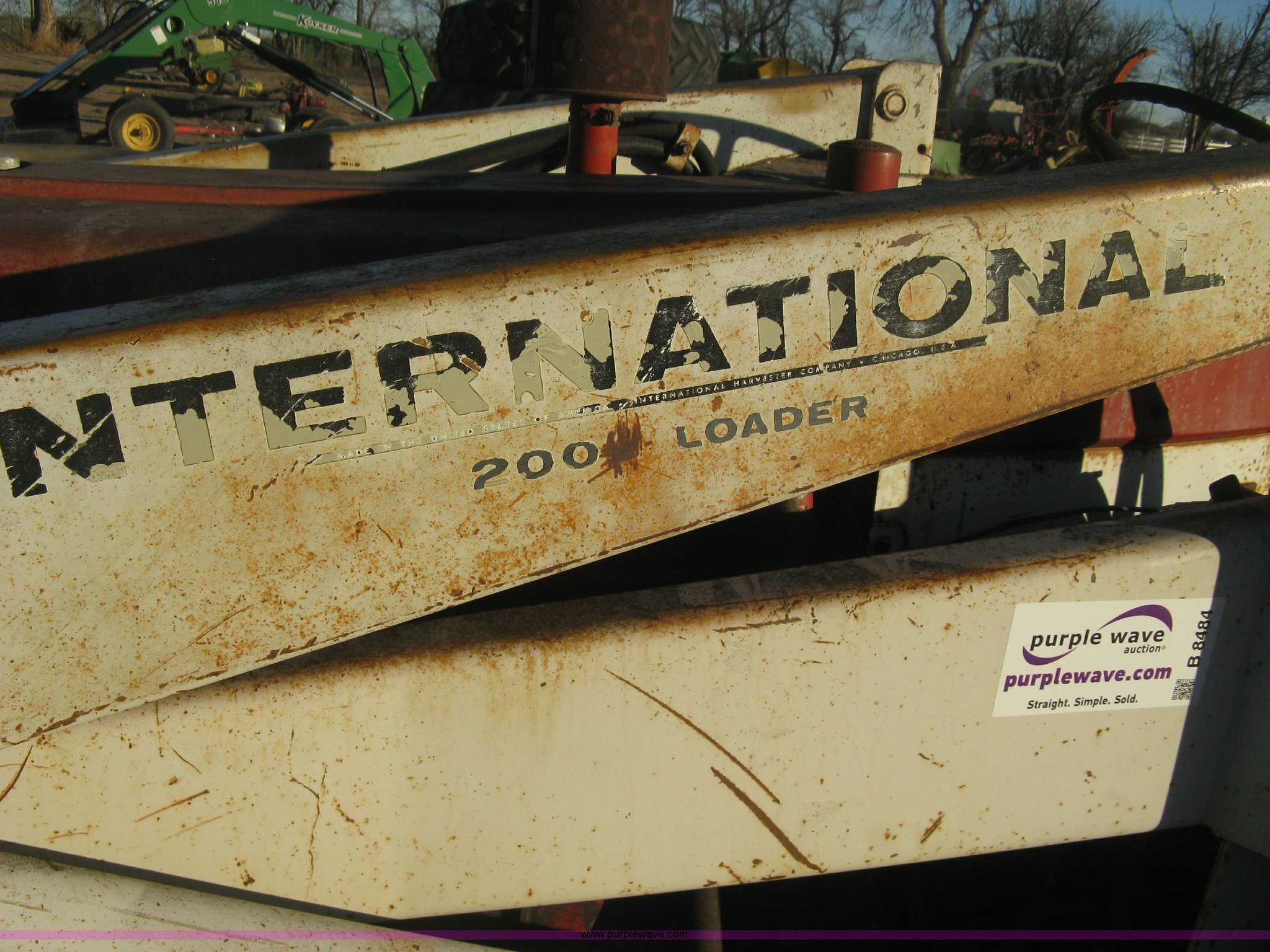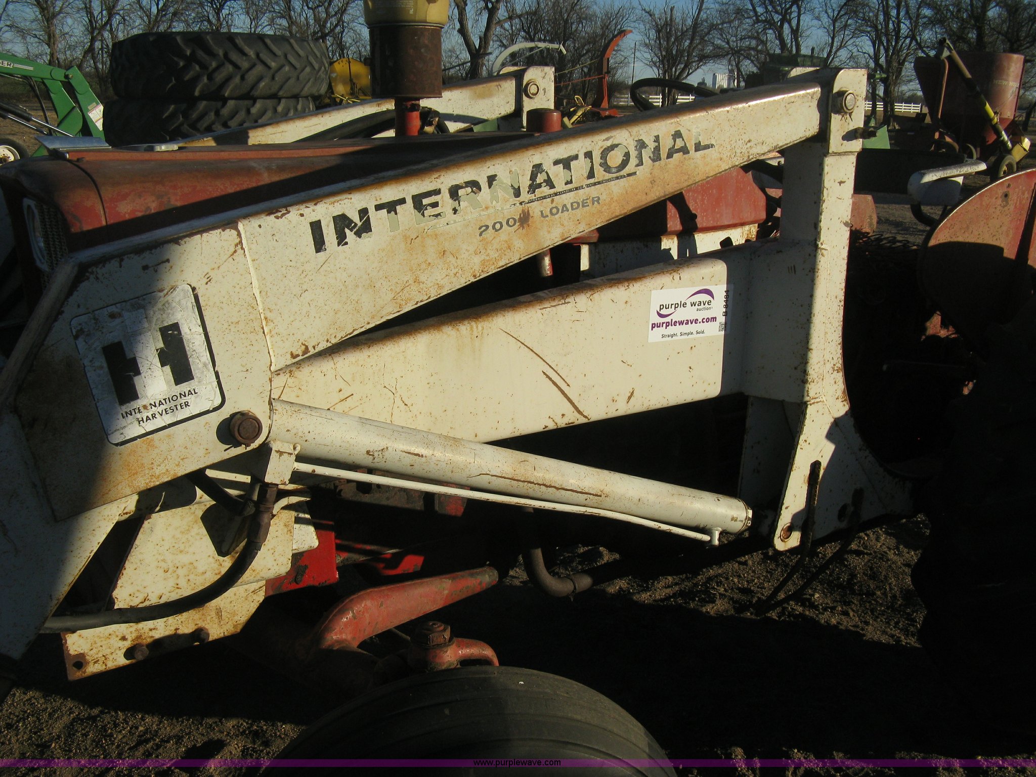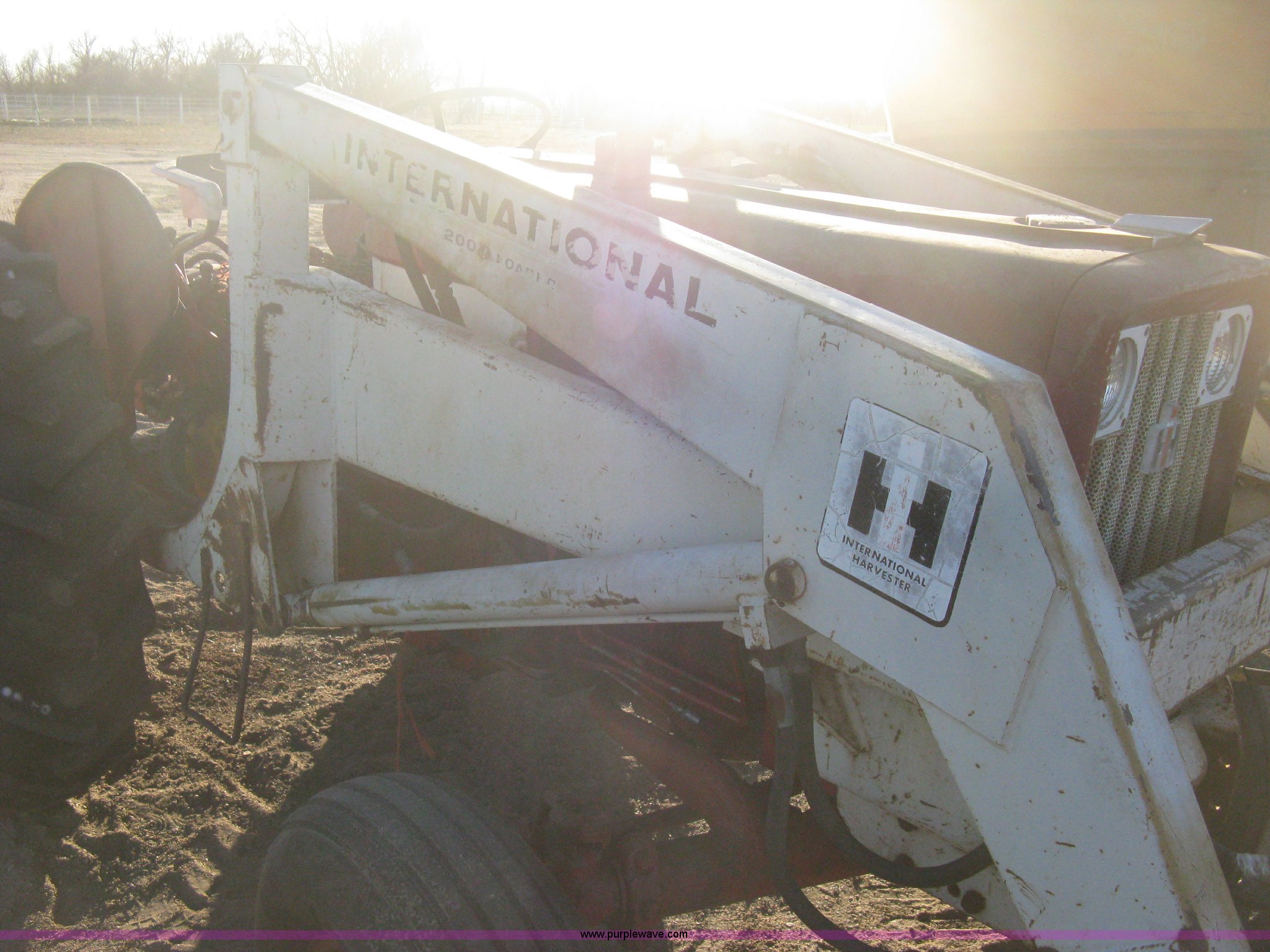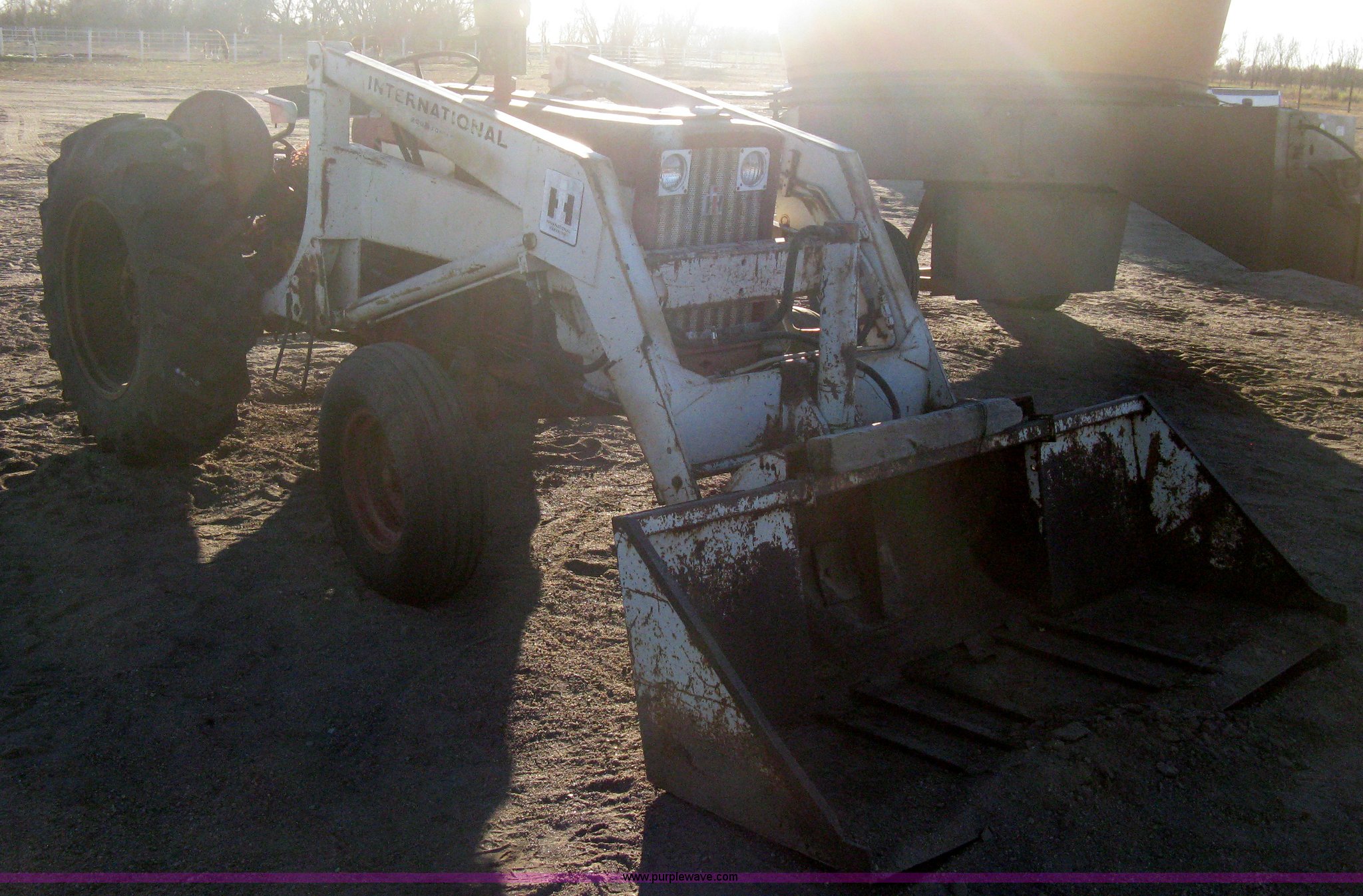 Purple Wave is selling a used Tractor in Kansas. This item is a International 504 tractor with the following: 3,501 hours on meter, Four cylinder gas engine, Four speed transmission, Three point, Top link included, 540 PTO, Draw bar, Hydraulic remote set, International 200 loader, Retro-fit bucket, 40" forks, 80" bolt-on bucket, Two lever loader control, 9.5L-15 front tires, 14.9-28 rear tires, One damaged, Steering disconnected or inoperable, Serial 875581R1