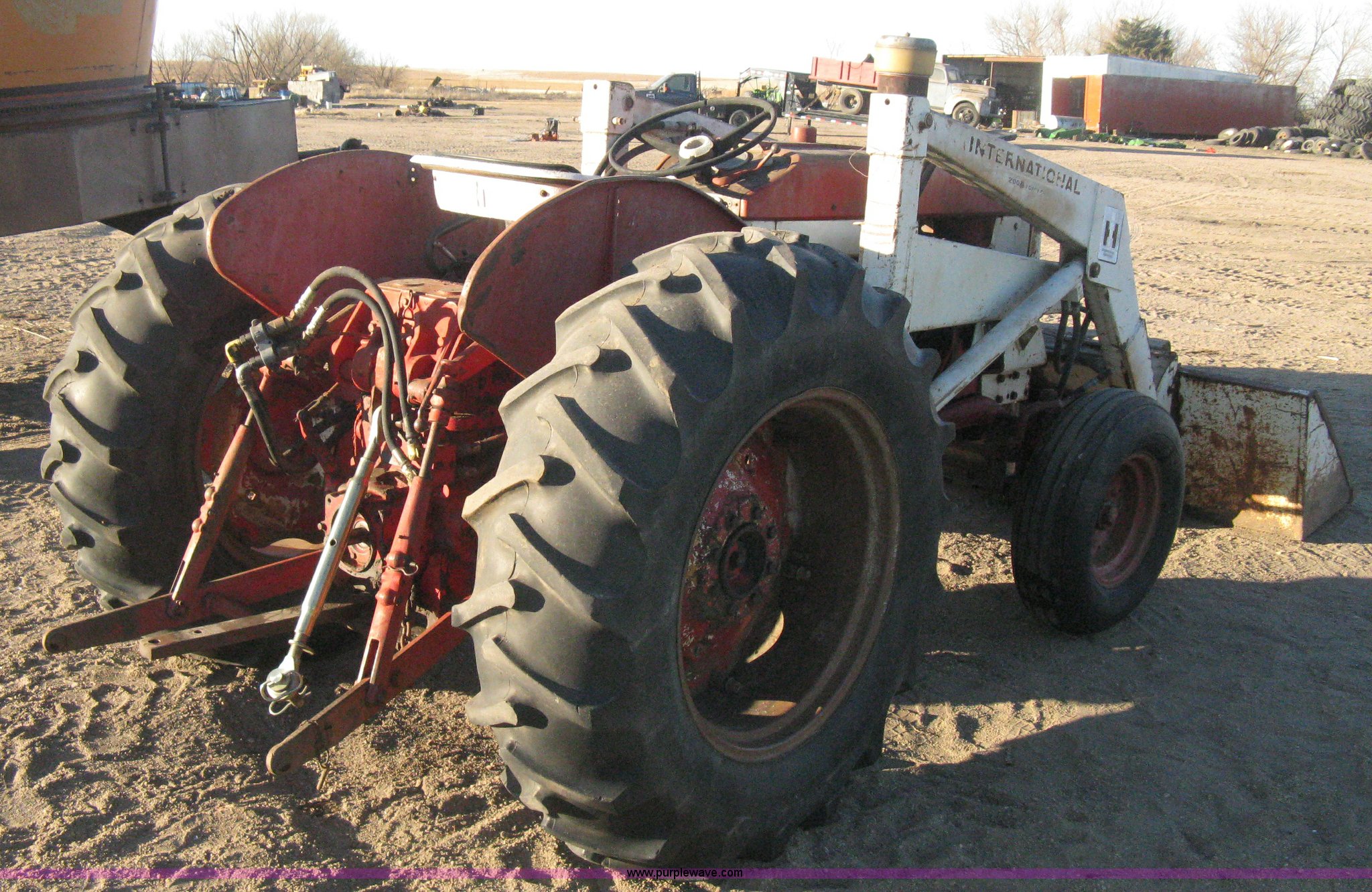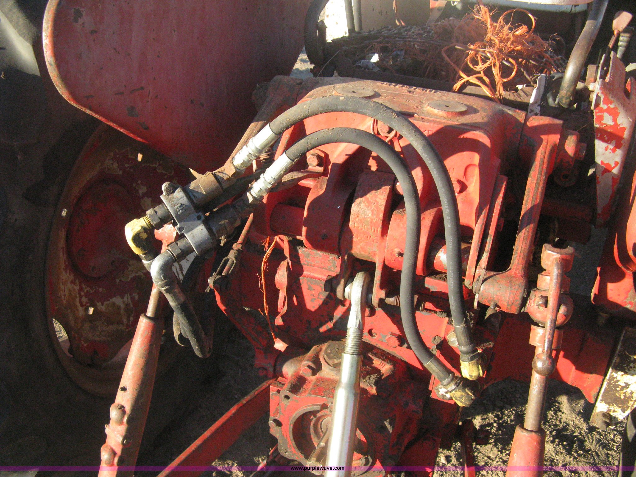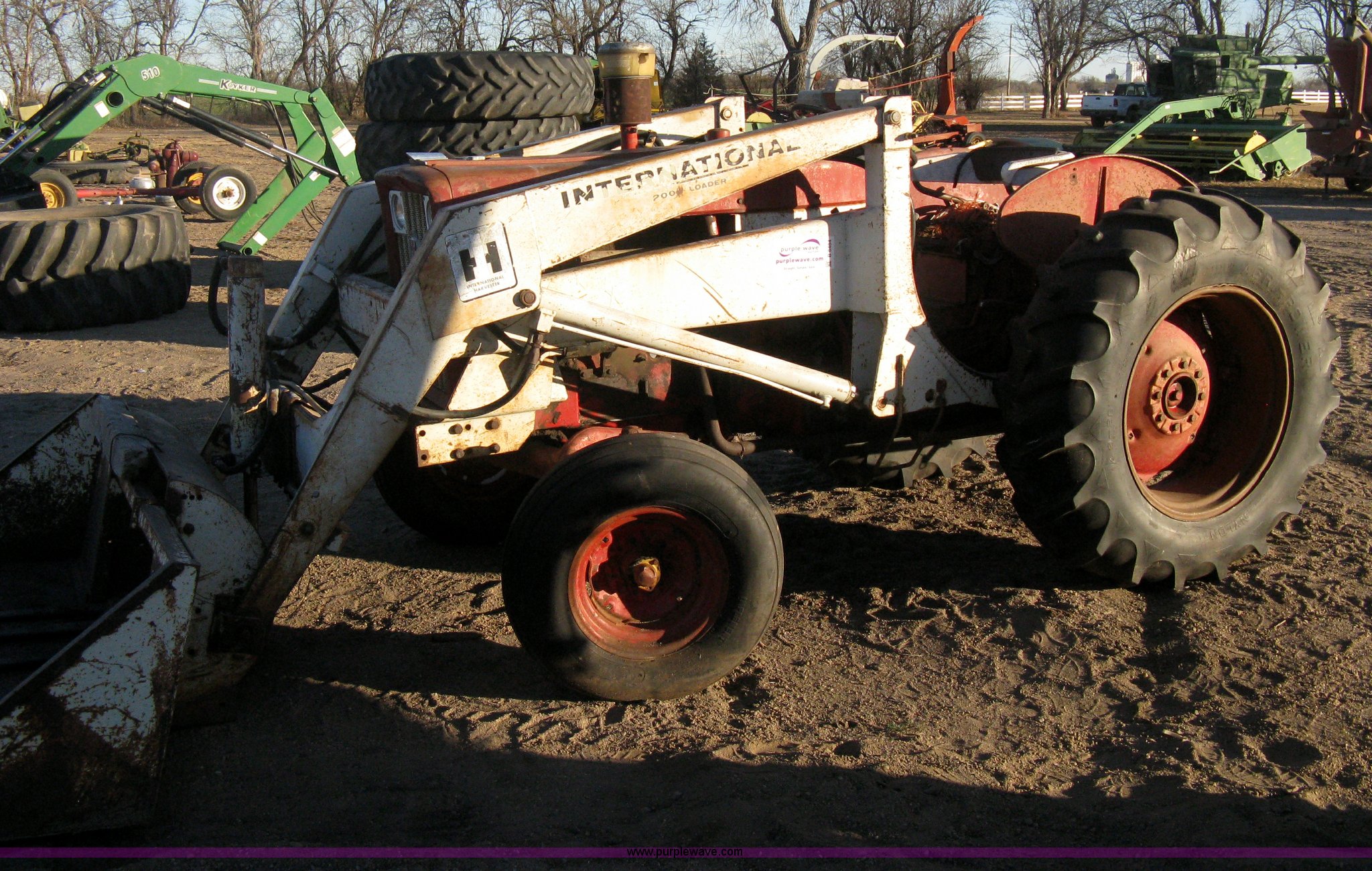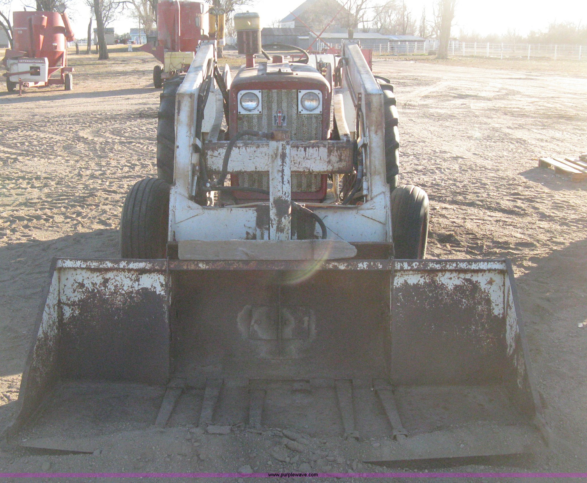 Purple Wave is selling a used Tractor in Kansas. This item is a International 504 tractor with the following: 3,501 hours on meter, Four cylinder gas engine, Four speed transmission, Three point, Top link included, 540 PTO, Draw bar, Hydraulic remote set, International 200 loader, Retro-fit bucket, 40" forks, 80" bolt-on bucket, Two lever loader control, 9.5L-15 front tires, 14.9-28 rear tires, One damaged, Steering disconnected or inoperable, Serial 875581R1