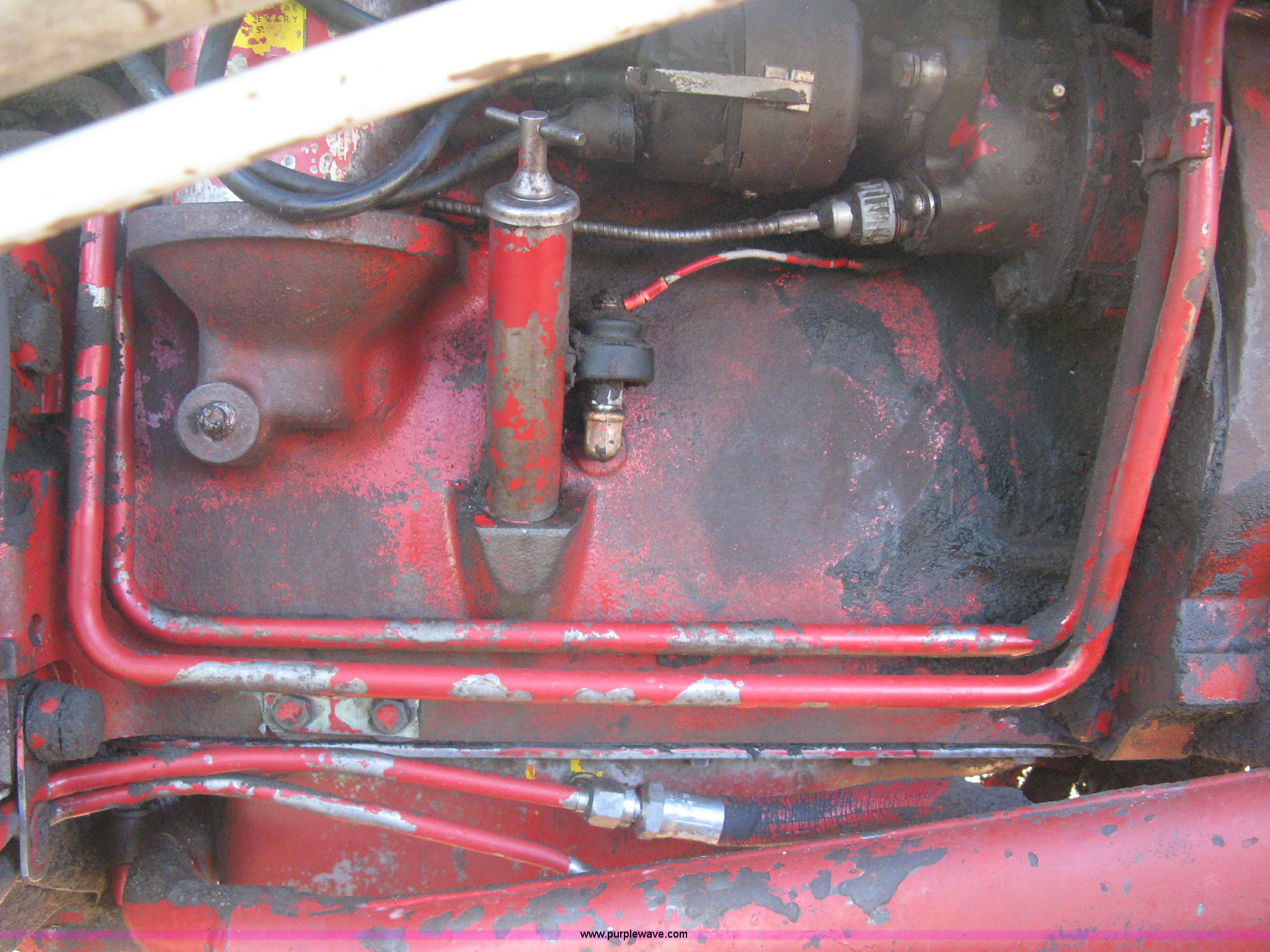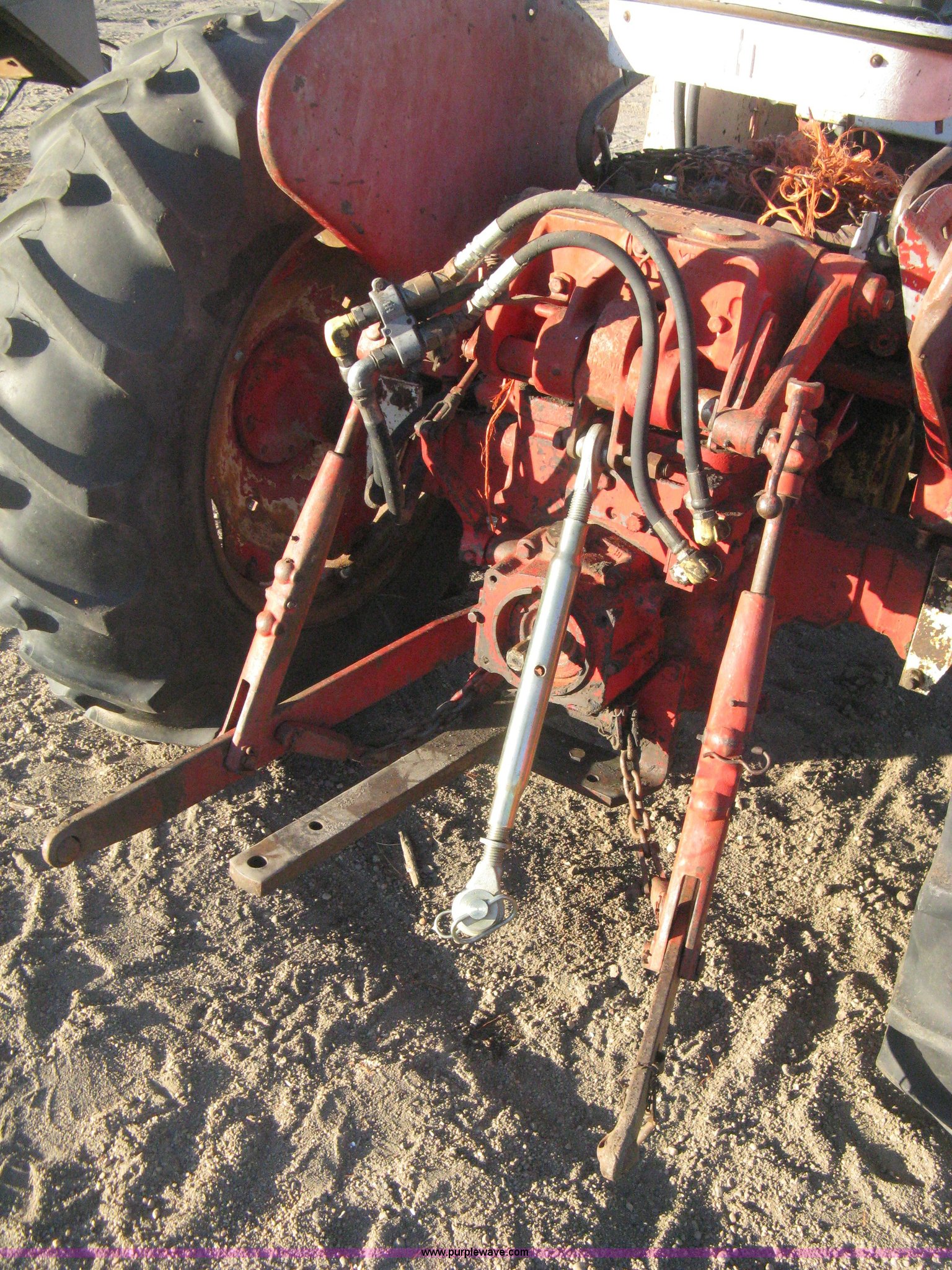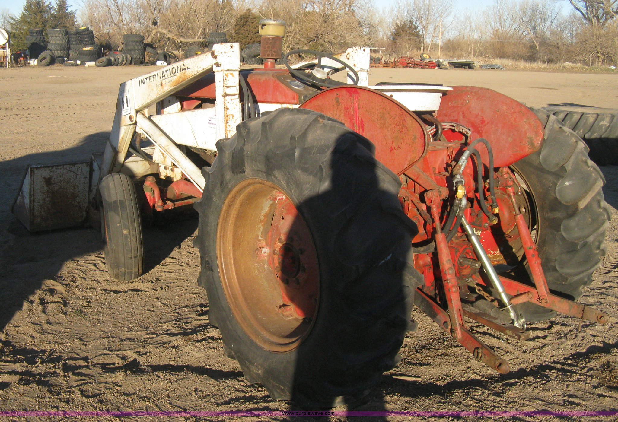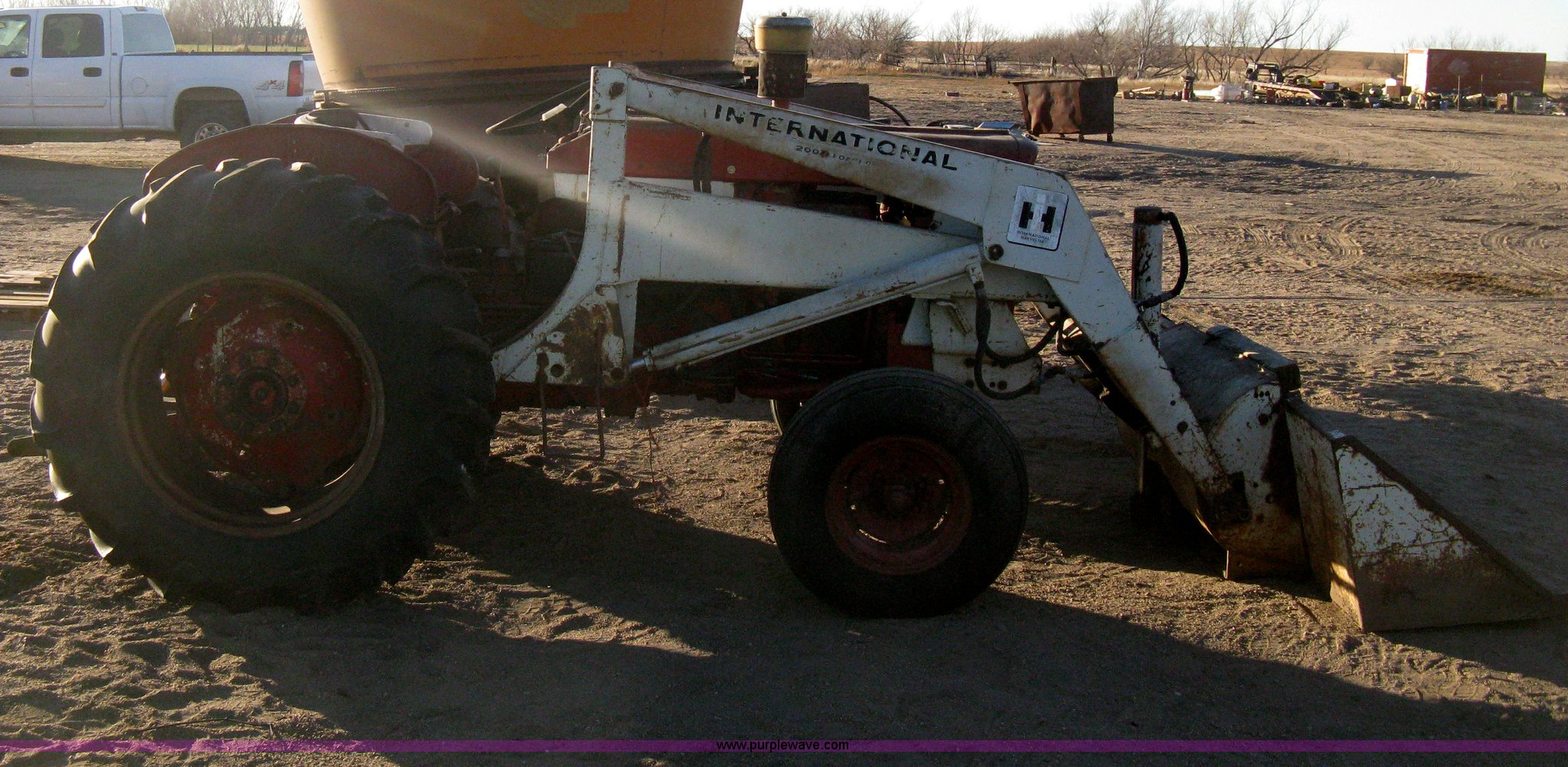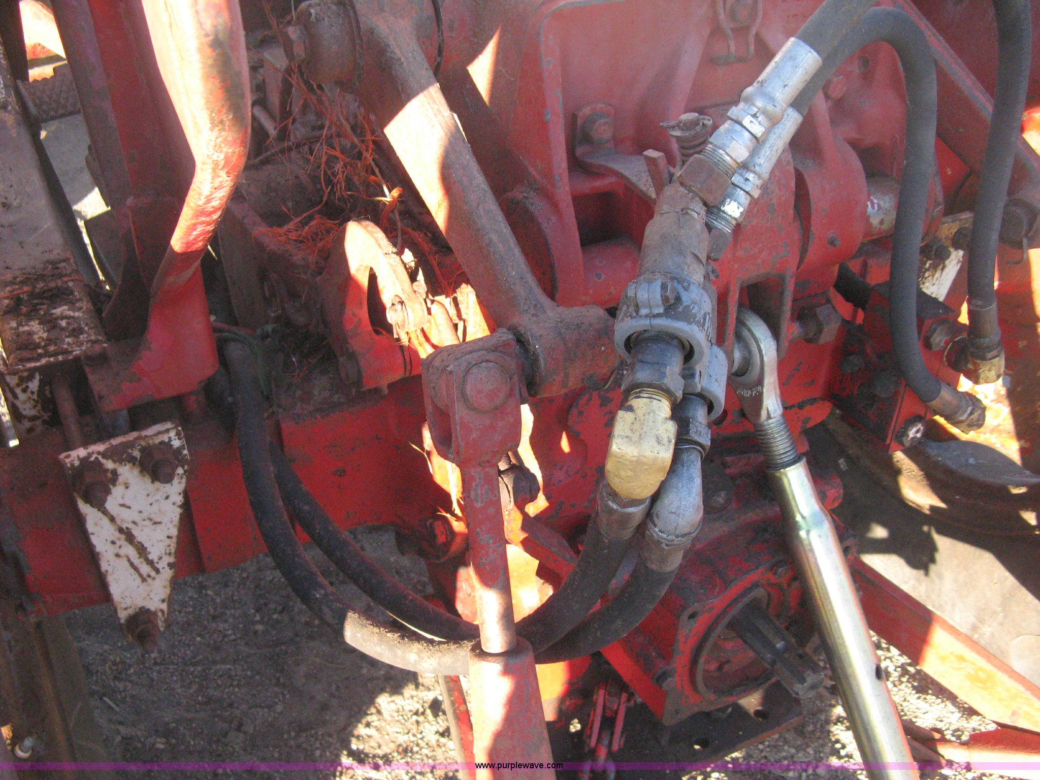 Purple Wave is selling a used Tractor in Kansas. This item is a International 504 tractor with the following: 3,501 hours on meter, Four cylinder gas engine, Four speed transmission, Three point, Top link included, 540 PTO, Draw bar, Hydraulic remote set, International 200 loader, Retro-fit bucket, 40" forks, 80" bolt-on bucket, Two lever loader control, 9.5L-15 front tires, 14.9-28 rear tires, One damaged, Steering disconnected or inoperable, Serial 875581R1