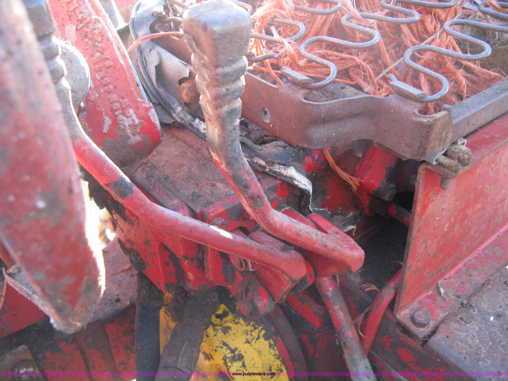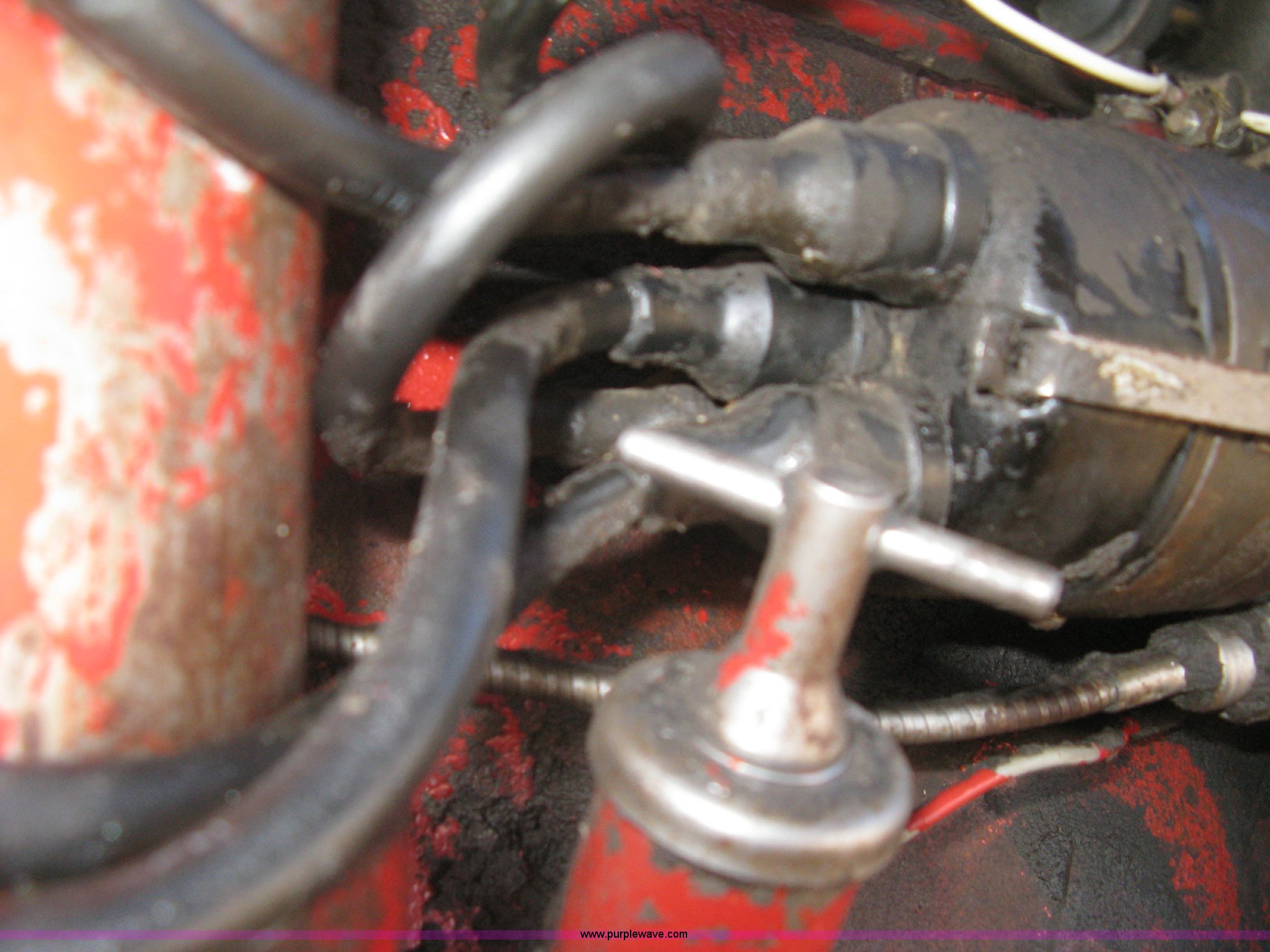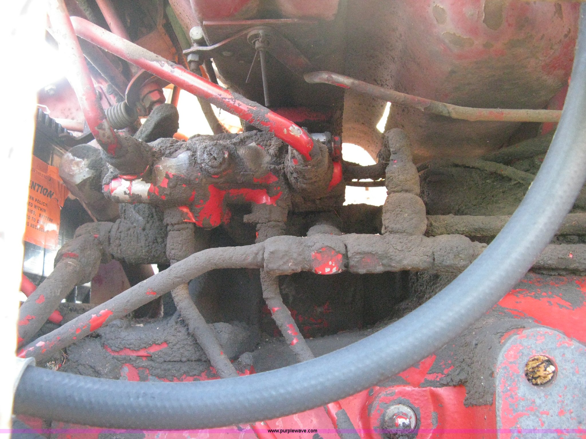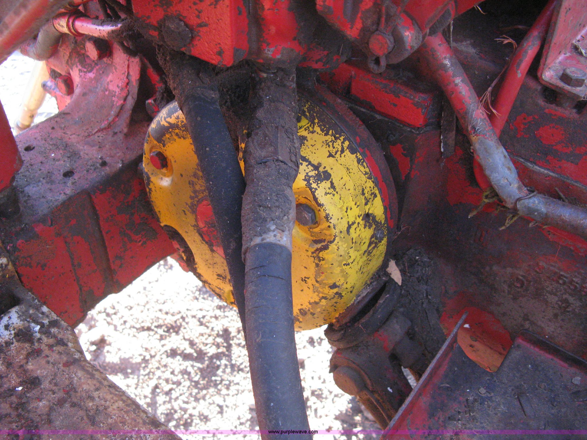 Purple Wave is selling a used Tractor in Kansas. This item is a International 504 tractor with the following: 3,501 hours on meter, Four cylinder gas engine, Four speed transmission, Three point, Top link included, 540 PTO, Draw bar, Hydraulic remote set, International 200 loader, Retro-fit bucket, 40" forks, 80" bolt-on bucket, Two lever loader control, 9.5L-15 front tires, 14.9-28 rear tires, One damaged, Steering disconnected or inoperable, Serial 875581R1
