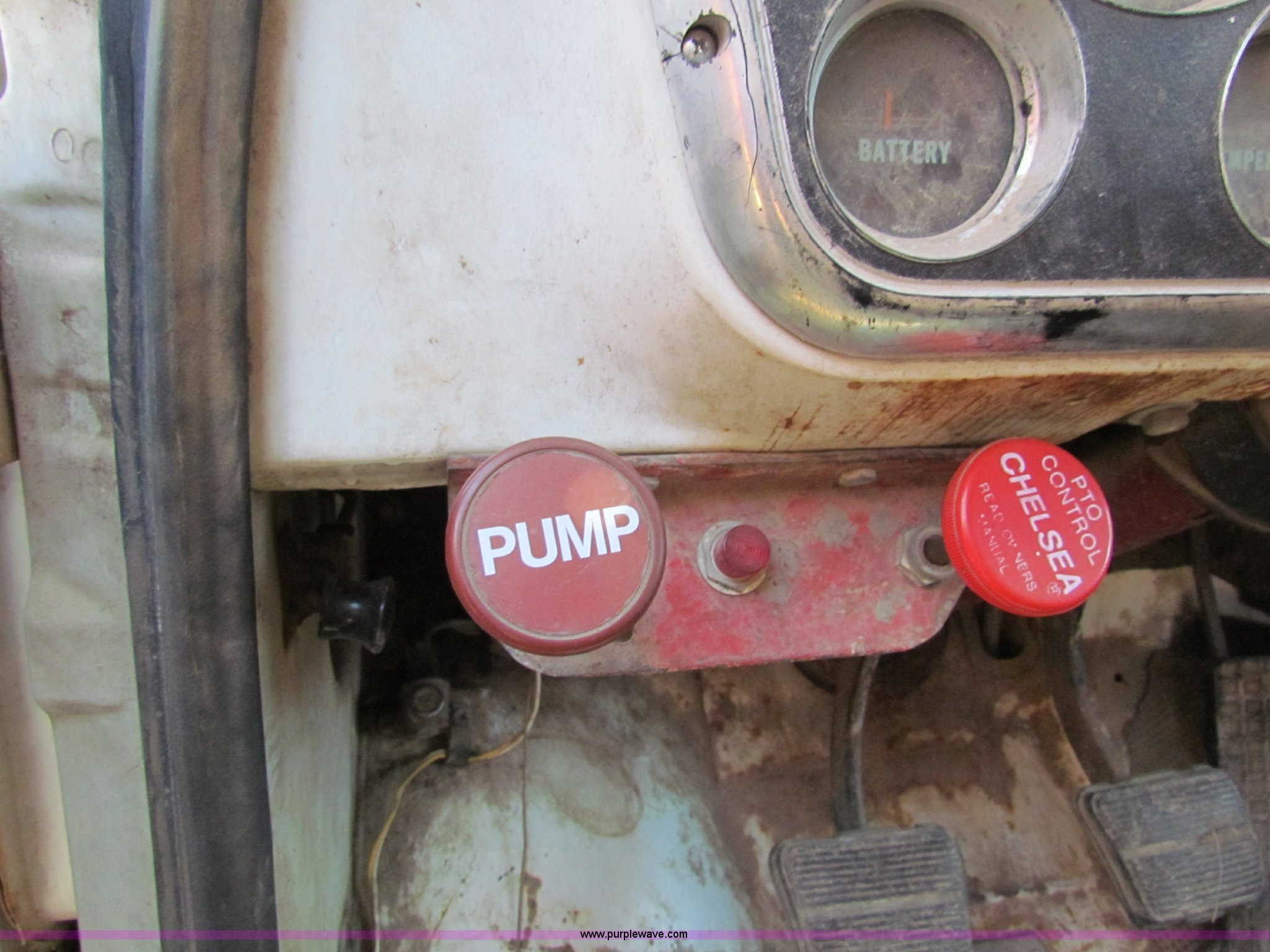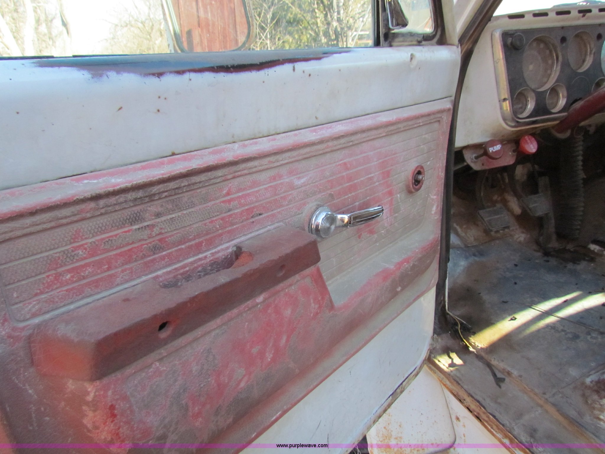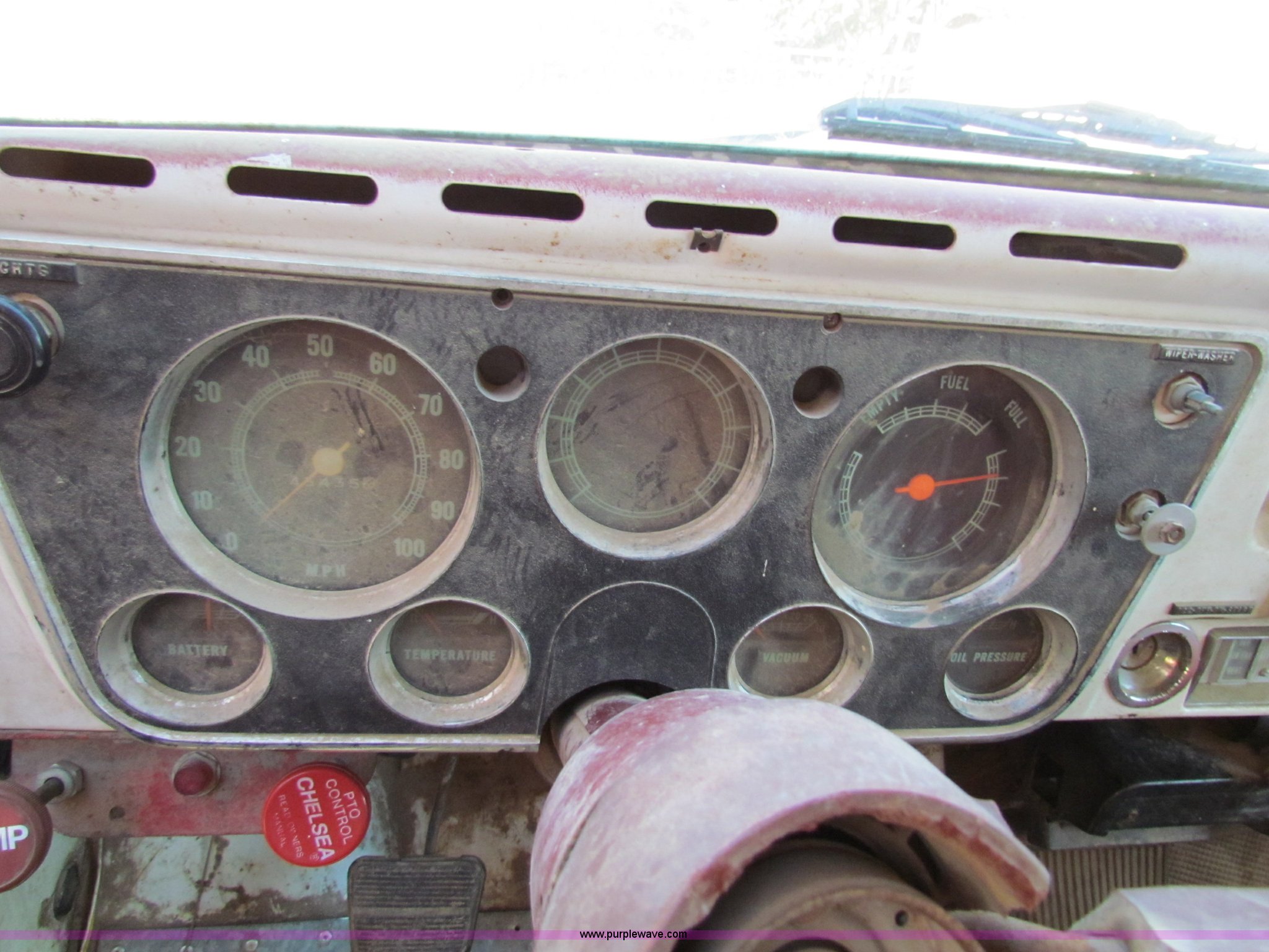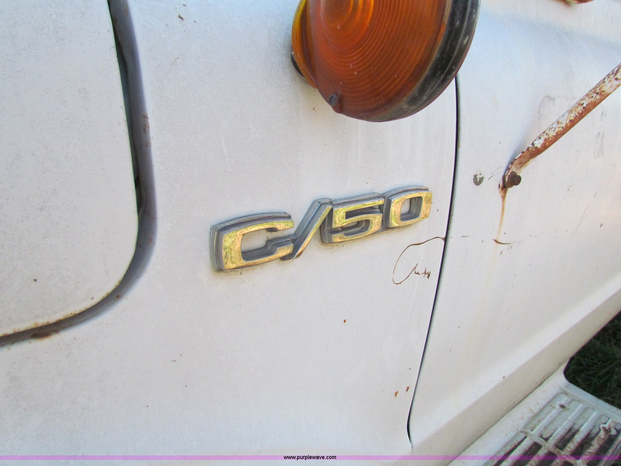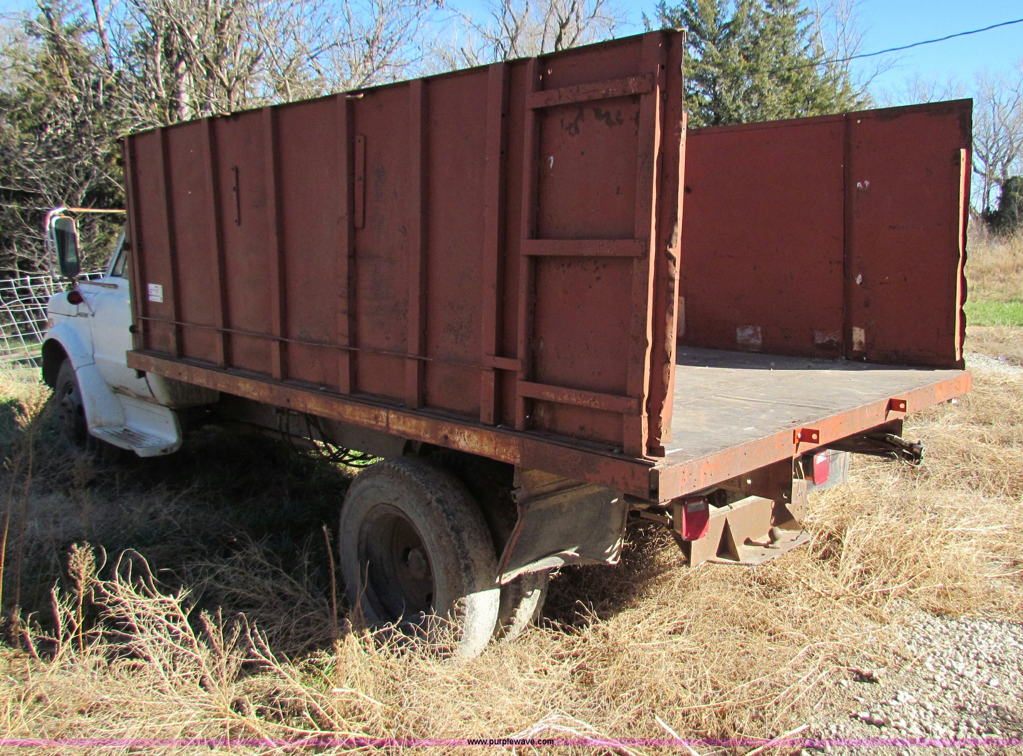 Purple Wave is selling a used Grain Truck in Kansas. This item is a 1972 Chevrolet C50 truck with the following: 43,435 miles on odometer, 350 CID V8 gas engine, Five speed manual transmission, Two speed rear end, Chelsea PTO, Steel dump bed, Hoist, Rear hydraulic remote, 8.25-20 tires, Recently replaced battery, Brakes need bled
