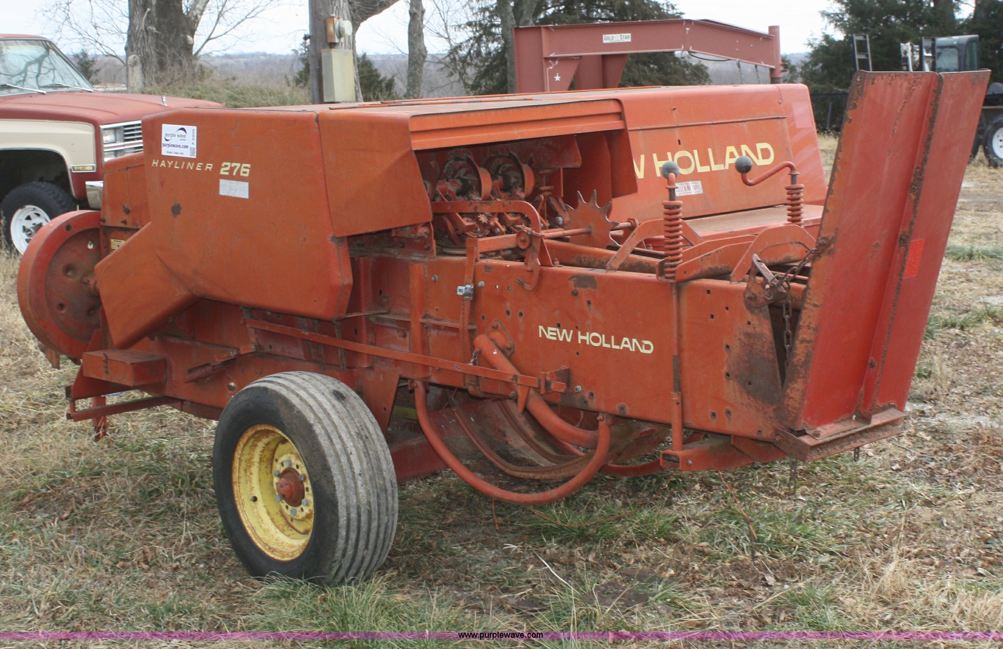 New Holland 276 square baler. Twine tie, 4' 6"W pickup, PTO shaft is missing. Shipping quotes available. Bryan-Ohlmeier Construction. 32485 Hospital Dr.. Paola, KS 66071