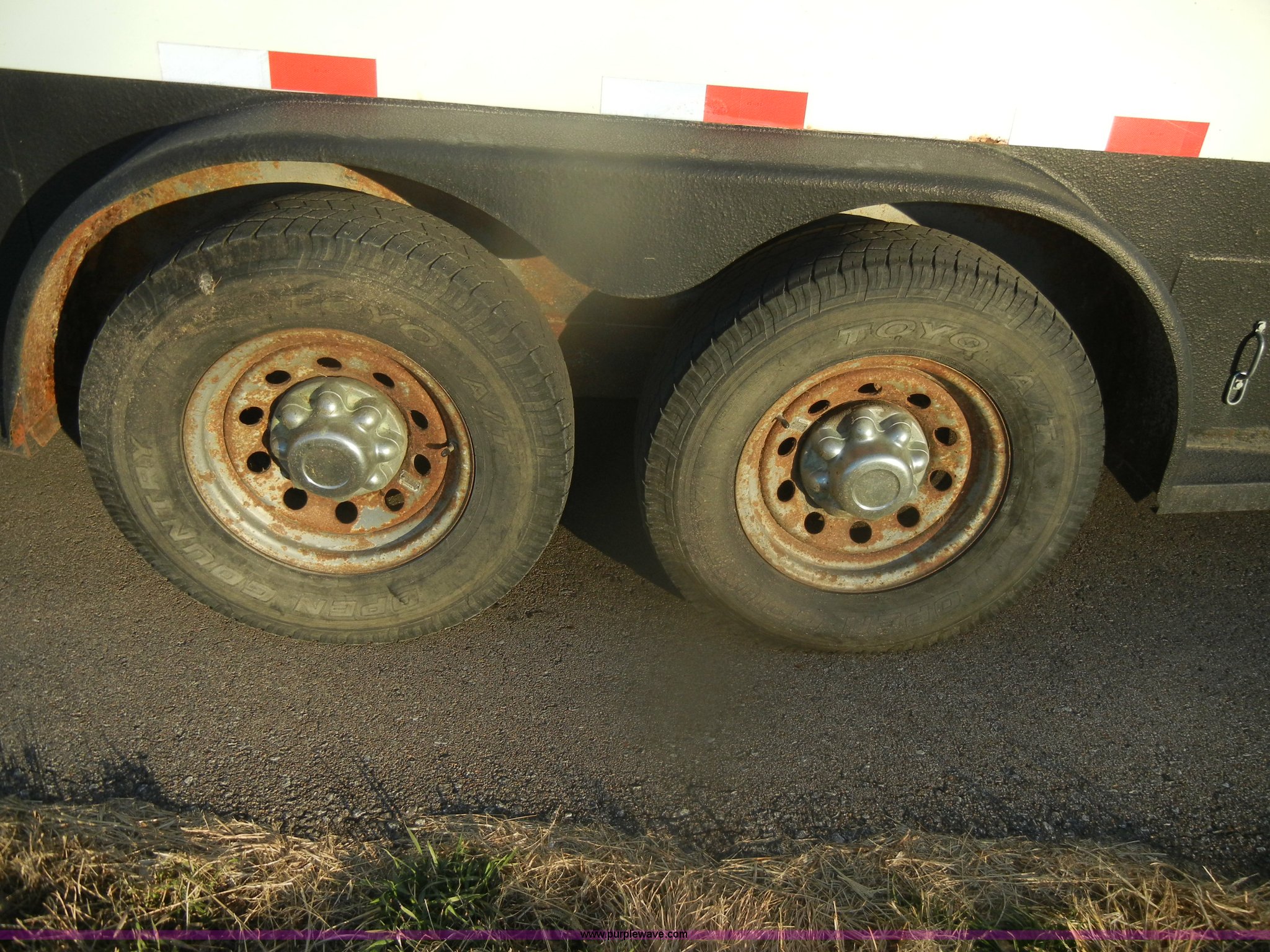 2001 Travalong gooseneck trailer. 23'L x 7'W, 7'L neck, 30' overall length, Single side entry door, Dual rear doors, Dual axles, Lights, chains, and break away, Electric jack with keys, Interior lights, Electric brakes, 245/75R16 tires, Rust. 4DYGS242711020628. Shipping quotes available. 825 W Levee Drive. Manhattan, KS 66502