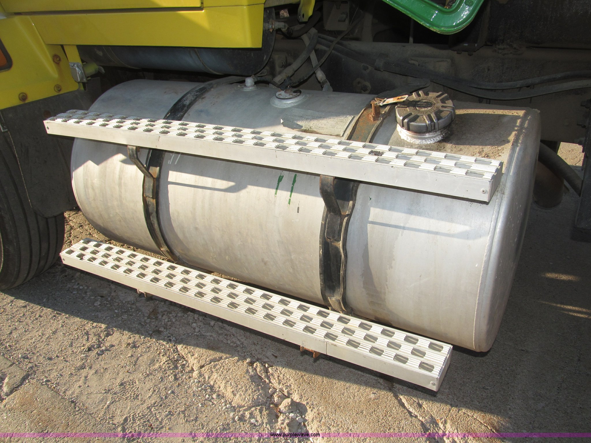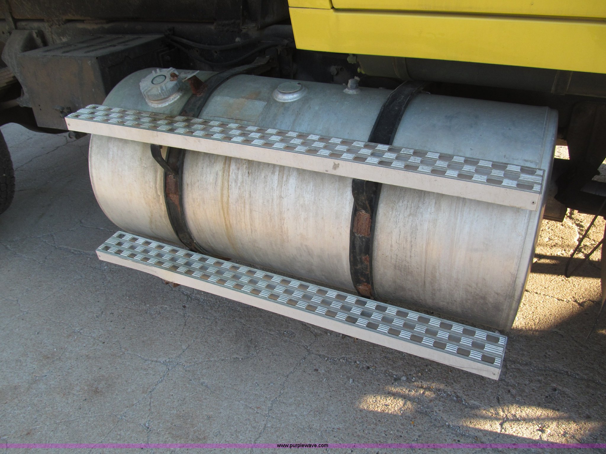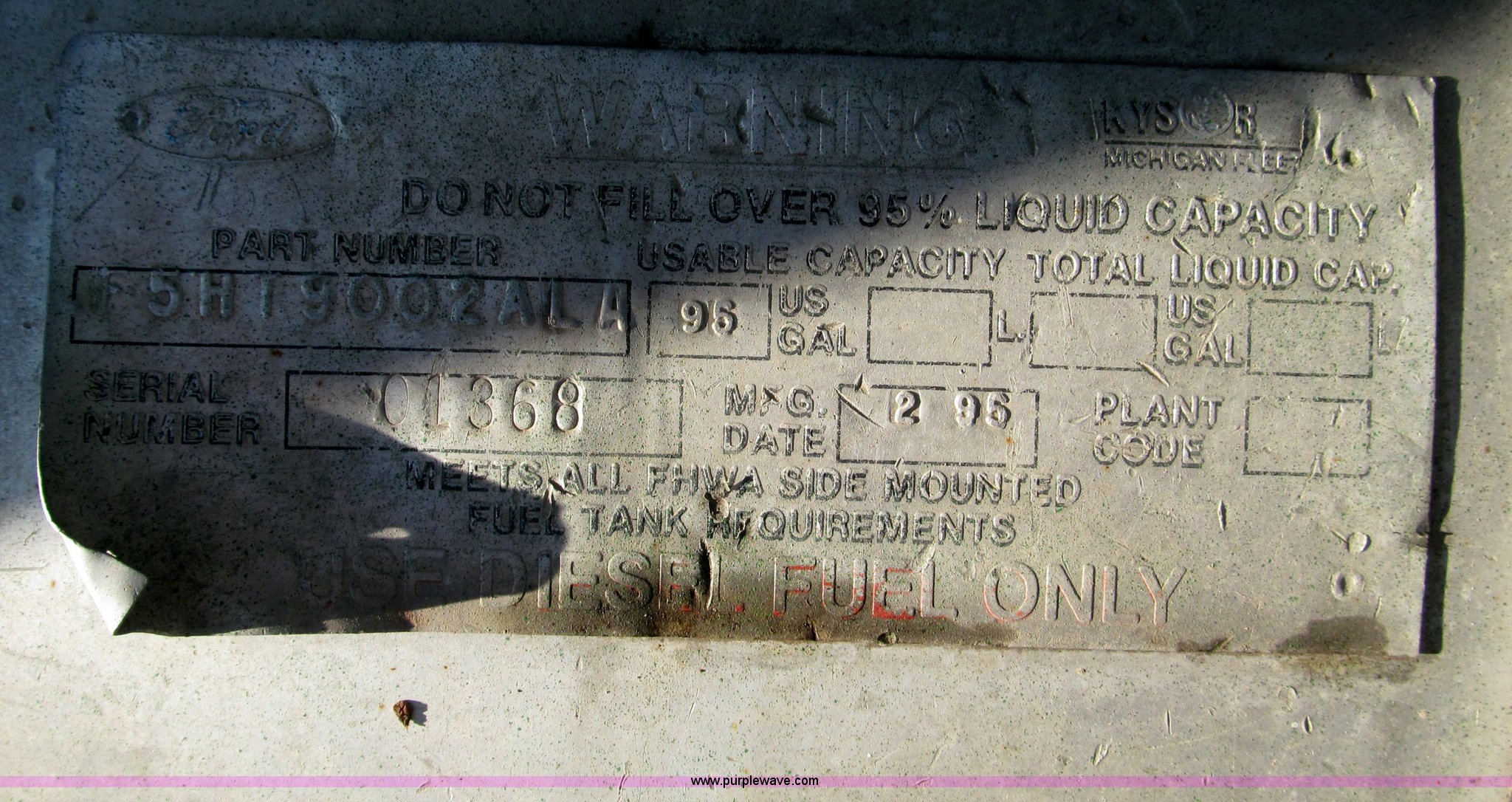 Purple Wave is selling a used Construction Dump Truck in Iowa. This item is a 1995 Ford LA9000 AeroMax dump truck with the following: 231,180 miles on odometer, Cummins L10 10.0L L6 diesel engine, Eaton Fuller Road Ranger Performance nine speed manual transmission, AC and heat, Sony AM/FM/CD, Custom made Apache speakers, Bostrom 914 air suspension seat, Heated mirrors, Block heater, Front side disconnected, Single stage ram, Dual 95 gallon fuel tanks, Roof mounted clearance lights and horn, Wausau 11' snow plow, Hydraulic operated, Work lights, Bolt-on cutting edge, Manual end gate, Spring suspension, Muncie PTO, Air brakes, 143" wheelbase, Aluminum front wheels, Steel rear wheels, 285/75R24.5 14PR tires, Snow chains included, GVWR 33,200 lbs, FAWR 12,000 lbs, RAWR 21,200 lbs, Lockable fuel caps, Maintenance history available upon request, Floor cracks, Bed rust, Hood may not open