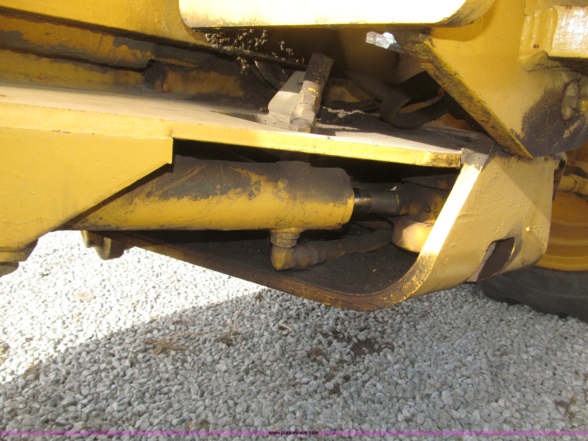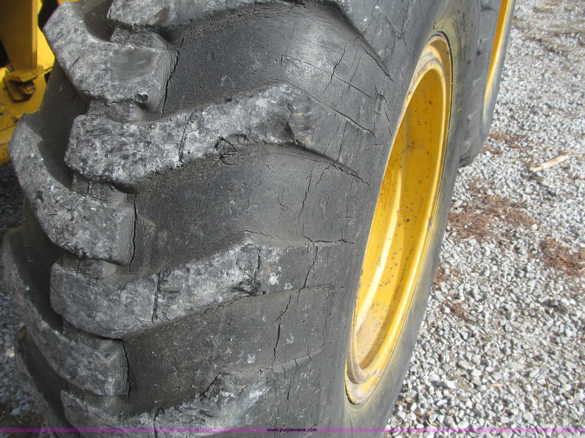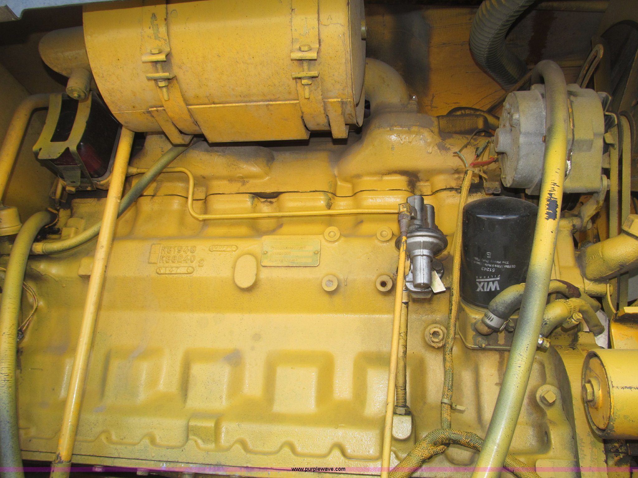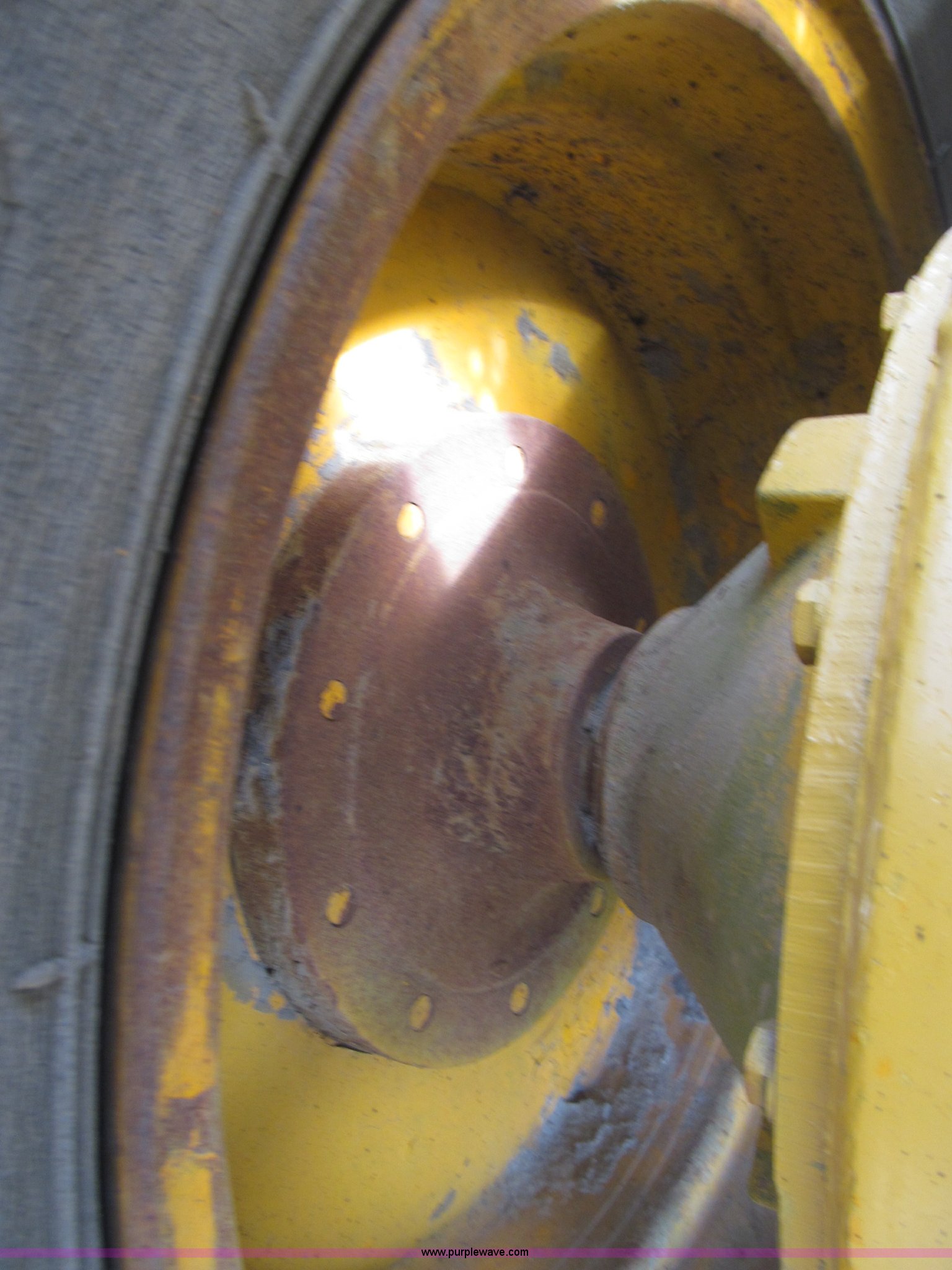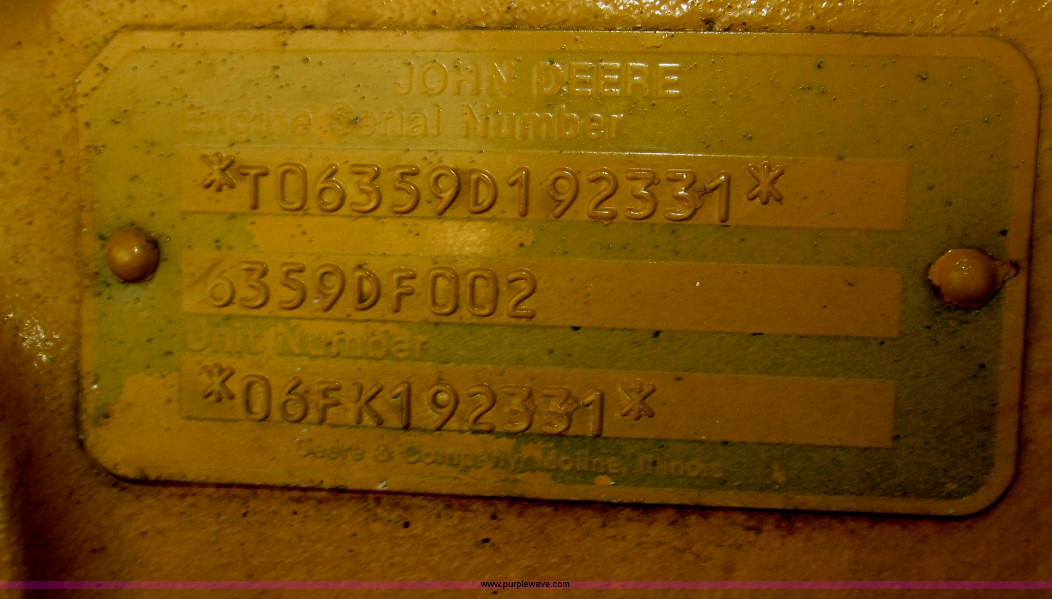 Purple Wave is selling a used Motor Grader in Nebraska. This item is a 1978 John Deere 570A motor grader with the following: John Deere 329 CID six cylinder diesel engine, 85 HP, Serial T06359D192331, Powershift transmission, 8F-4R gears, Four wheel drive, Locking differential, Canopy, High cab profile, Suspension seat, Articulated frame, 12' moldboard, Tip control, Side shift, Front mounted scarifier, Three teeth, Hydraulic front wheel lean, Blade rotation, Blade pitch/height, Frame steer, Circle side shift, Hand and foot throttle, Hand operating parking brake, Oscillating front axle, 15.5-25 tires, 21,703 lbs. base operating weight, Windows missing and damaged, Rust, Tires weather cracked, Serial 570A-07206T