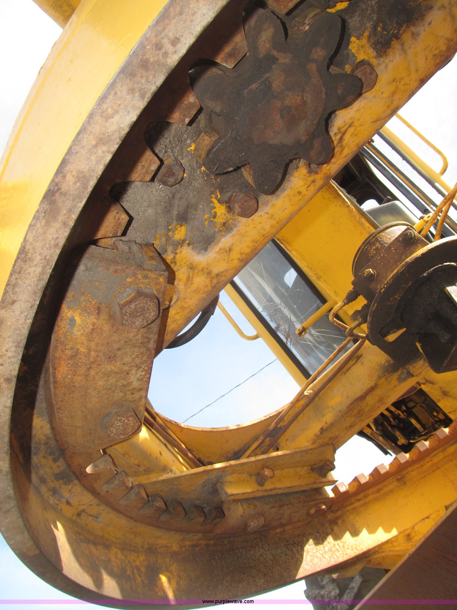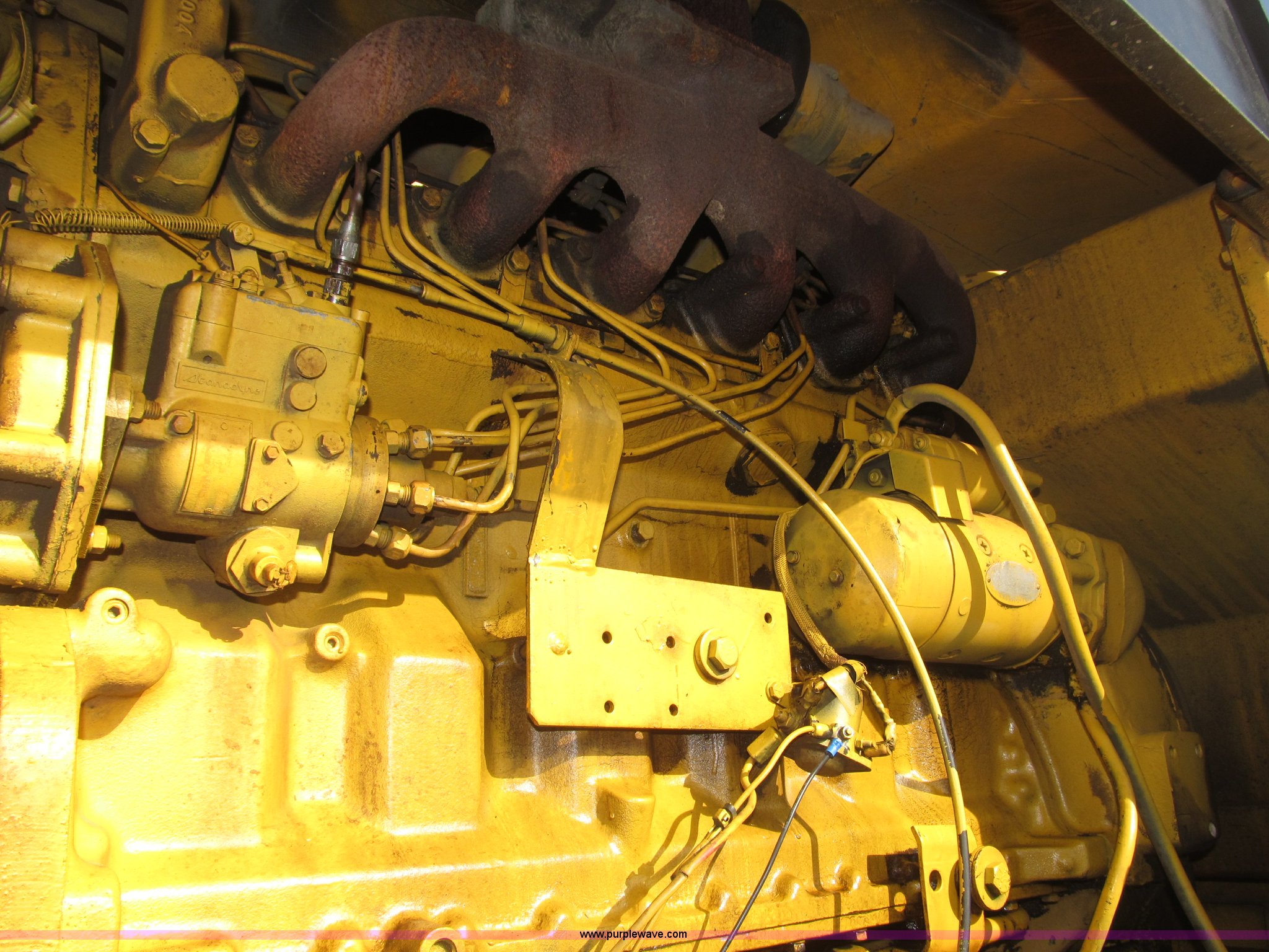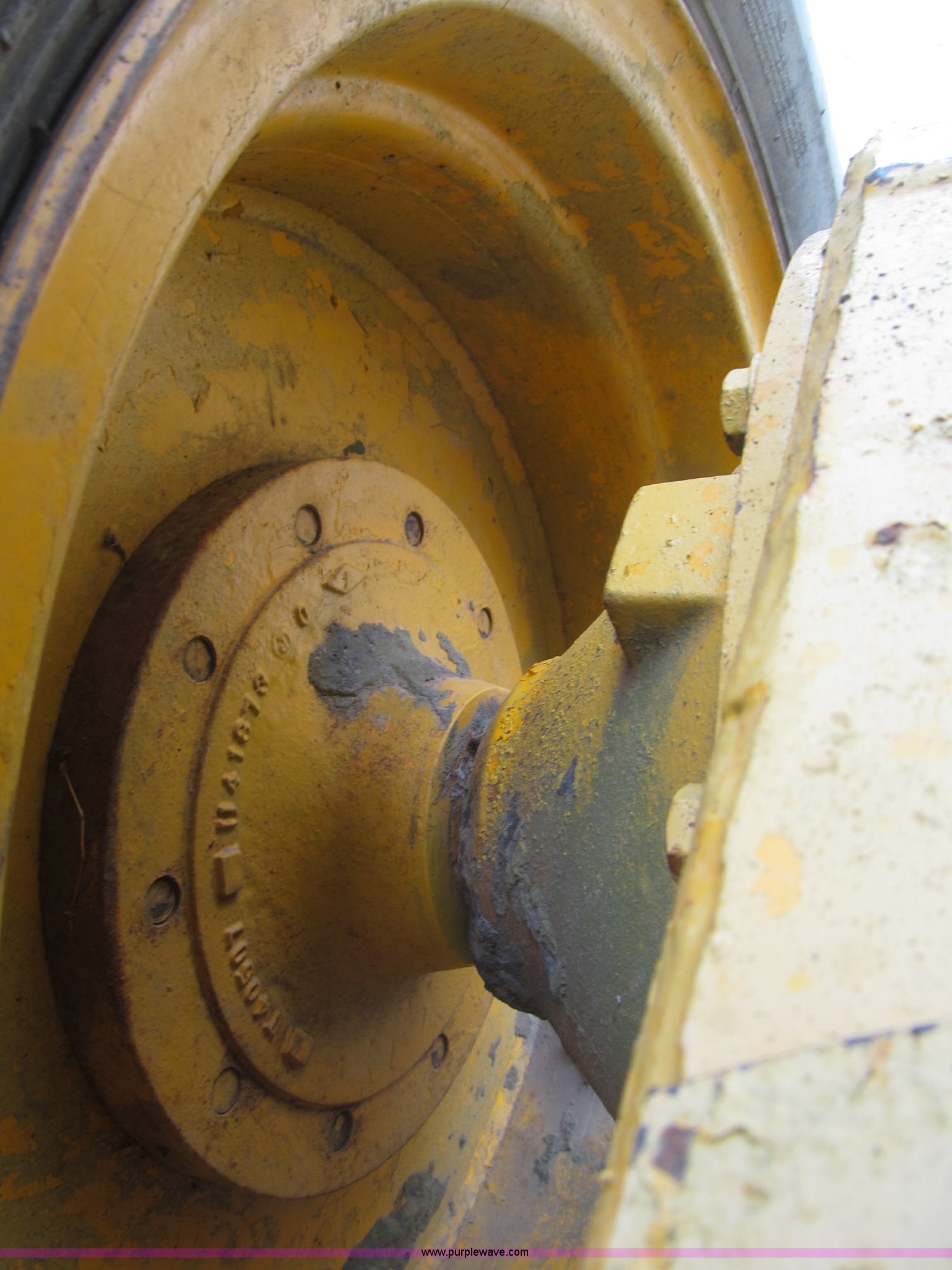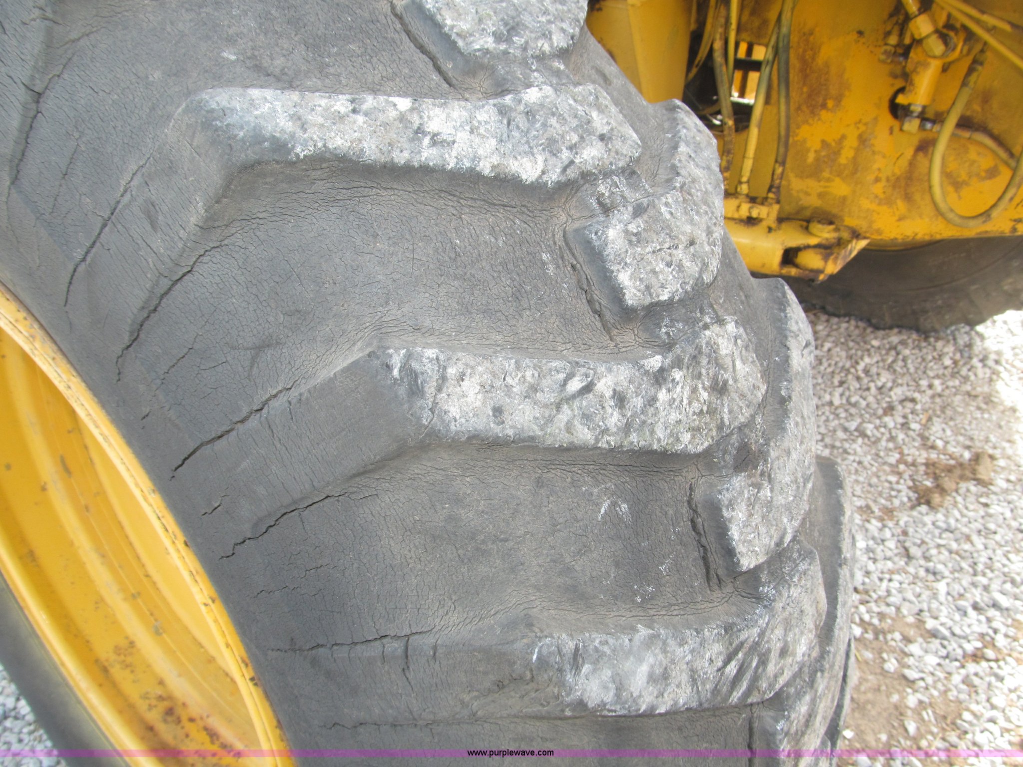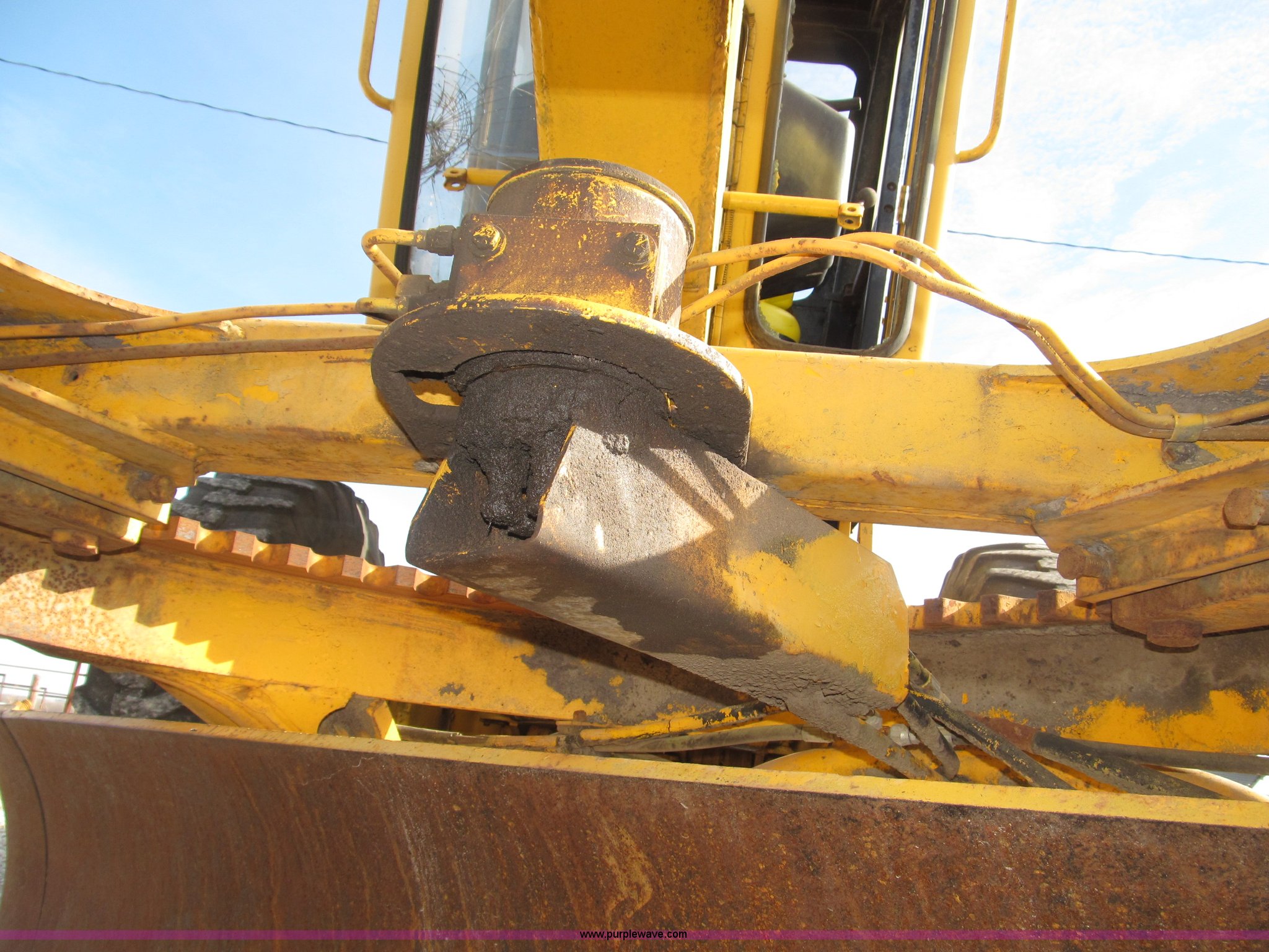 Purple Wave is selling a used Motor Grader in Nebraska. This item is a 1978 John Deere 570A motor grader with the following: John Deere 329 CID six cylinder diesel engine, 85 HP, Serial T06359D192331, Powershift transmission, 8F-4R gears, Four wheel drive, Locking differential, Canopy, High cab profile, Suspension seat, Articulated frame, 12' moldboard, Tip control, Side shift, Front mounted scarifier, Three teeth, Hydraulic front wheel lean, Blade rotation, Blade pitch/height, Frame steer, Circle side shift, Hand and foot throttle, Hand operating parking brake, Oscillating front axle, 15.5-25 tires, 21,703 lbs. base operating weight, Windows missing and damaged, Rust, Tires weather cracked, Serial 570A-07206T