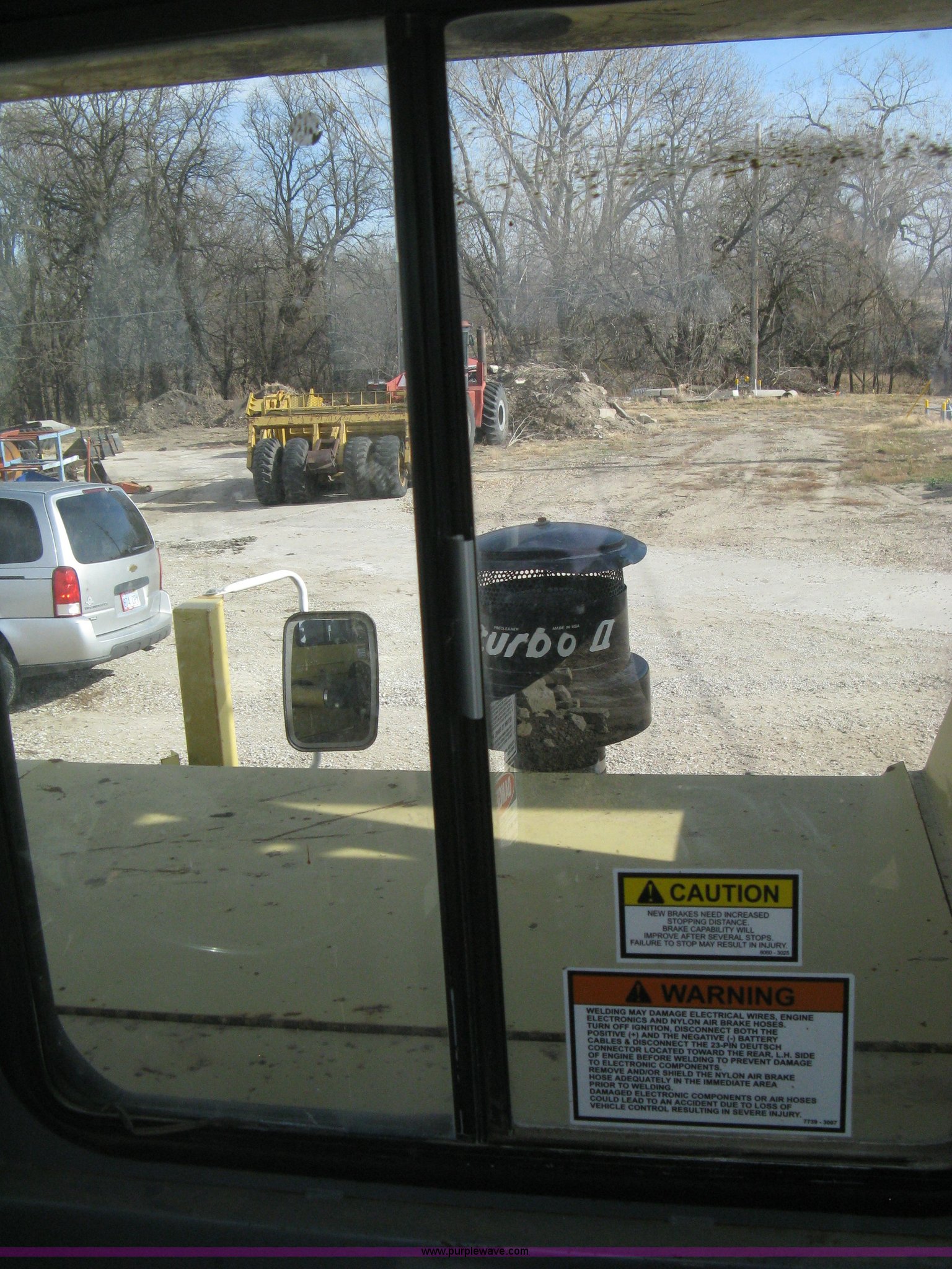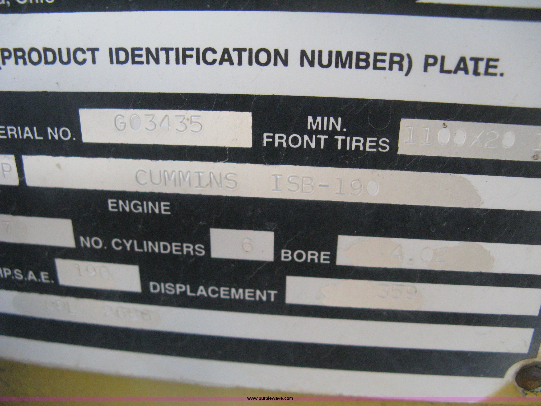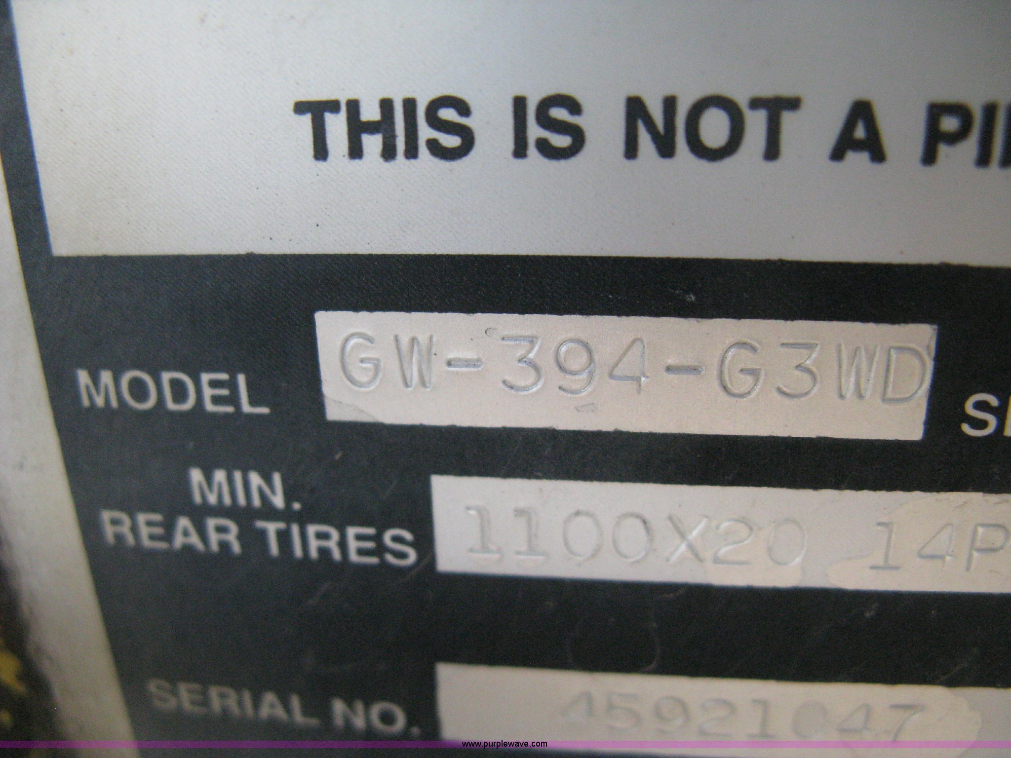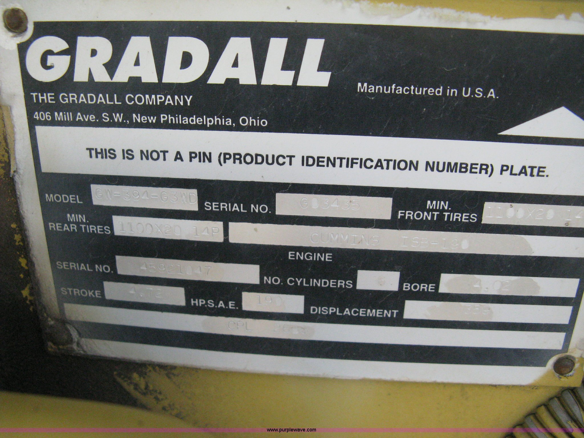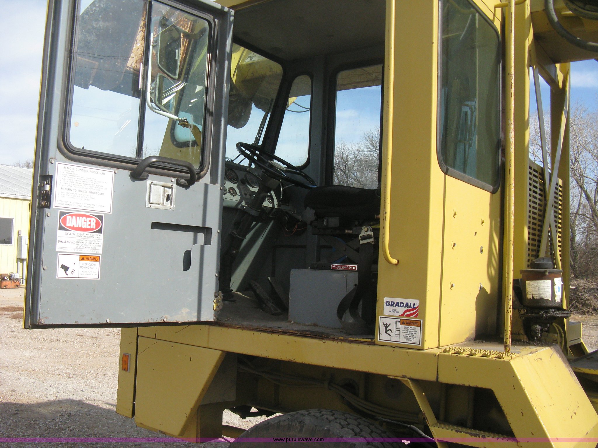 Purple Wave is selling a used Rubber Tired Excavator in Kansas. This item is a Gradall G3WD rubber tire hydraulic excavator with the following: 2,359 miles on odometer, 4,945 hours on meter, Cummins ISB-190 six cylinder diesel engine, Powershift six speed transmission, 6F-3R road speeds travel cab, 3F-3R work speeds remote cab, Four wheel drive, Enclosed road/travel cab, AC and heat, Suspension seat, Standard steering wheel, Lights and turn signals, Enclosed remote/work cab, AC and heat, AC inoperable, Foot pedal steering, Single forward/reverse pedal, Joystick boom/bucket control, Gradall G3WD boom body, Telescopic boom, 57" pin-on tooth bucket, Full revolution turn table, Auto lube system, Unknown working condition, PIN 0133384, Gradall GW-394/G3WD chassis, Air brakes, 385/65R22.5 front tires, 11R22.5 rear tires, Operation/parts manual, Serial G03435