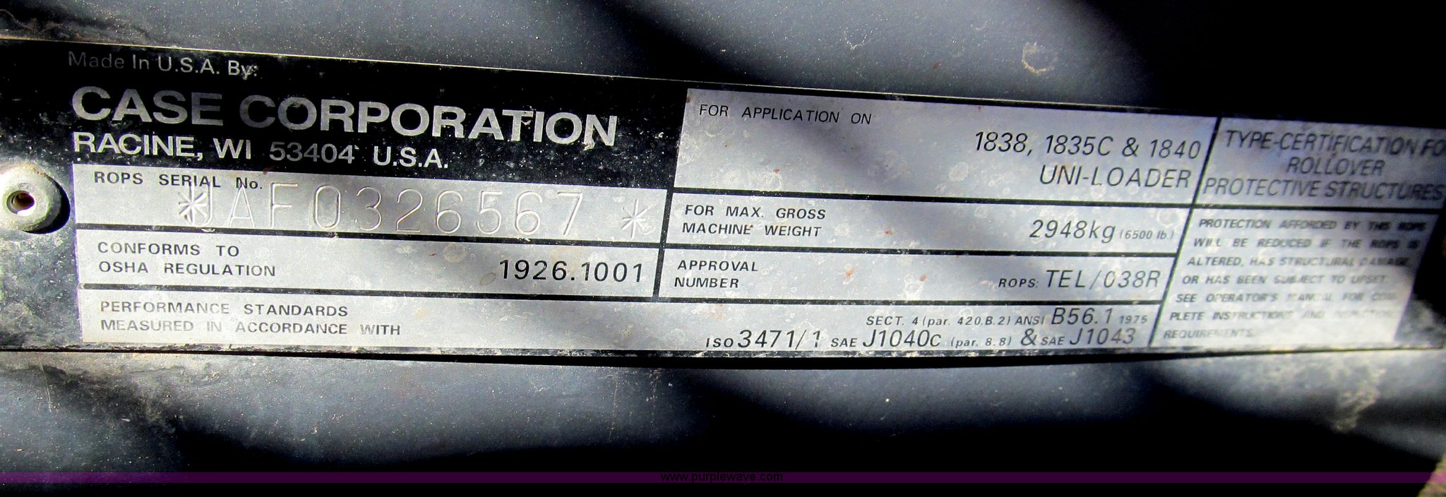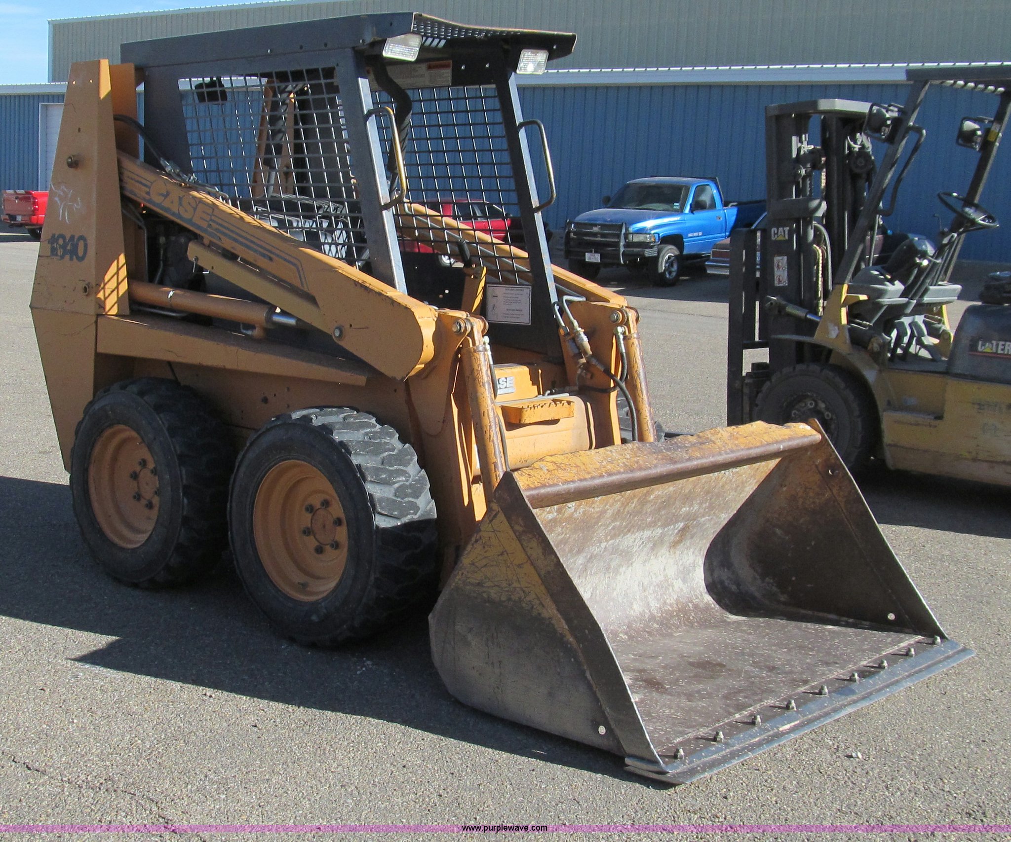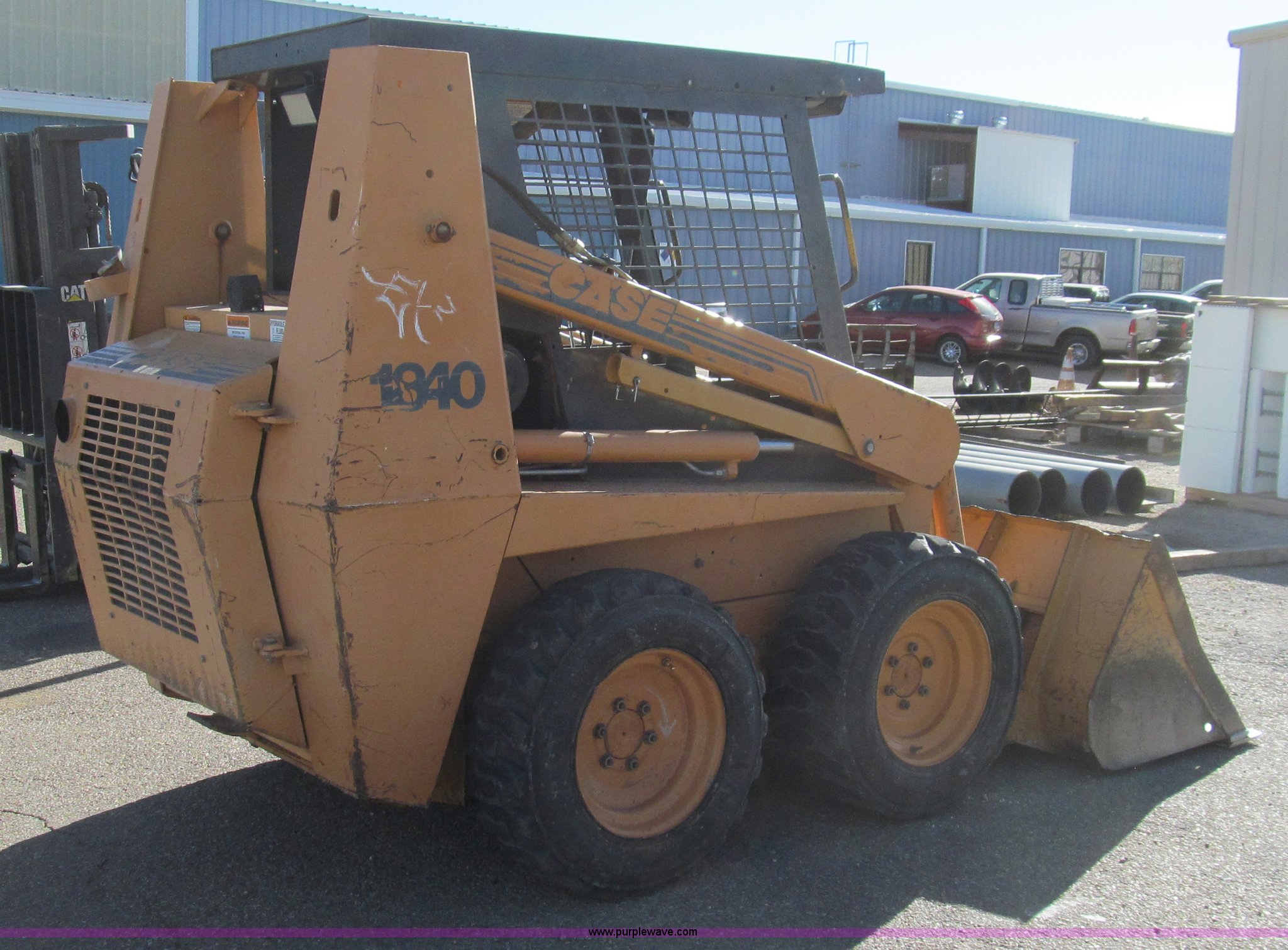 Purple Wave is selling a used Skid Steer Loader in Texas. This item is a 2000 Case 1840 skid steer with the following: Case 4-390 four cylinder engine, 54 HP, 19.5 gallon fuel capacity, 7' ground clearance at max lift and dump, 5,558 lbs. base operating weight, Serial JAF0326567