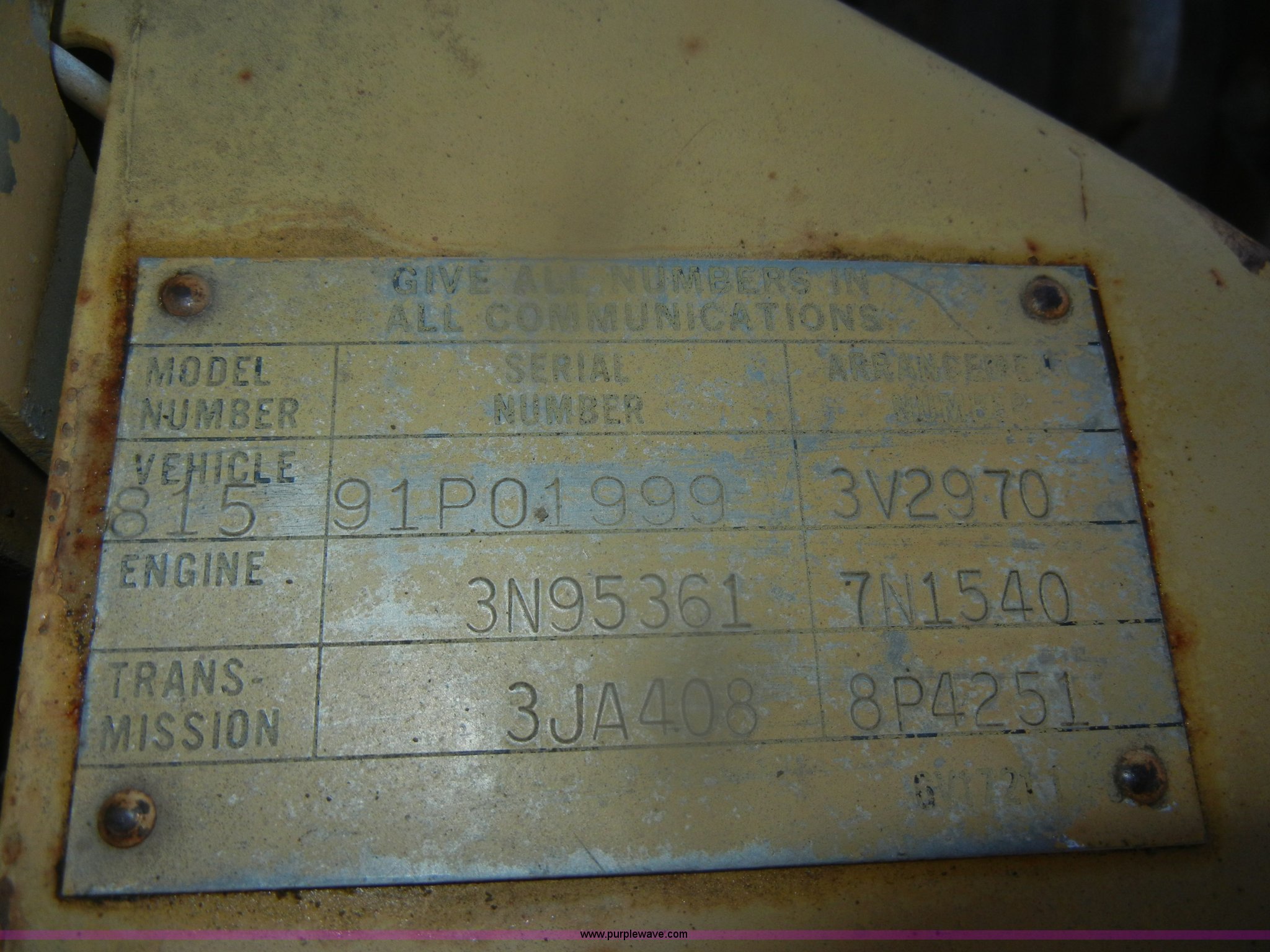 Purple Wave is selling a used Soil or Landfill Compactor in Kansas. This item is a 1980 Caterpillar 815 compactor with the following: 13,882 hours on meter, Caterpillar 3306 diesel engine, 170 HP, Serial 3N95361, Powershift transmission, 4F-4R gears, Serial 3JA408, Canopy, Air brakes, 137" straight dozer blade, Bolt-on smooth edge, (4) 37"W padfoot rollers, 38,200 lbs. base operating weight, Services records available, Serial 91P01999