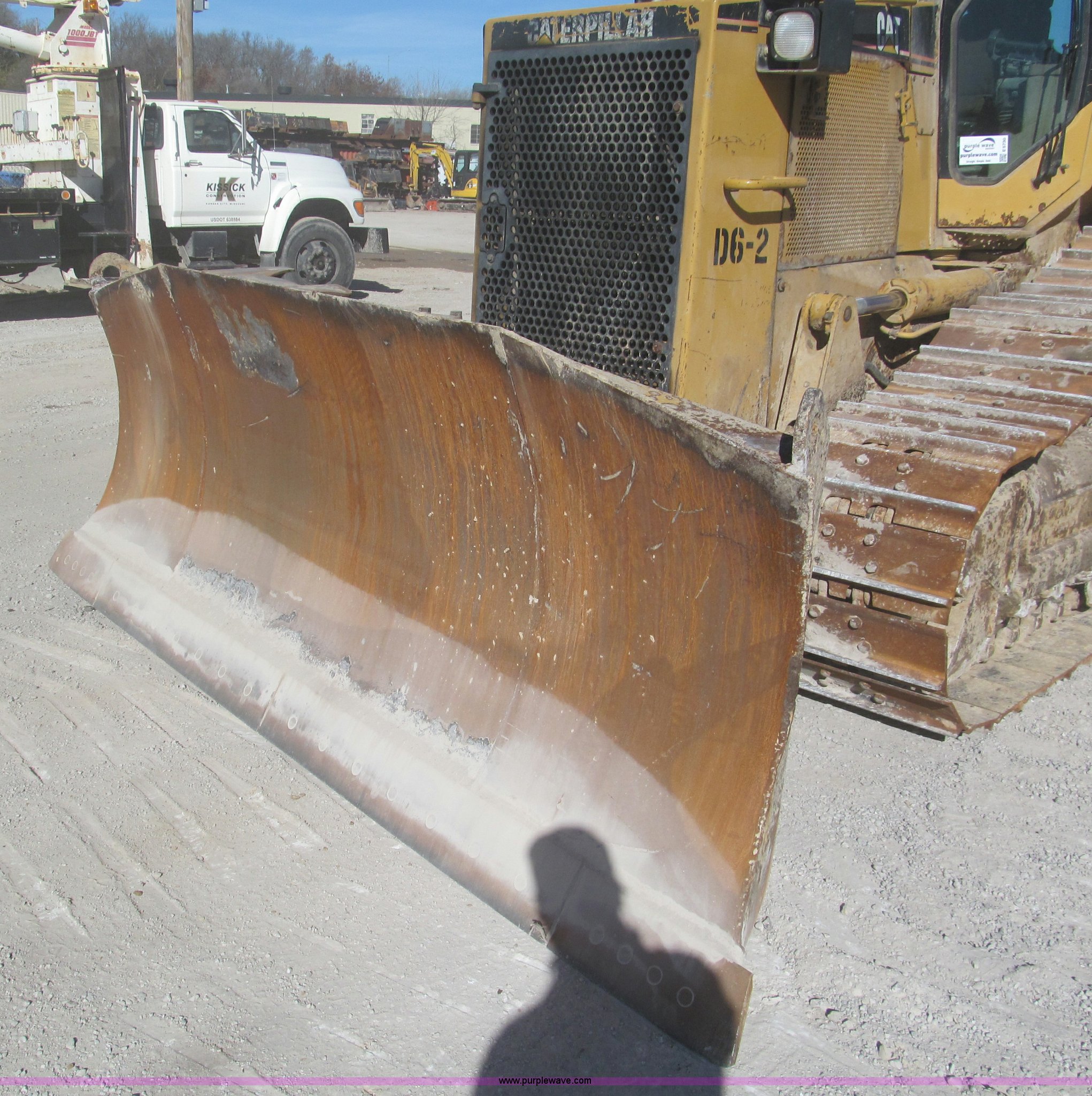 1998 Caterpillar D6M XL dozer. 16,022 hours on meter, Caterpillar 3116 six cylinder turbo diesel engine 140 HP, Powershift transmission, Enclosed cab AC and heat, 128"W blade Bolt-on cutting edge, Rear draw bar, 24"W single grouser tracks, 34,240 lbs. base operating weight, Turbo replaced on August 7, 2012, Fuel pump replaced on October 28, 2011, Lift cylinder repacked on February 14, 2011, Serial 3WN01277. View equipment video. Shipping quotes available. Kissick Construction. 8131 Indiana Ave. Kansas City, MO 64132