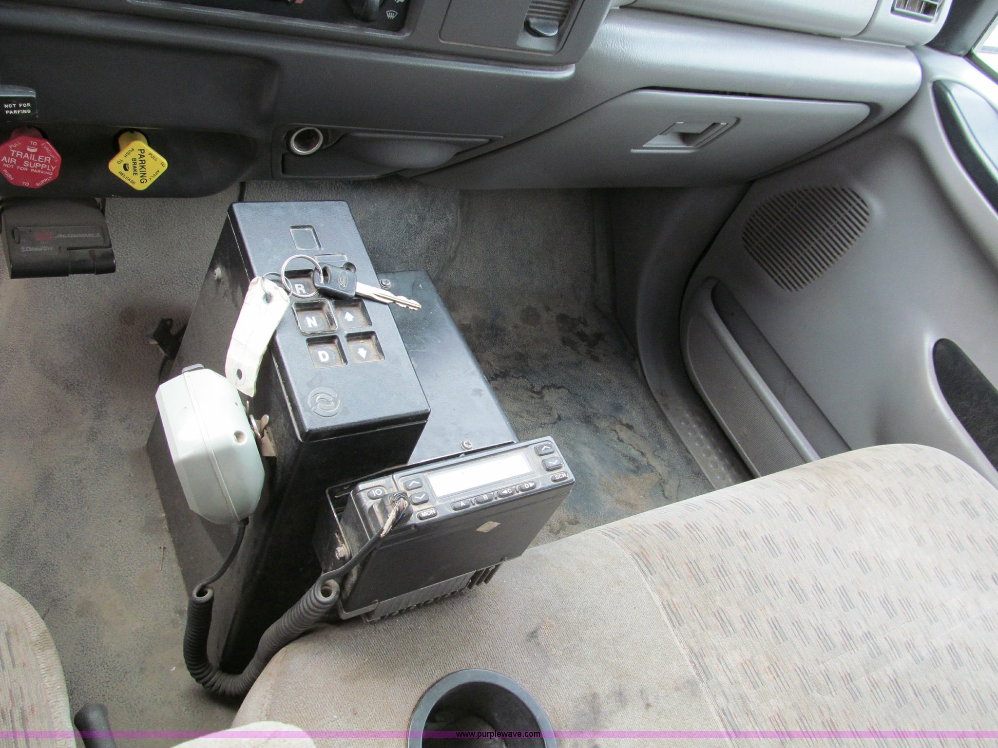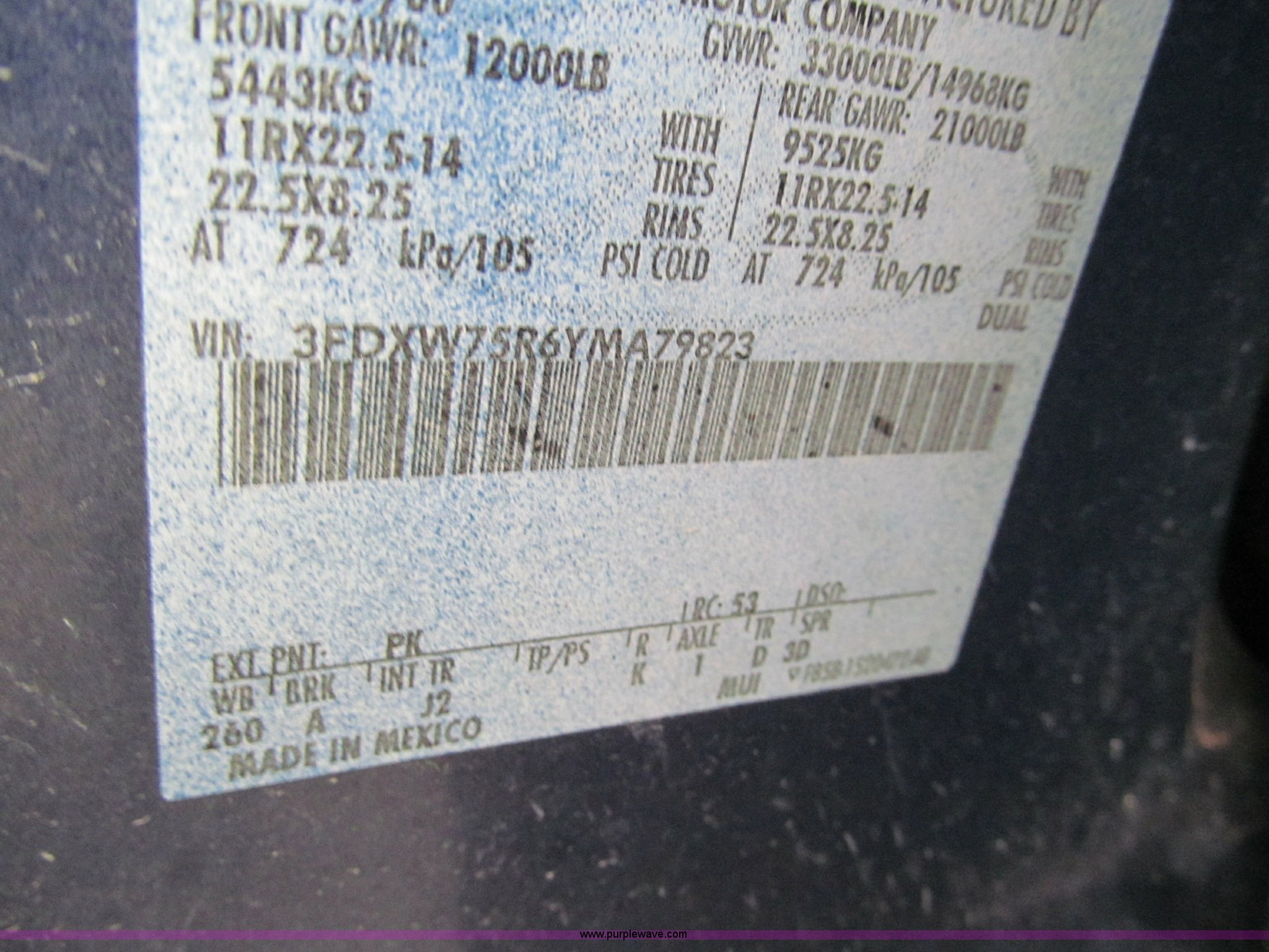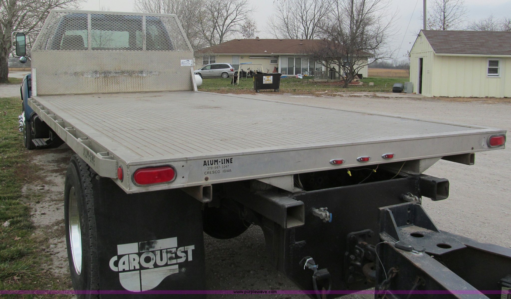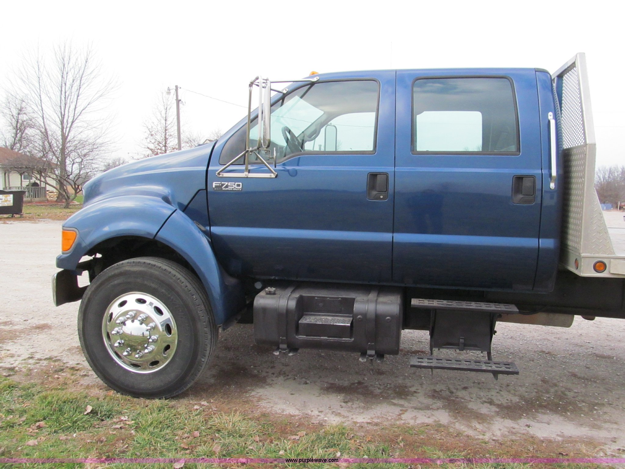 Purple Wave is selling a used Flat Bed Truck in Missouri. This item is a 2000 Ford F750 XLT quad cab flatbed truck with the following: 215,651 miles on odometer, Caterpillar 3126 turbo diesel engine, Allison automatic transmission, AC and heat, AM/FM/CD, Spring suspension seat, Power windows, CB radio, Electric brake controller, Six passenger capacity, Alum-Line flatbed, 17'L x 8'W, Aluminum headache rack, Rub rail, Chrome bumper, Block heater, Dual 50 gallon fuel tanks, Spring suspension, Aluminum wheels, Nut covers, Air brakes, Pintle hitch, Trailer air brakes, Rear receiver tubes for truck mounted forklift, 11R22.5 tires, 33,000 lbs GVWR, 12,000 lbs FAWR, 21,000 lbs RAWR