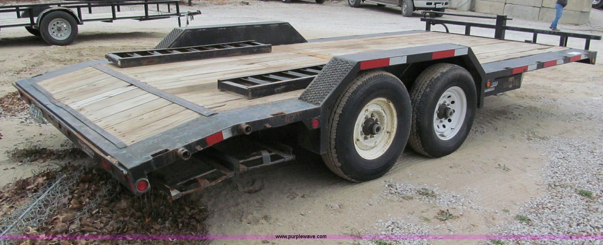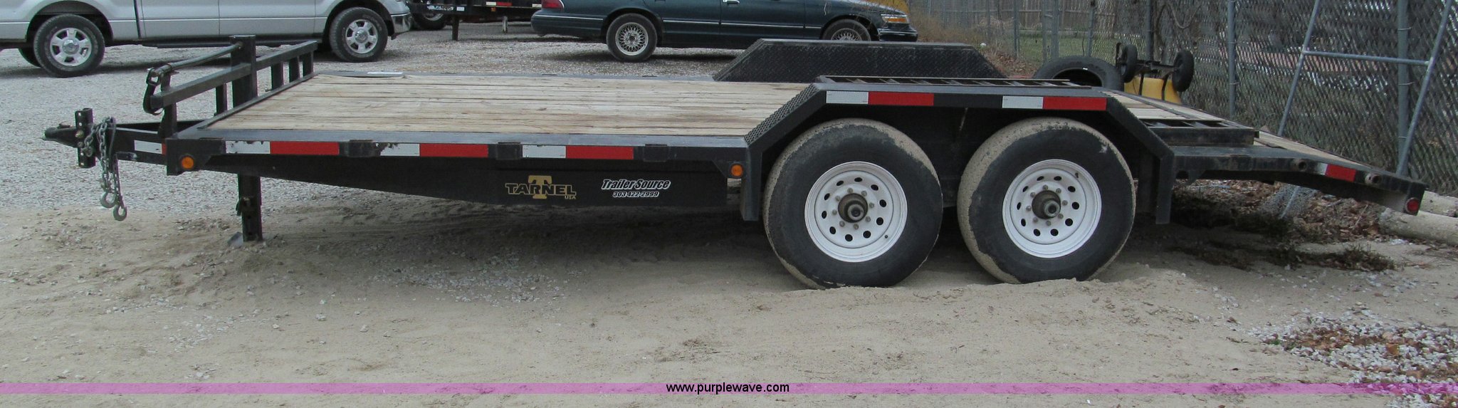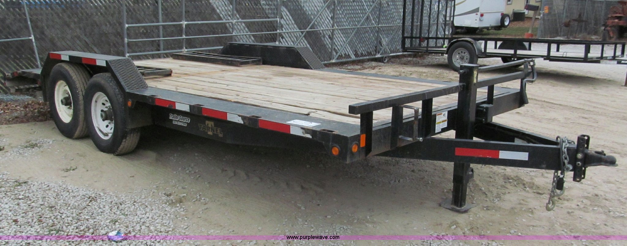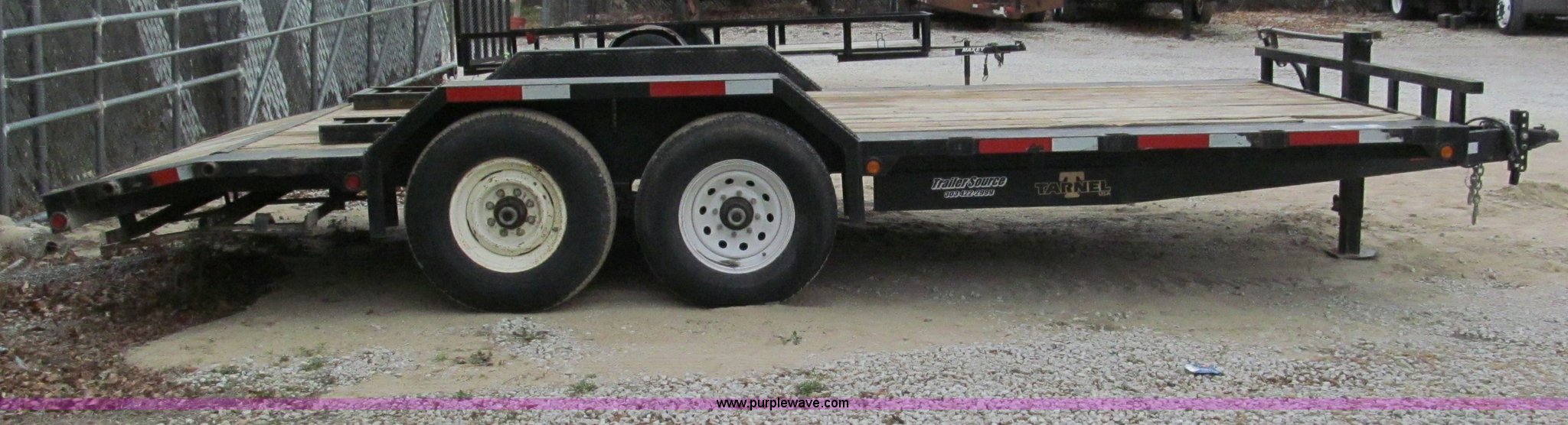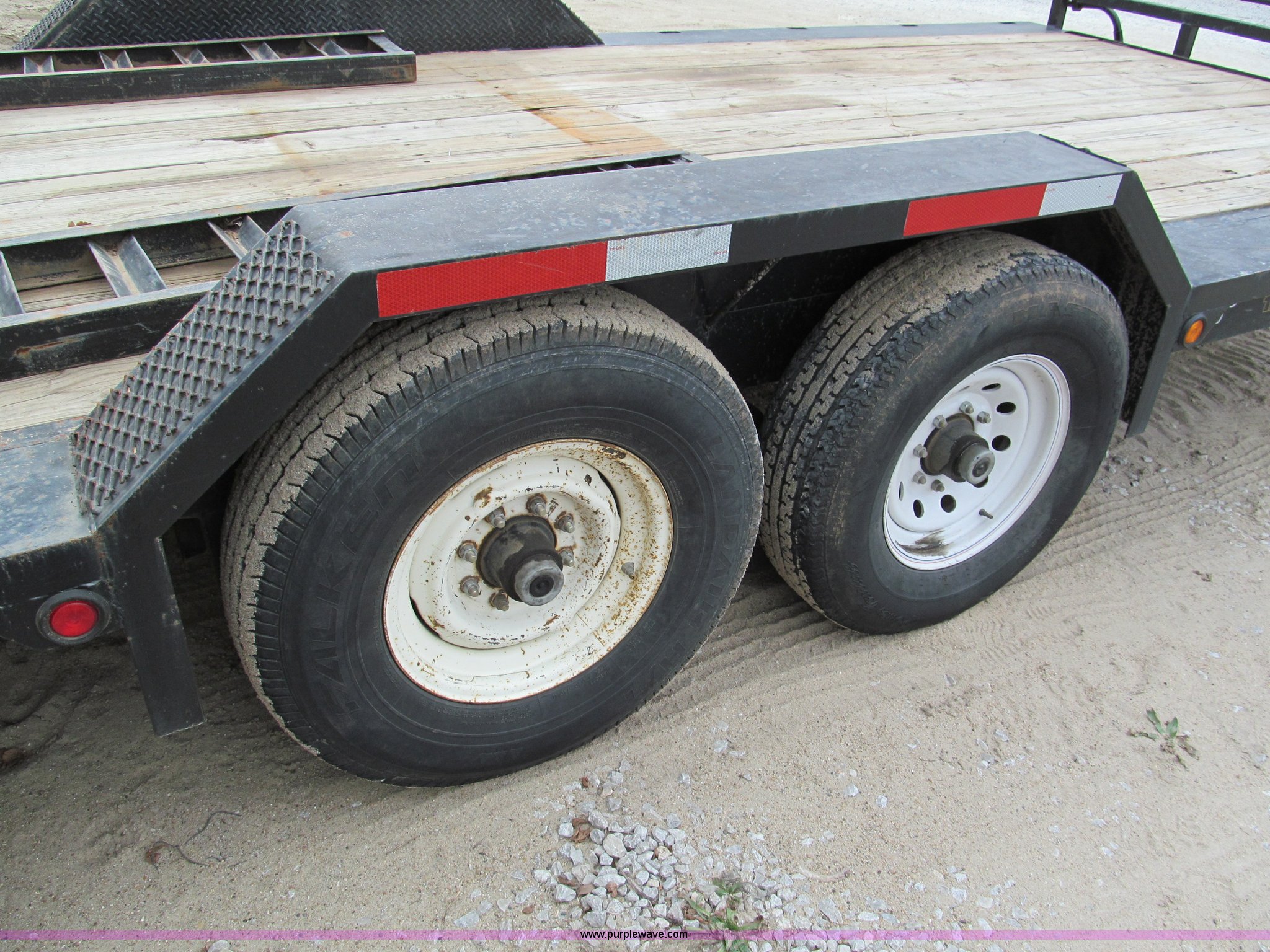 Purple Wave is selling a used Car or Utility Trailer in Missouri. This item is a 2009 Long Tarnel 18' equipment trailer with the following: 16'L flat deck, 2'L dovetail, 8'5"W, Steel fender, Steel deck extensions, Stake pockets, Single landing gear, Electric brakes, Safety break away system, 2 5/16" adjustable height ball, Dual 7,000 lb axles, 235/80R16 tires, GVWR 14,000 lbs