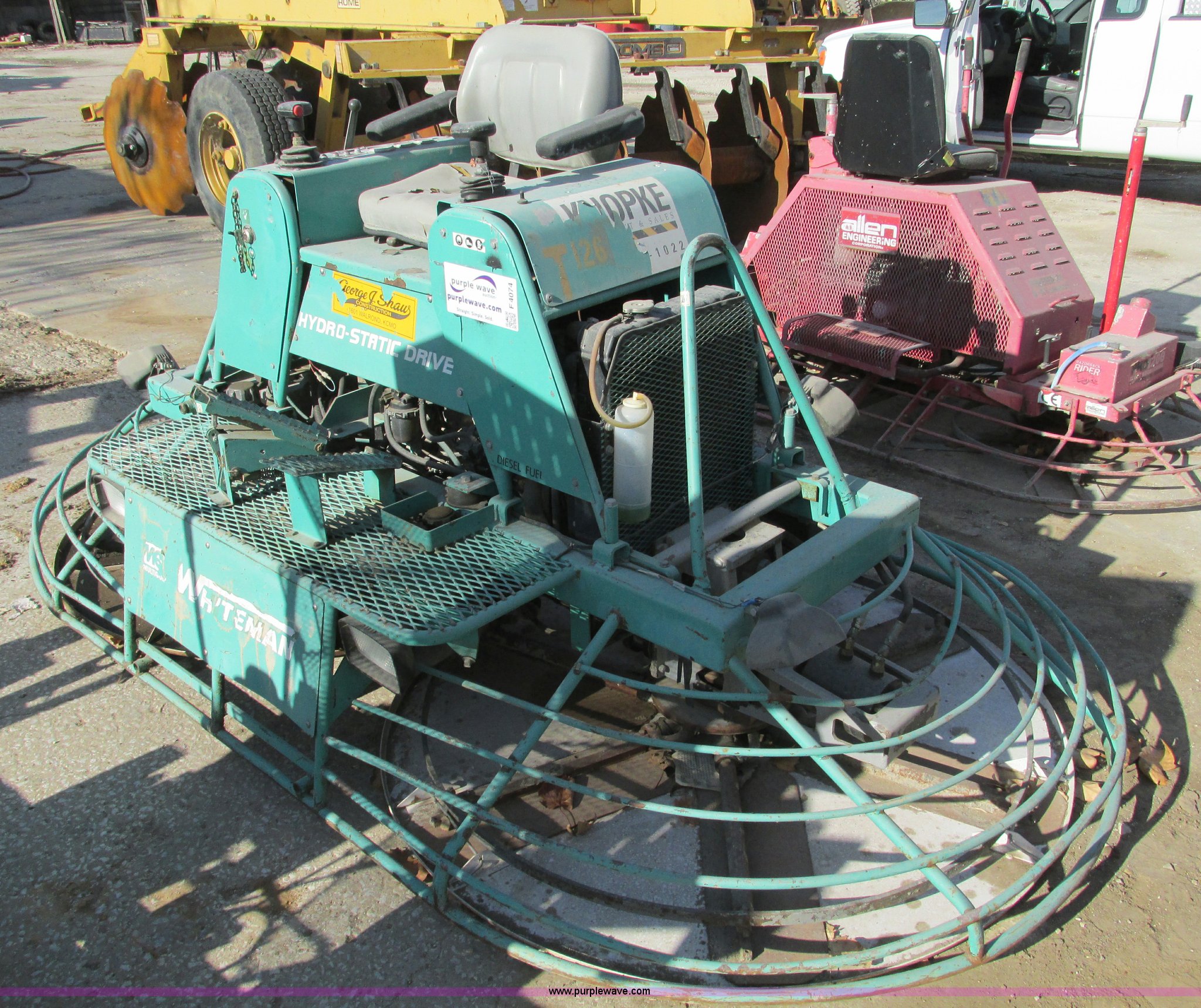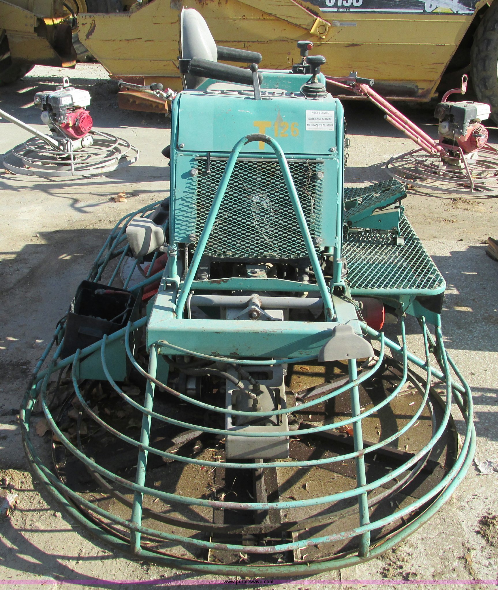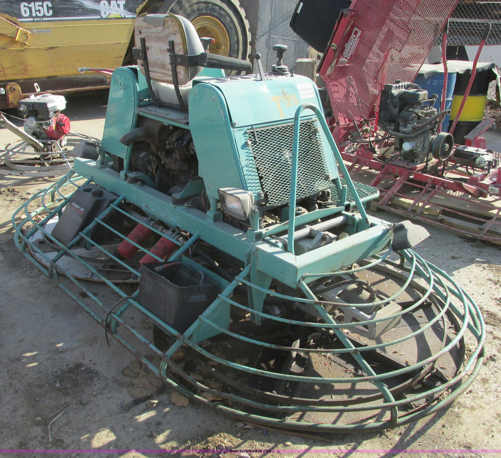 Purple Wave is selling a used Concrete Equip. or Acces. in Missouri. This item is a Whiteman 10' ride-on power trowel with the following: Model STH55JDTCSL, John Deere four cylinder turbo diesel engine, Hydrostatic drive, Lifting eye on both sides, No battery, Serial IF60330, Unit# T-126