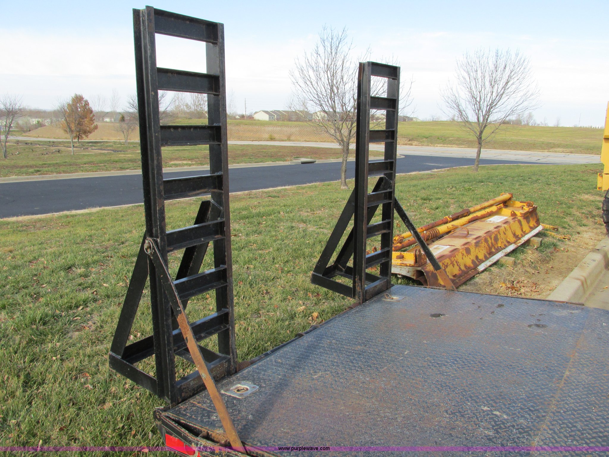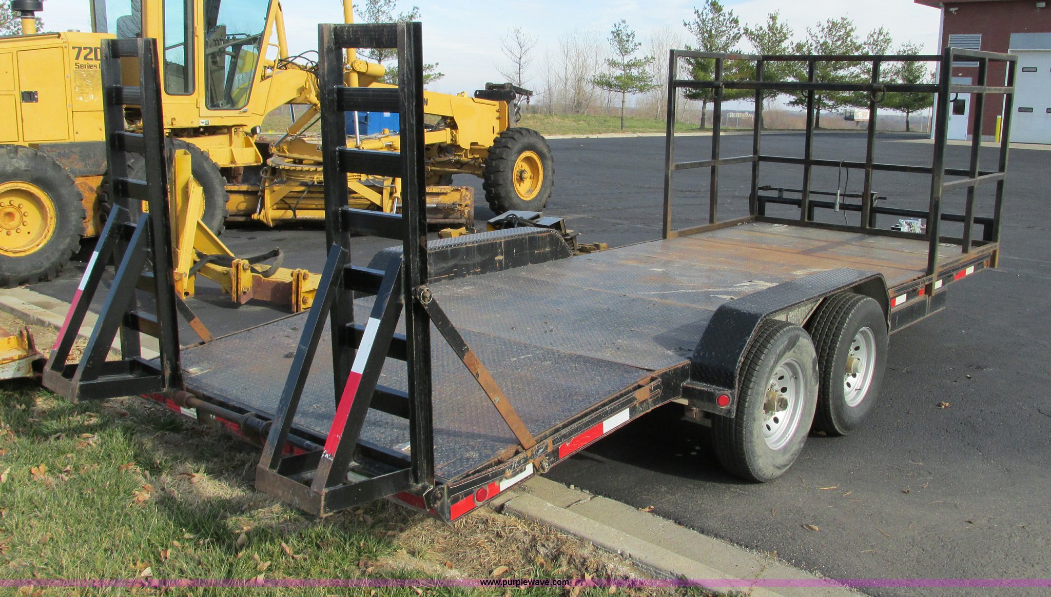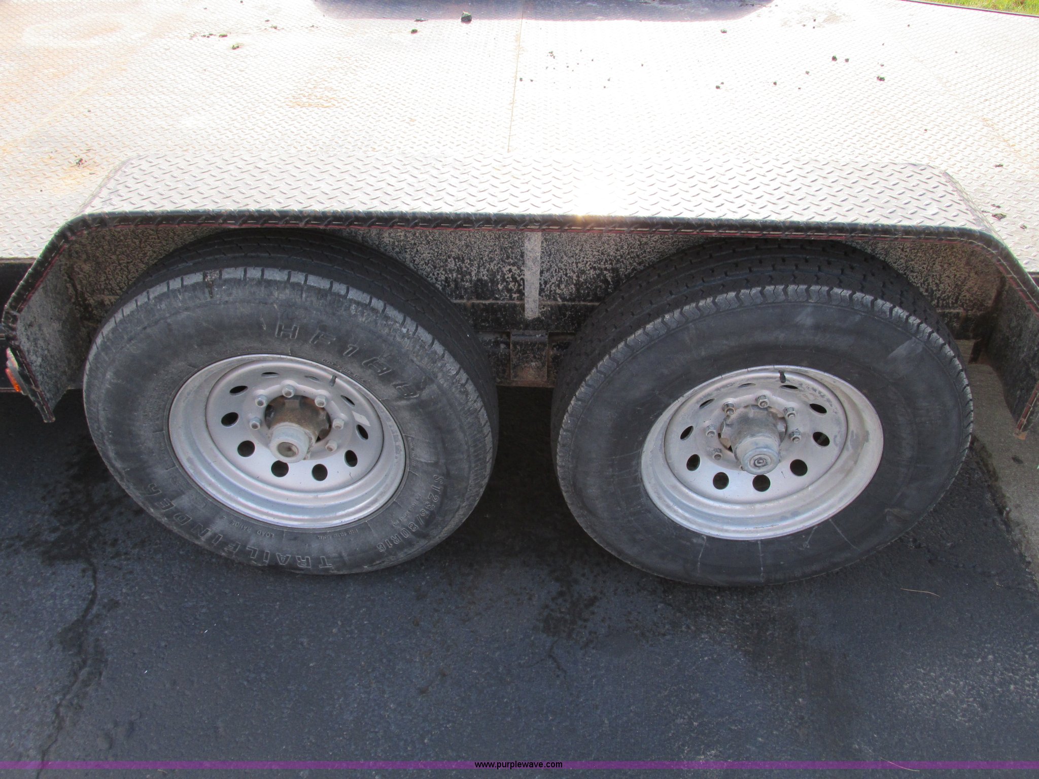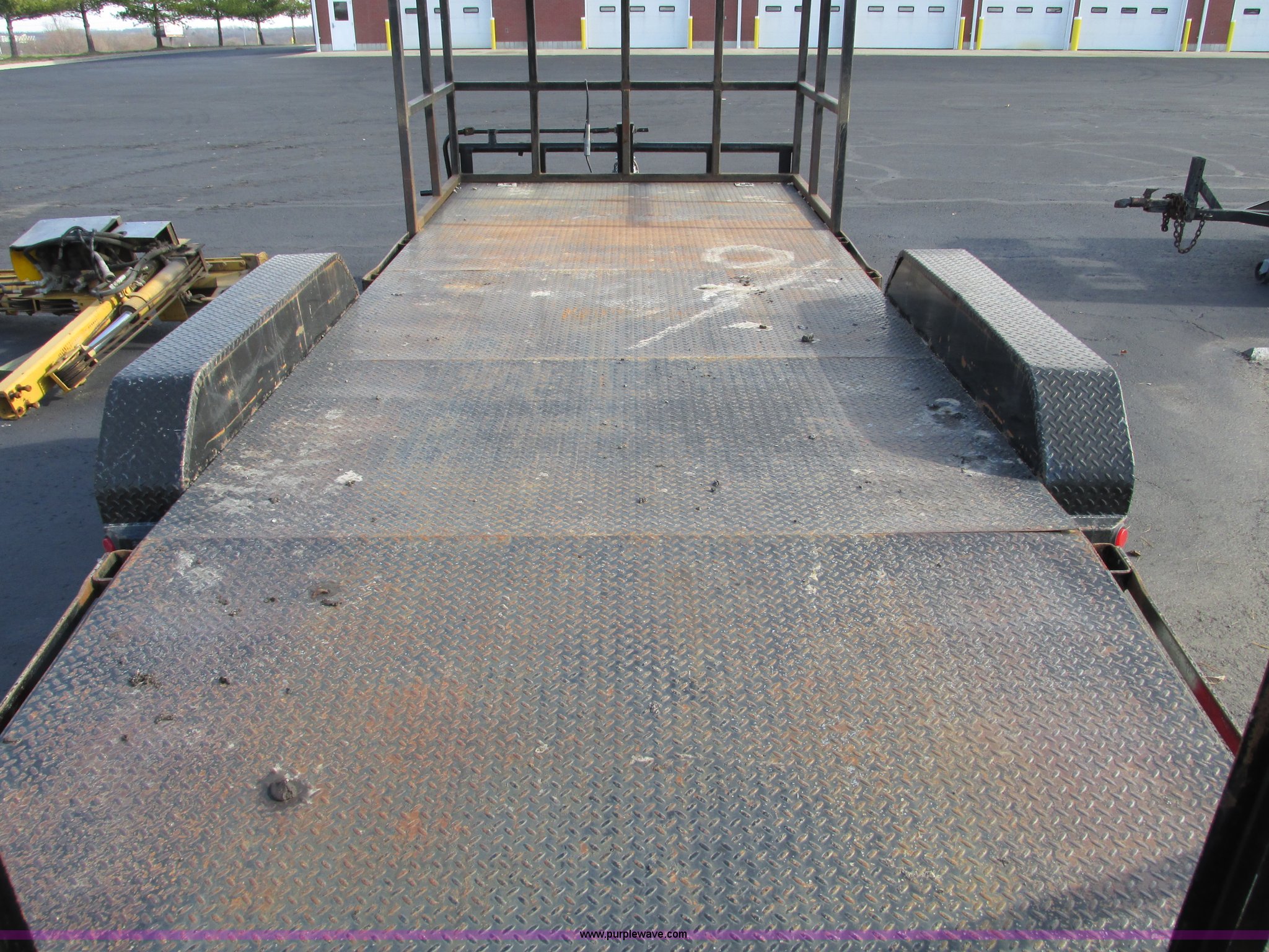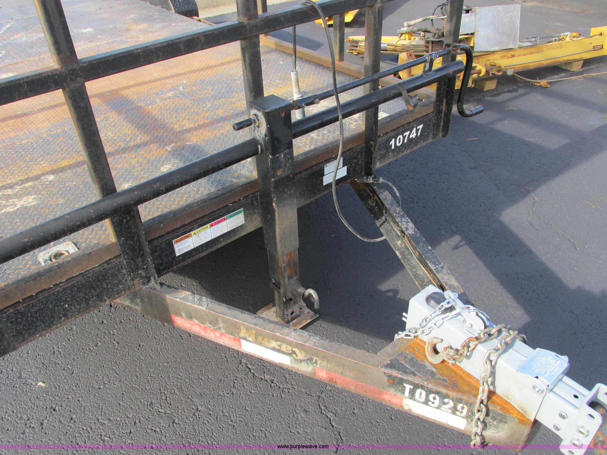 Purple Wave is selling a used Car or Utility Trailer in Missouri. This item is a 2008 Maxey 20' car hauler trailer with the following: 6'11"W, Front overhead storage rack, 5'L x 7'W x 9'H, Pintle hitch, Safety brake chain, 5'L x 16"W ramps, Spring assist hinges, Marker lights on sides, Heavy duty jack, Eight lug axles, 235/80R16 tires, Load Range E, GVWR 17,000 lbs, GAWR 7,000 lbs, MoDOT ID T0929