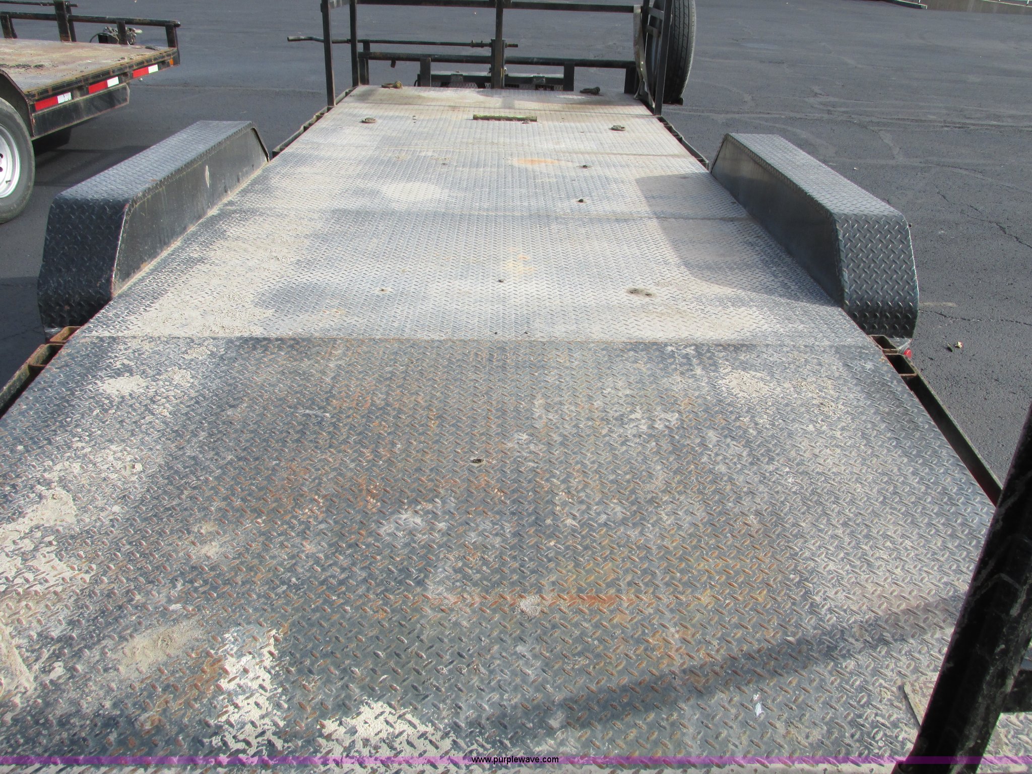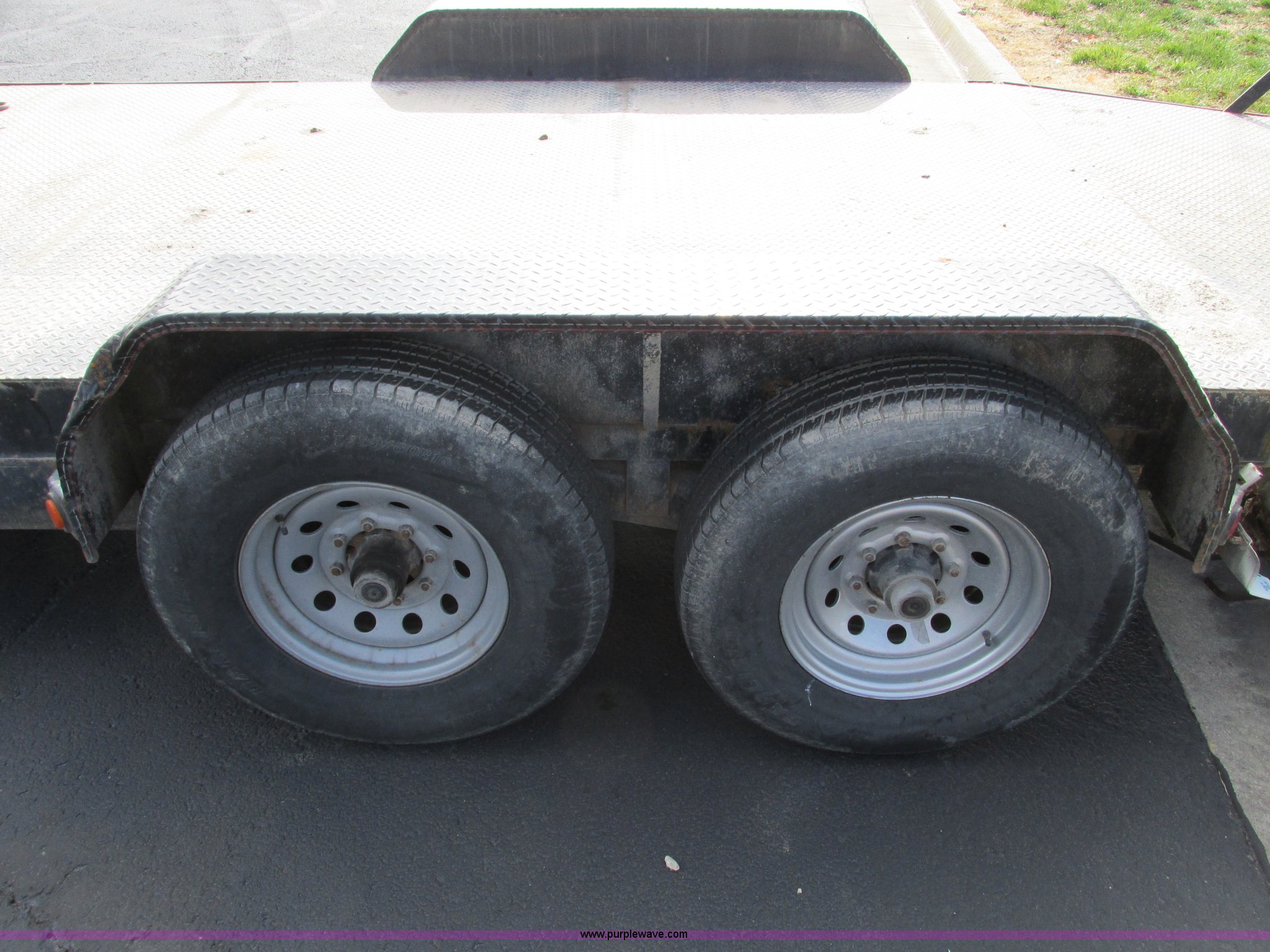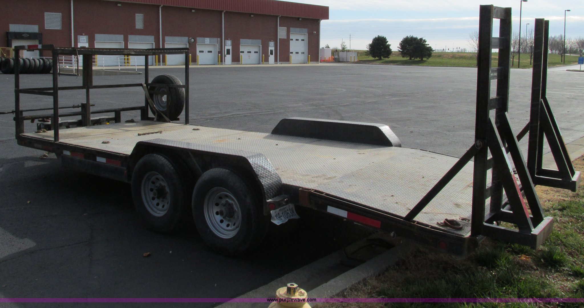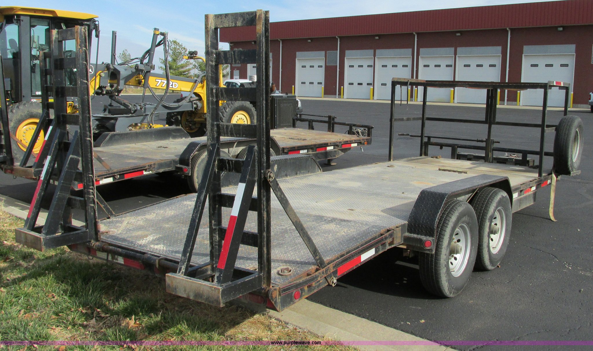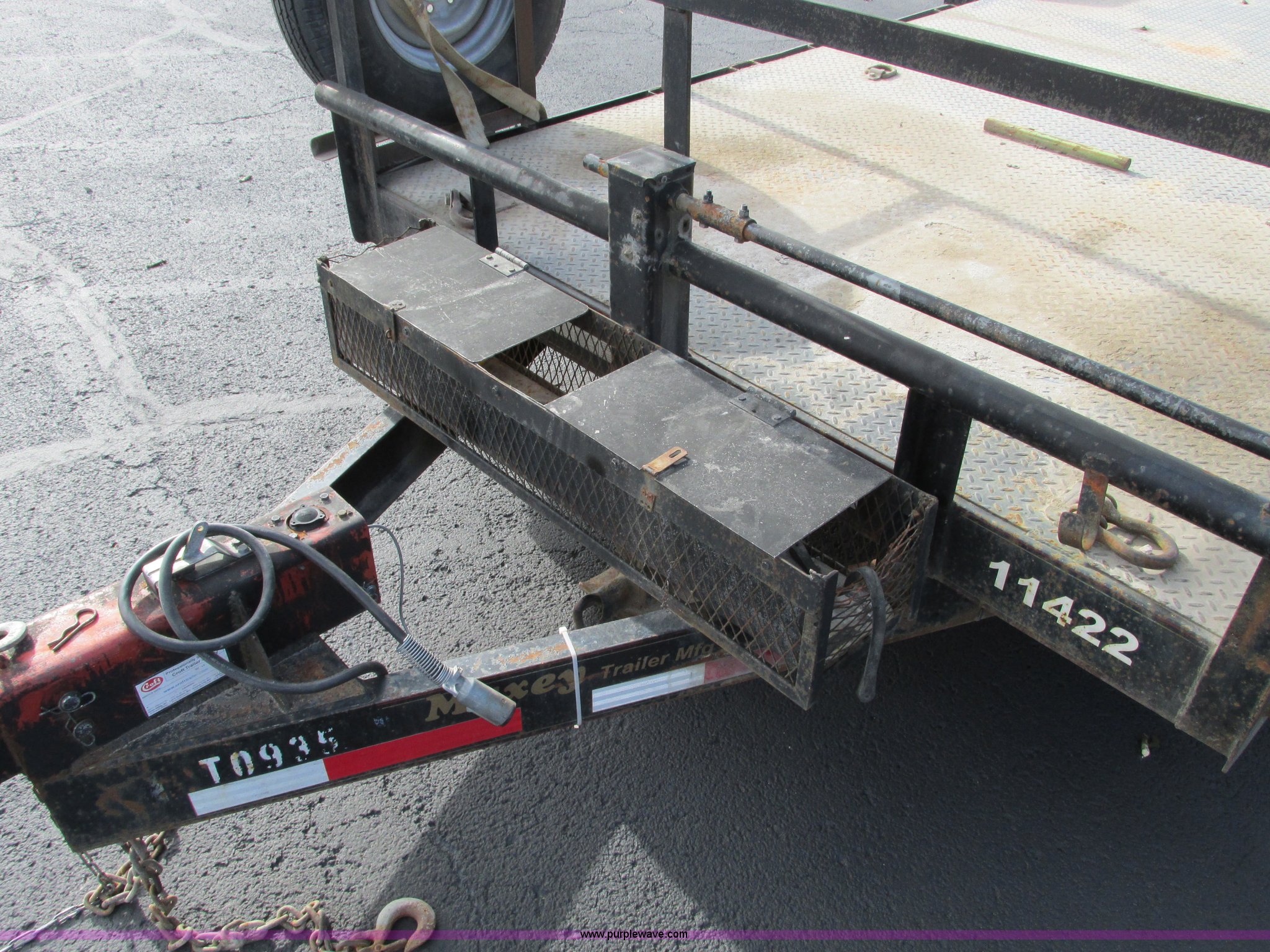 Purple Wave is selling a used Car or Utility Trailer in Missouri. This item is a 2008 Maxey 20' car hauler trailer with the following: 6'11"W, Safety break away system, Front storage box and overhead rack, 7'3"W x 3.5'D x 3'2"H rack, Side marker lights, 5'L x 16"W ramps, Spring assist hinges, Pintle hitch, Heavy duty jack, Eight lug axles, 235/80R16 tires, Load Range E, GVWR 14,000 lbs, GAWR 7,000 lbs, MoDOT ID T0935