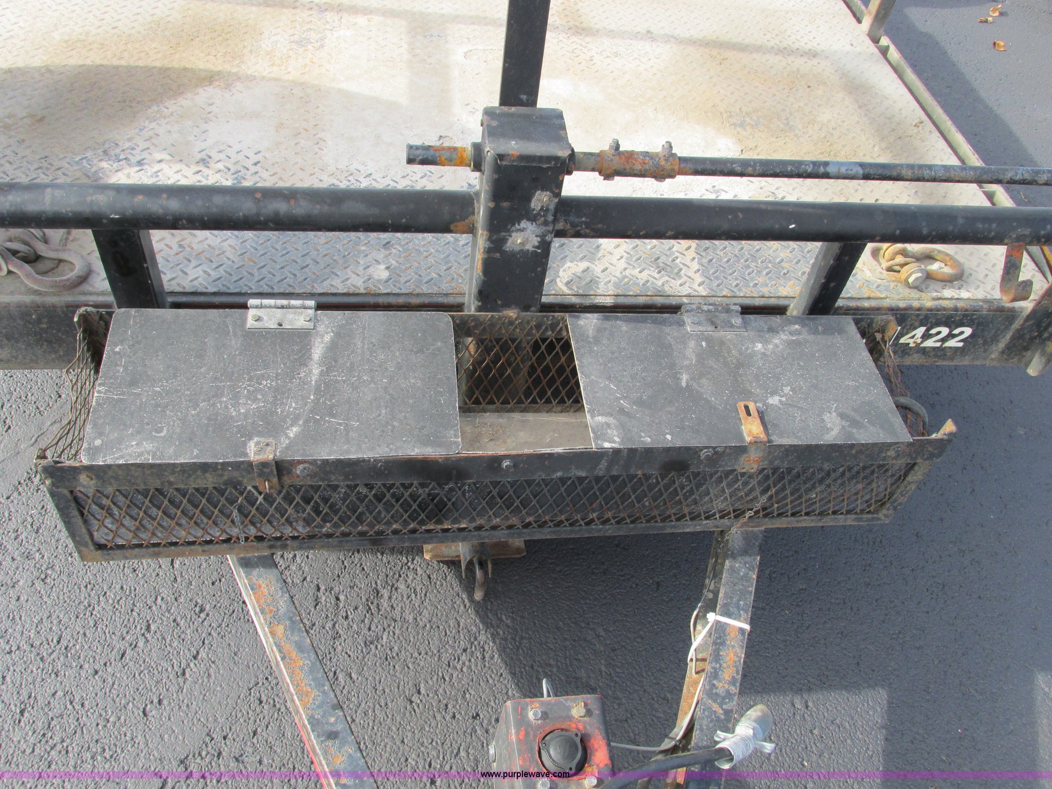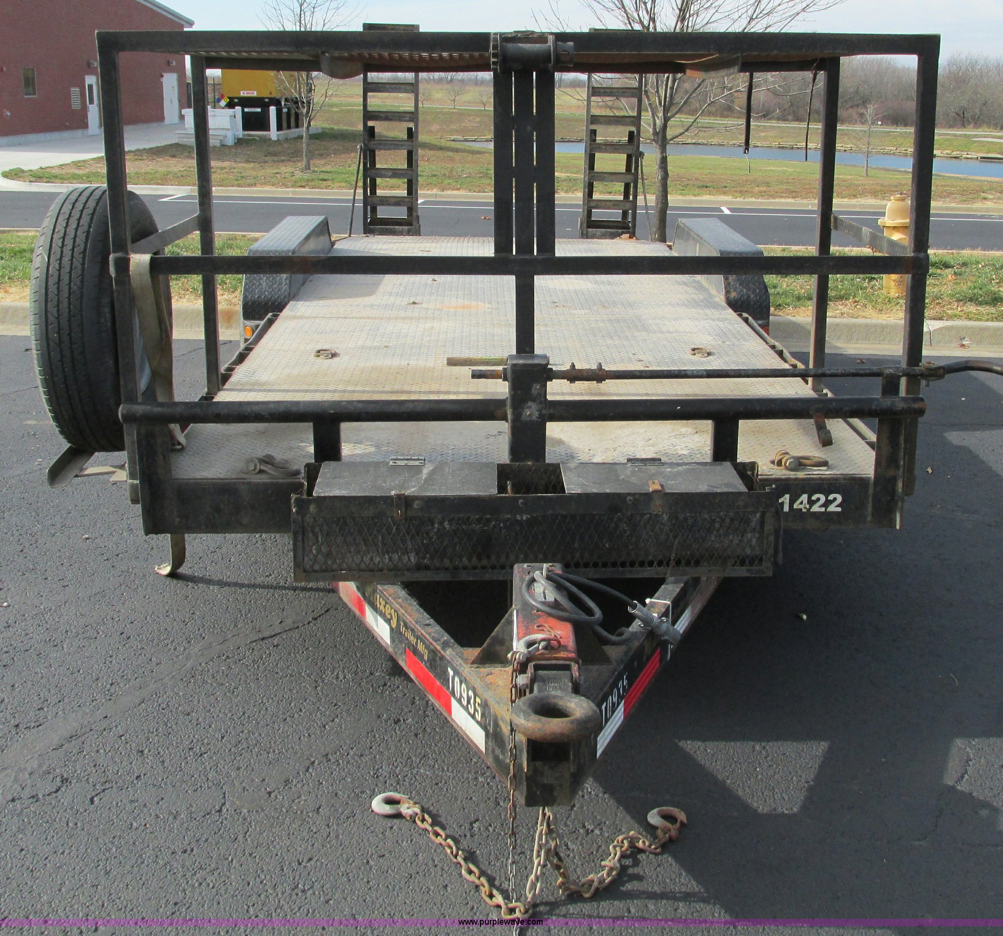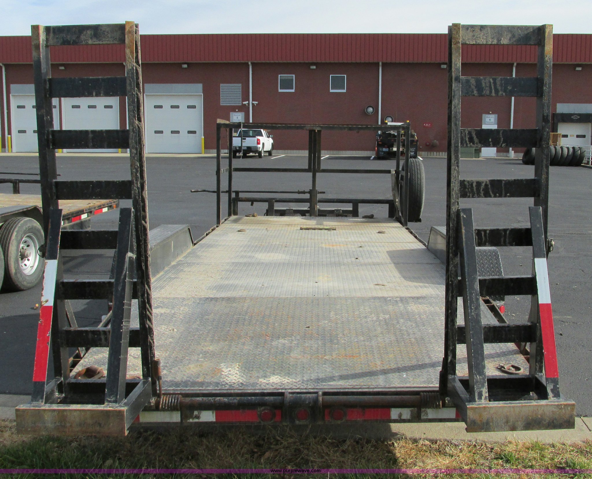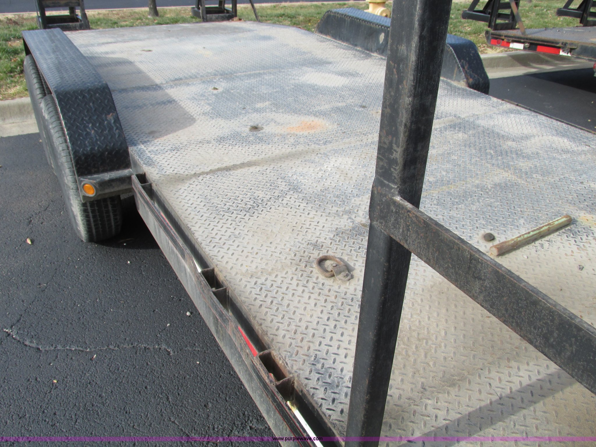 Purple Wave is selling a used Car or Utility Trailer in Missouri. This item is a 2008 Maxey 20' car hauler trailer with the following: 6'11"W, Safety break away system, Front storage box and overhead rack, 7'3"W x 3.5'D x 3'2"H rack, Side marker lights, 5'L x 16"W ramps, Spring assist hinges, Pintle hitch, Heavy duty jack, Eight lug axles, 235/80R16 tires, Load Range E, GVWR 14,000 lbs, GAWR 7,000 lbs, MoDOT ID T0935