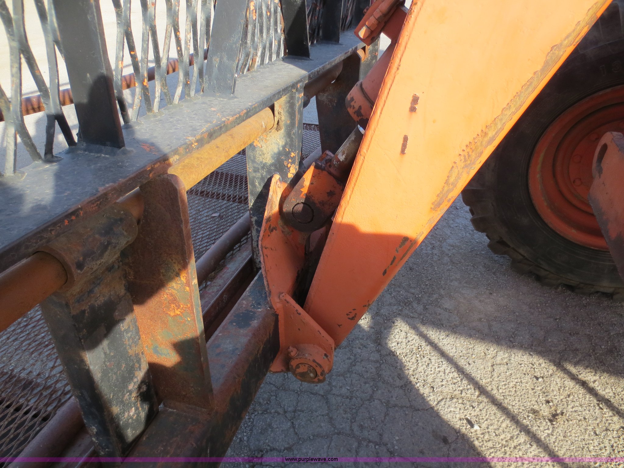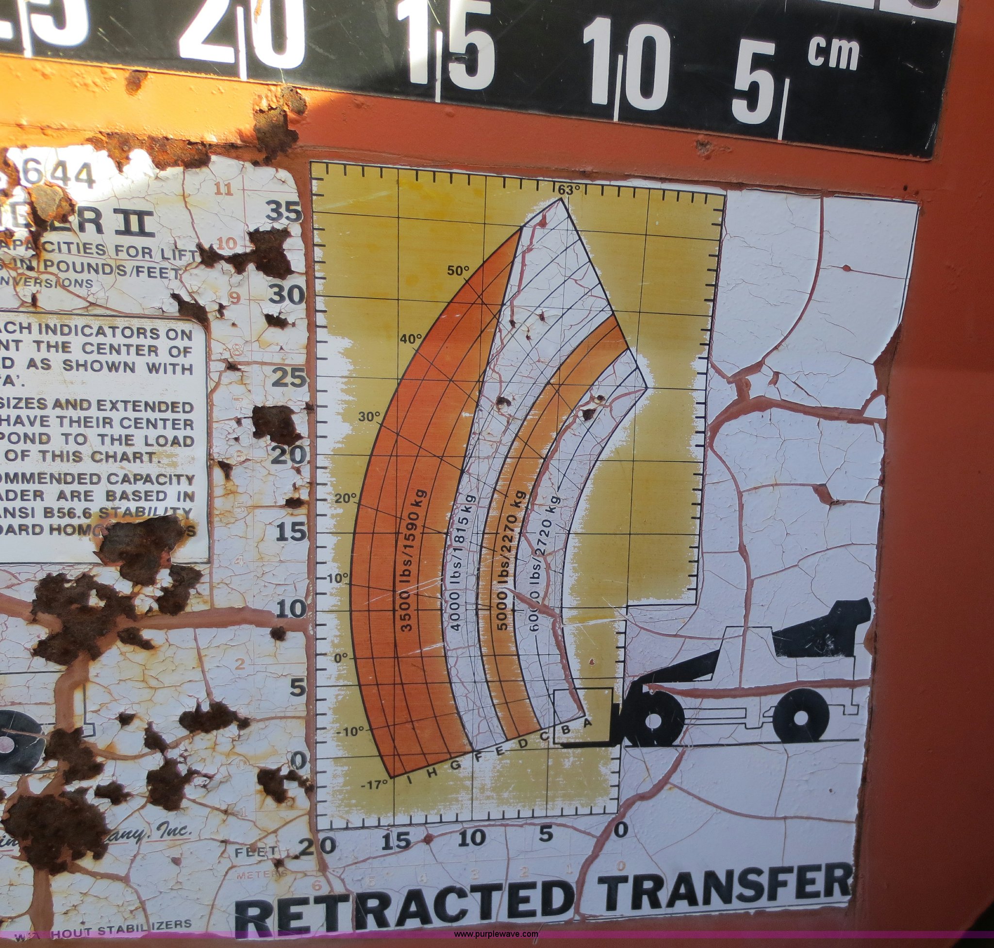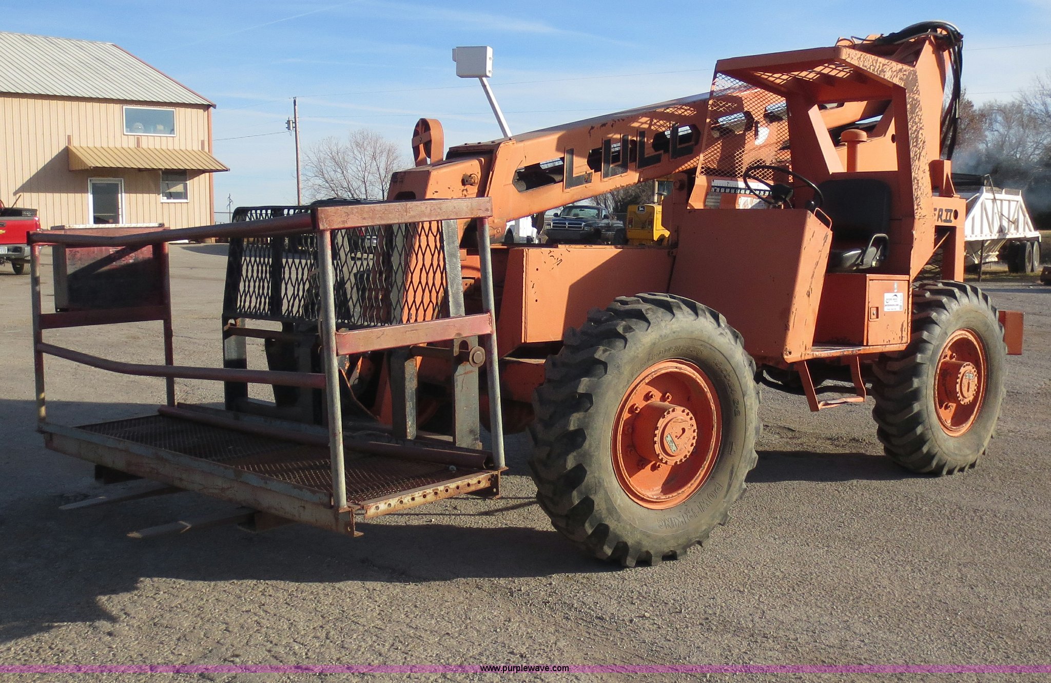 Purple Wave is selling a used Telehandler in Kansas. This item is a 1984 Lull Highlander II 644TT-34 telehandler with the following: 5,649 hours on meter, John Deere 4239 four cylinder diesel engine, Hydrostatic transmission, 3F-3R gears, Crab and circle steer, Four wheel drive, ROPS, 6,000 lb lift capacity, 44' max reach, 48"L forks, Hydraulic leveling, Transverse slide, 9' man lift, 13.00-24 tires, Water pump leak, Oil leaks, Serial JD1322LN