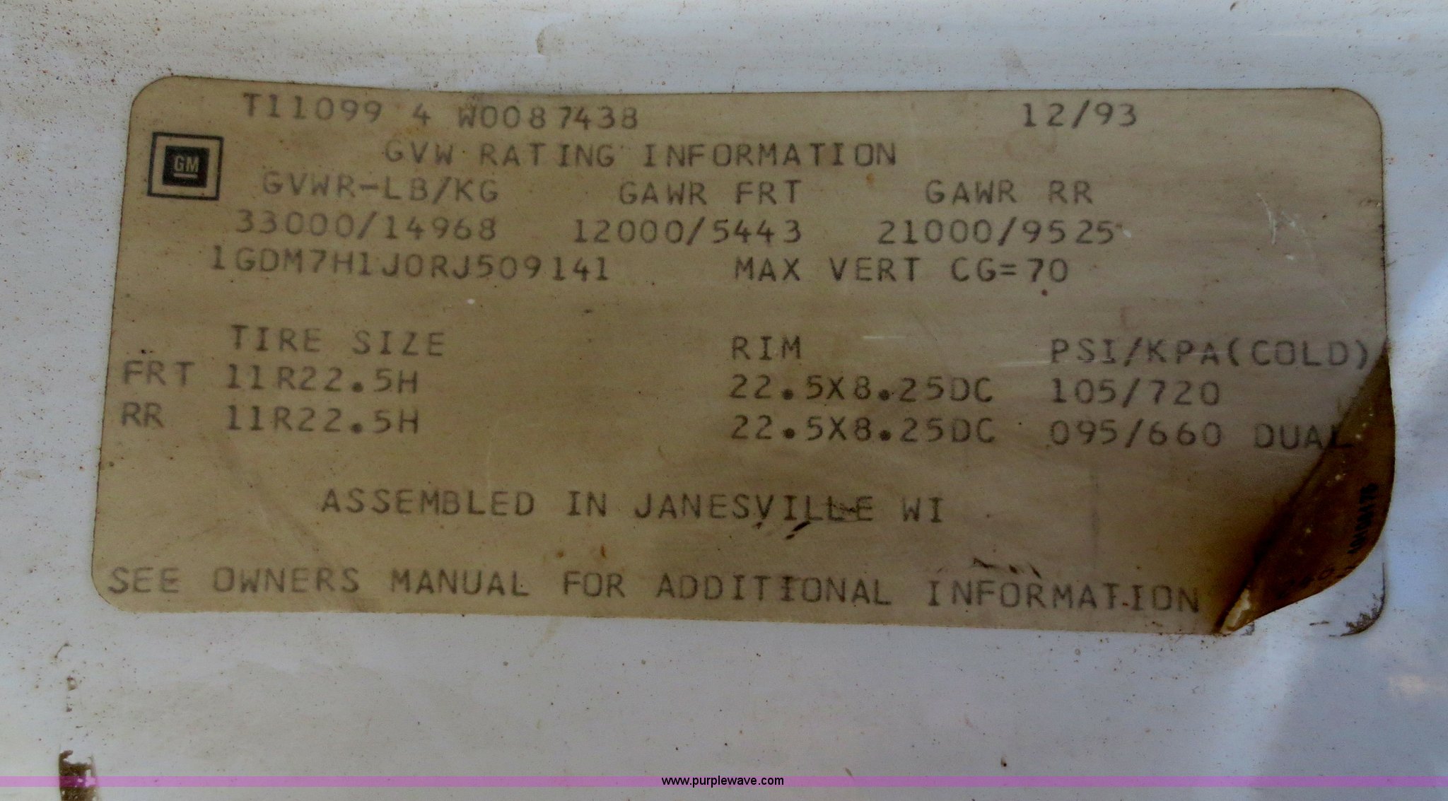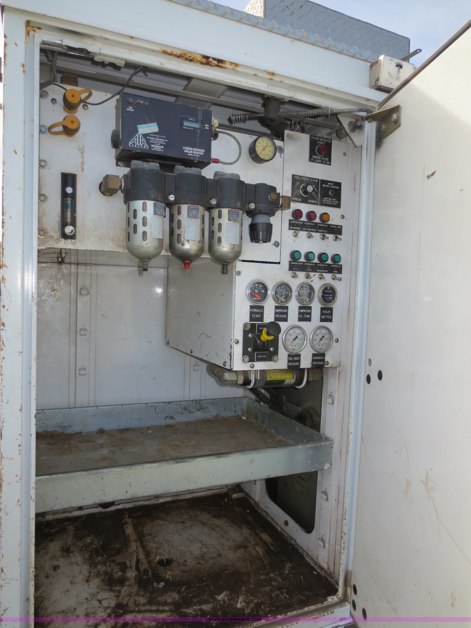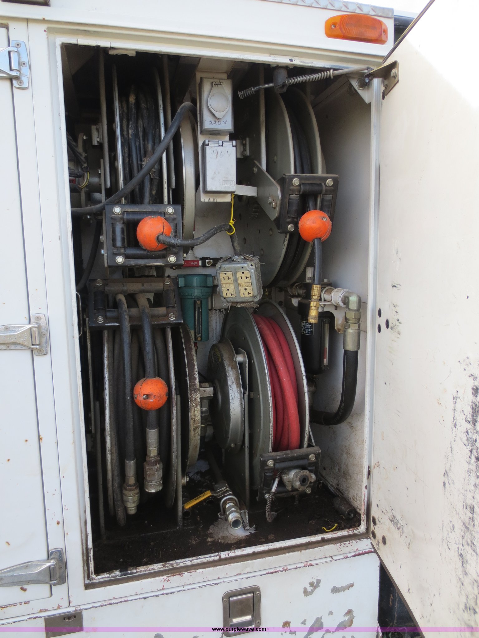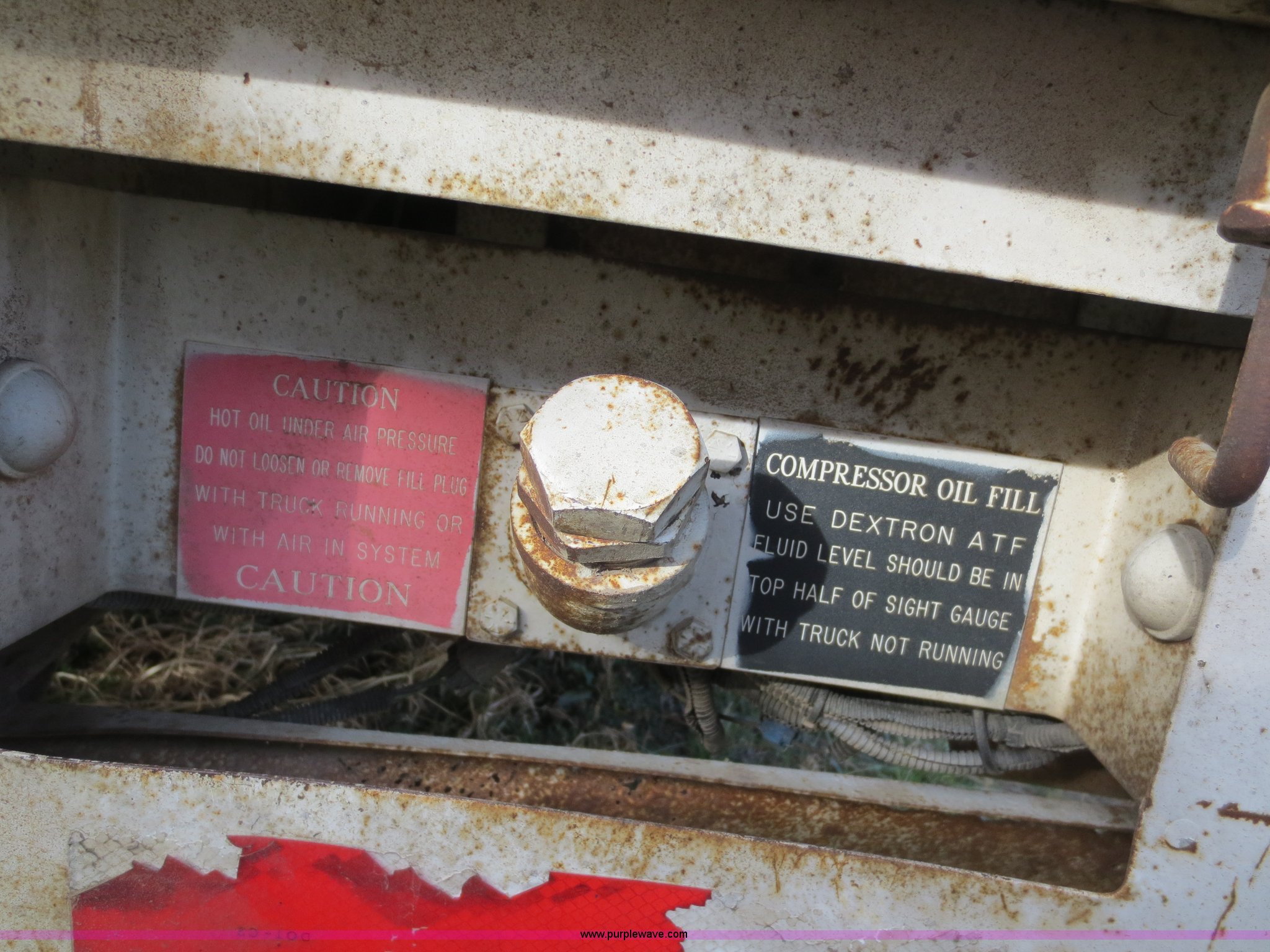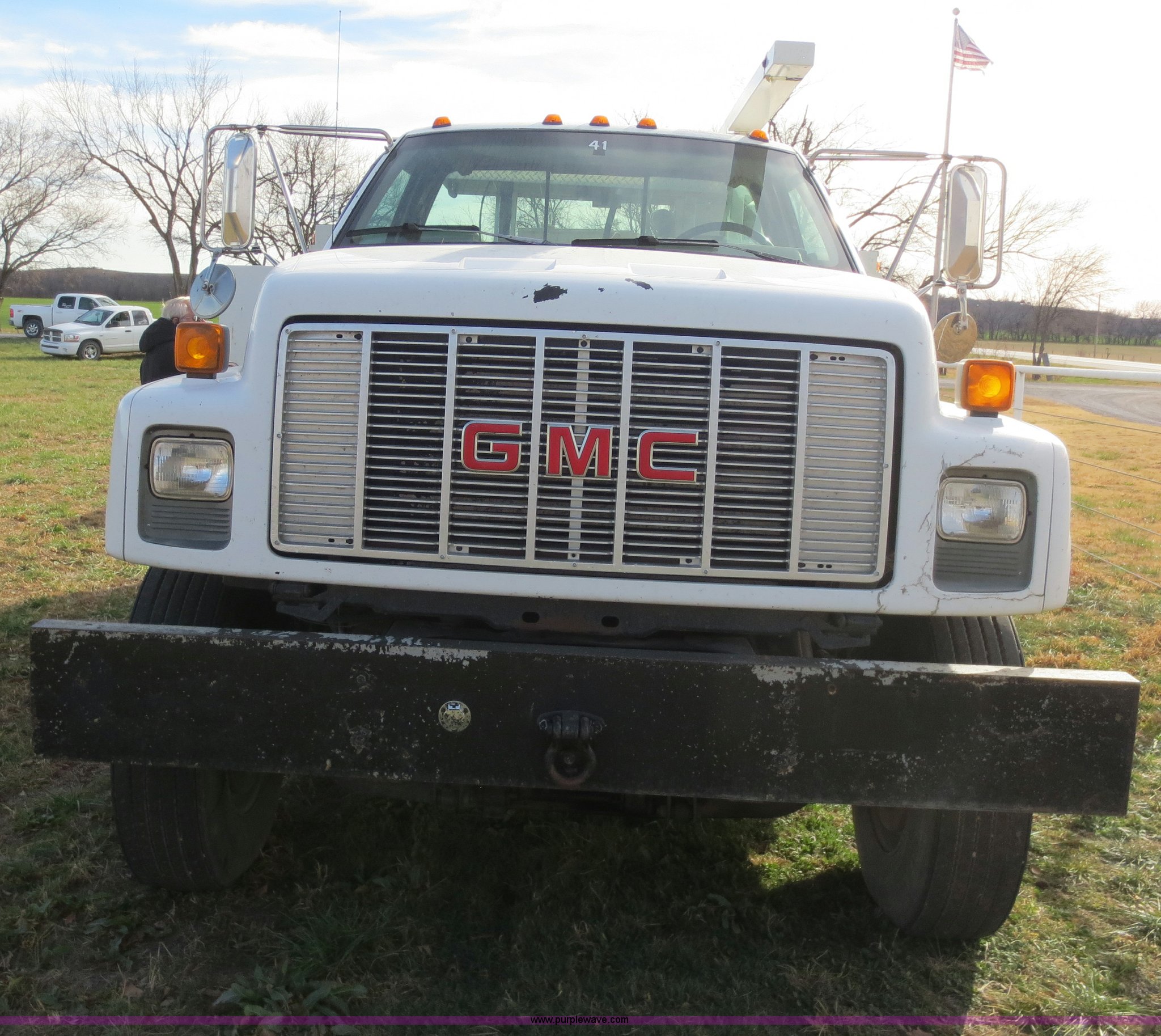 Purple Wave is selling a used Service Truck in Kansas. This item is a 1994 GMC TopKick service truck with the following: 144,443 miles on odometer, 6,569 hours on meter, Caterpillar 3116 6.6L six cylinder turbo diesel engine, Allison automatic transmission, Differential lock, Rear differential inoperable, PTO driven air compressor, Dual PSI, 185 CFM, Hose reel, Hydraulic tool circuit with hose reels, Electric reel, No generator, 4,487 PTO hours on meter, Spring suspension, Air brakes, 295/75R22.5 tires, GVWR 33,000 lbs, FAWR 12,000 lbs, RAWR 21,000 lbs
