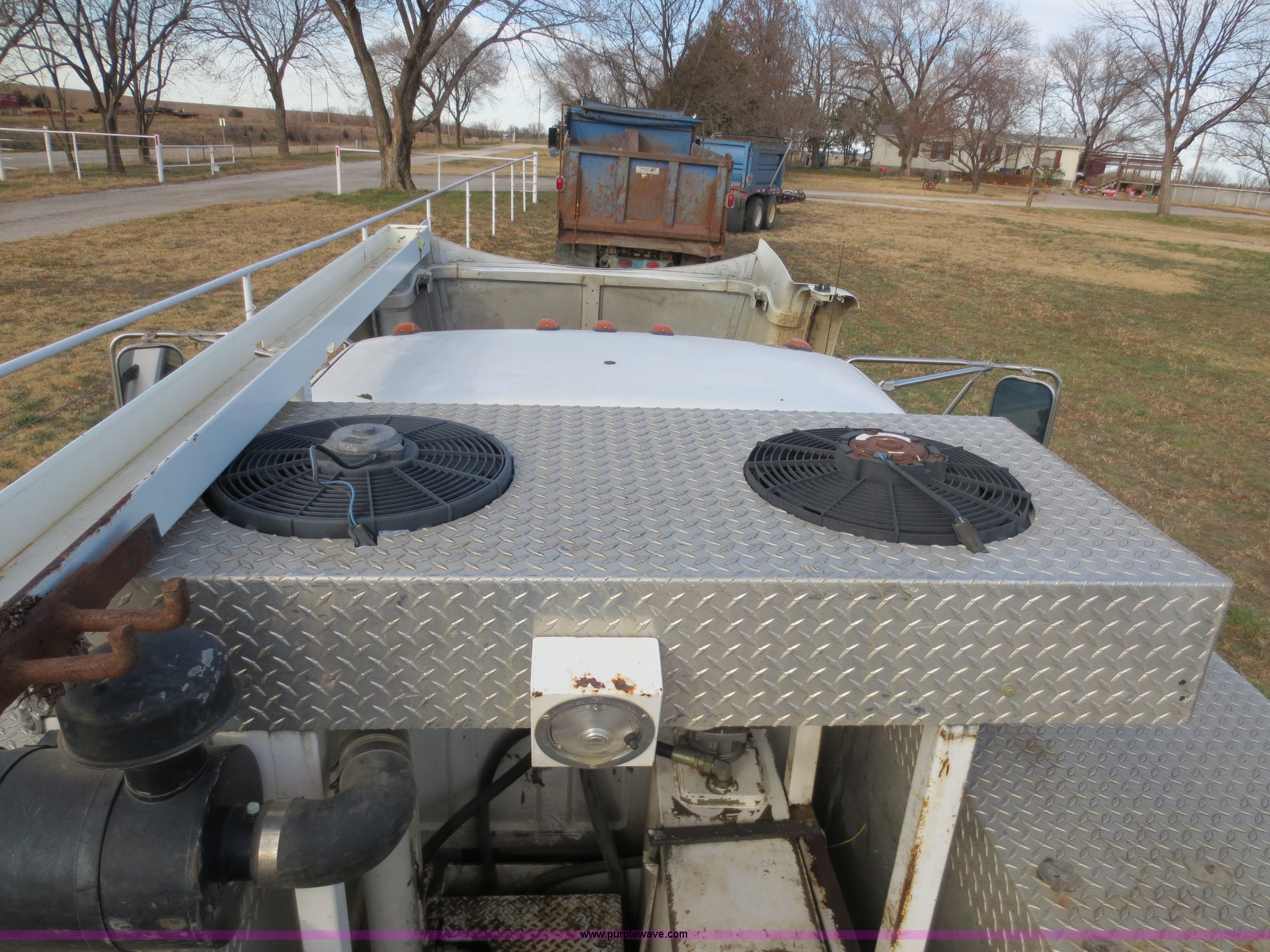 1994 GMC Topkick service truck. 144,443 miles on odometer, 6,569 hours on meter, Caterpillar 3116 6.6L six cylinder turbo diesel engine, Allison automatic transmission, Differential lock Rear differential inoperable, PTO driven air compressor Dual PSI, 185 CFM, Hose reel, Hydraulic tool circuit with hose reels, Electric reel No generator, 4,487 PTO hours on meter, Spring suspension, Air brakes, 295/75R22.5 tires, GVWR 33,000 lbs, FAWR 12,000 lbs, RAWR 21,000 lbs. 1GDM7H1J0RJ509141. Shipping quotes available. Tom's Ditching and Backhoe, Inc.. 1876 C Hwy 75. Caney, KS 67333