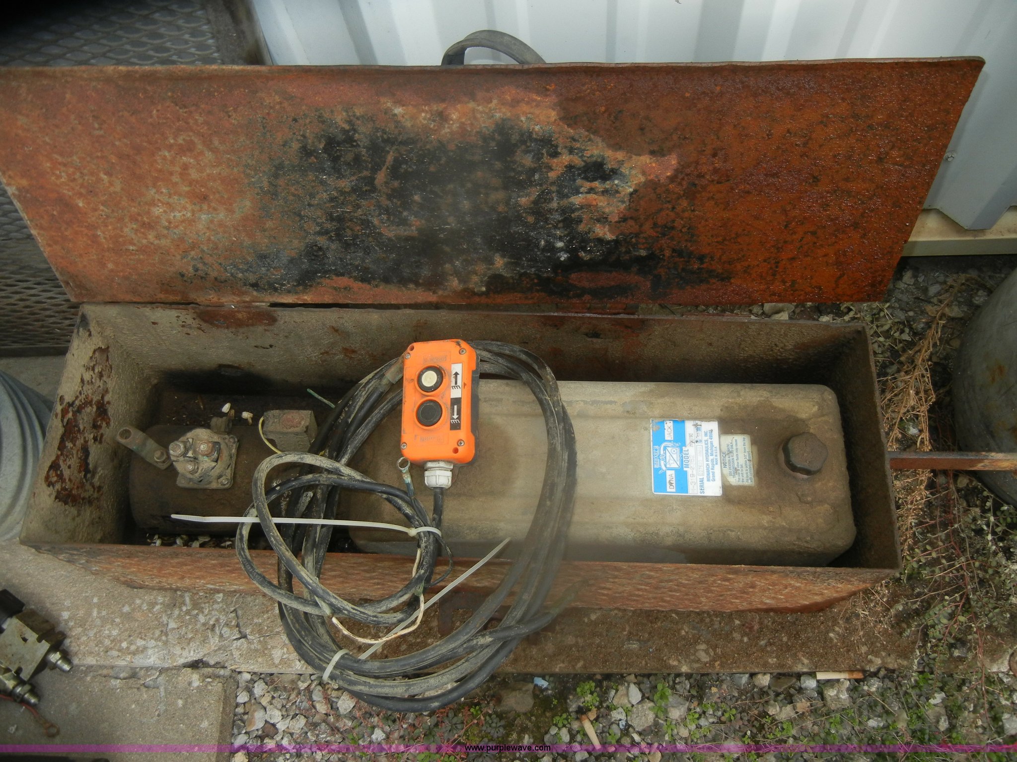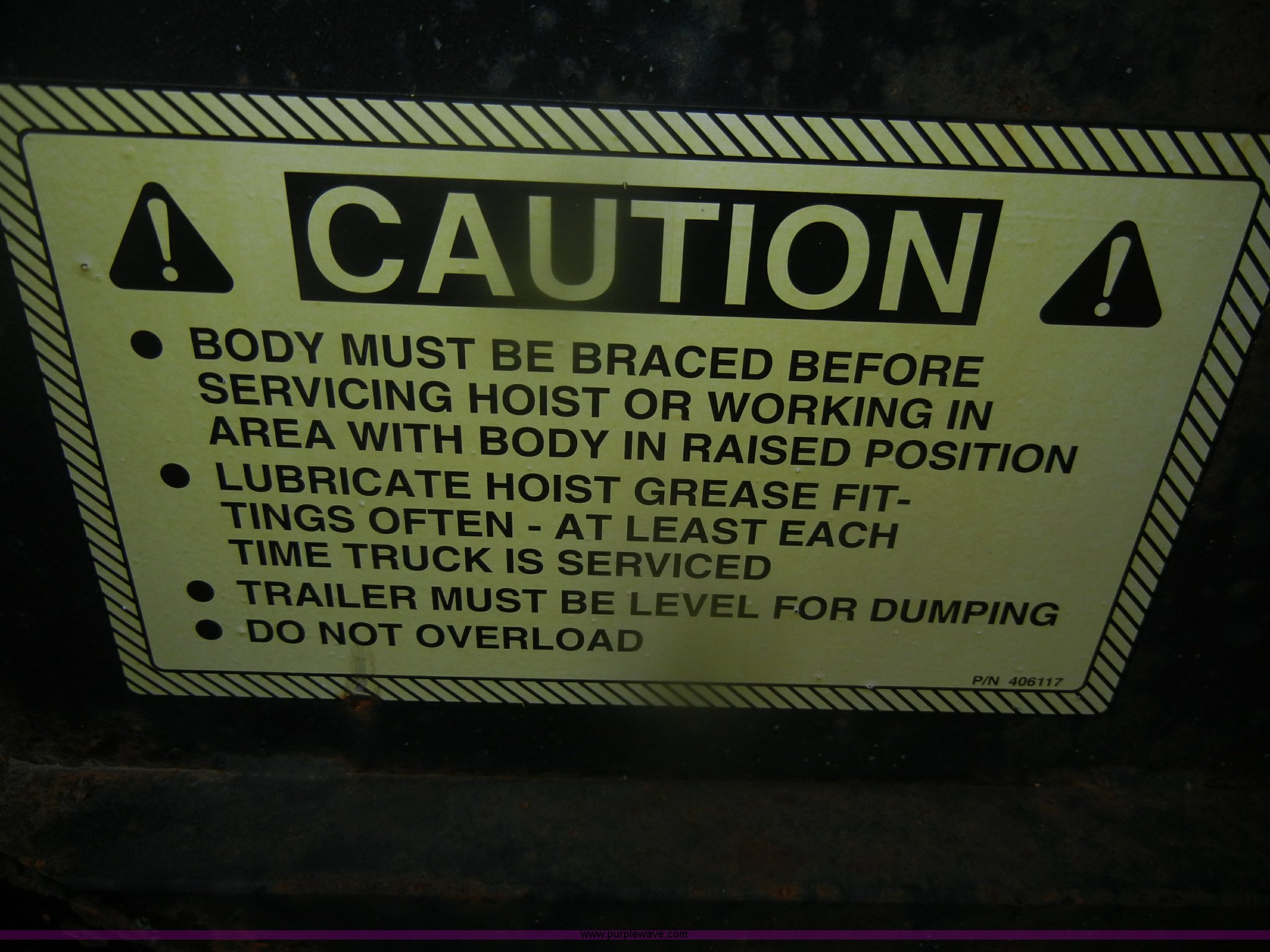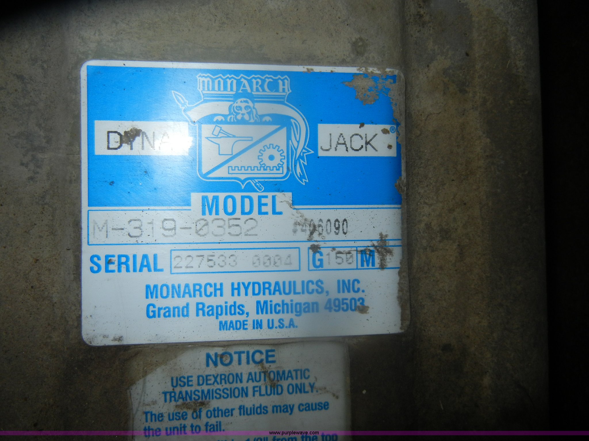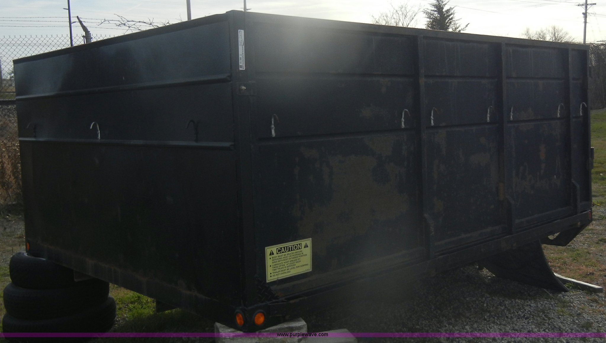 Purple Wave is selling a used Automotive Parts or Acces. in Kansas. This item is a Shop built 10' dump bed with the following: 8'W, 4'H side boards, Monarch power unit, Model M-319-0352, Remote, Colt hoist, Steel flooring, Dual swing doors, Stake pockets for rails, Receiver hitch, Trailer wiring, Angled slots for taillights