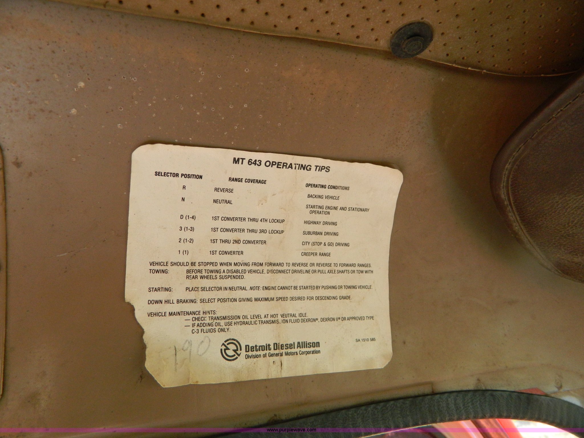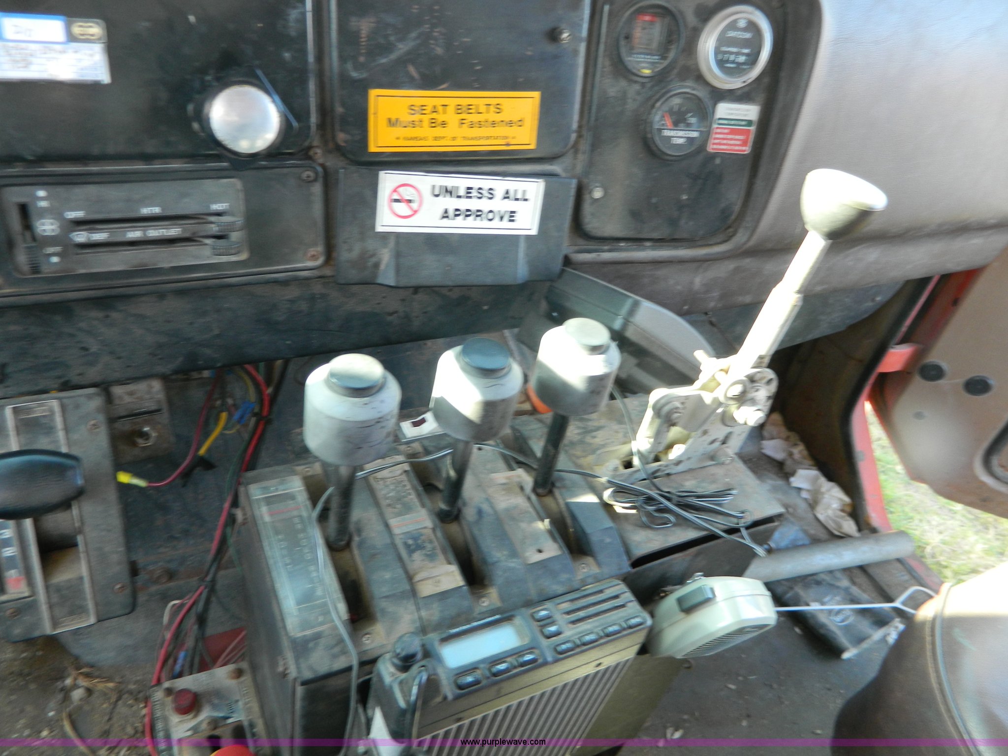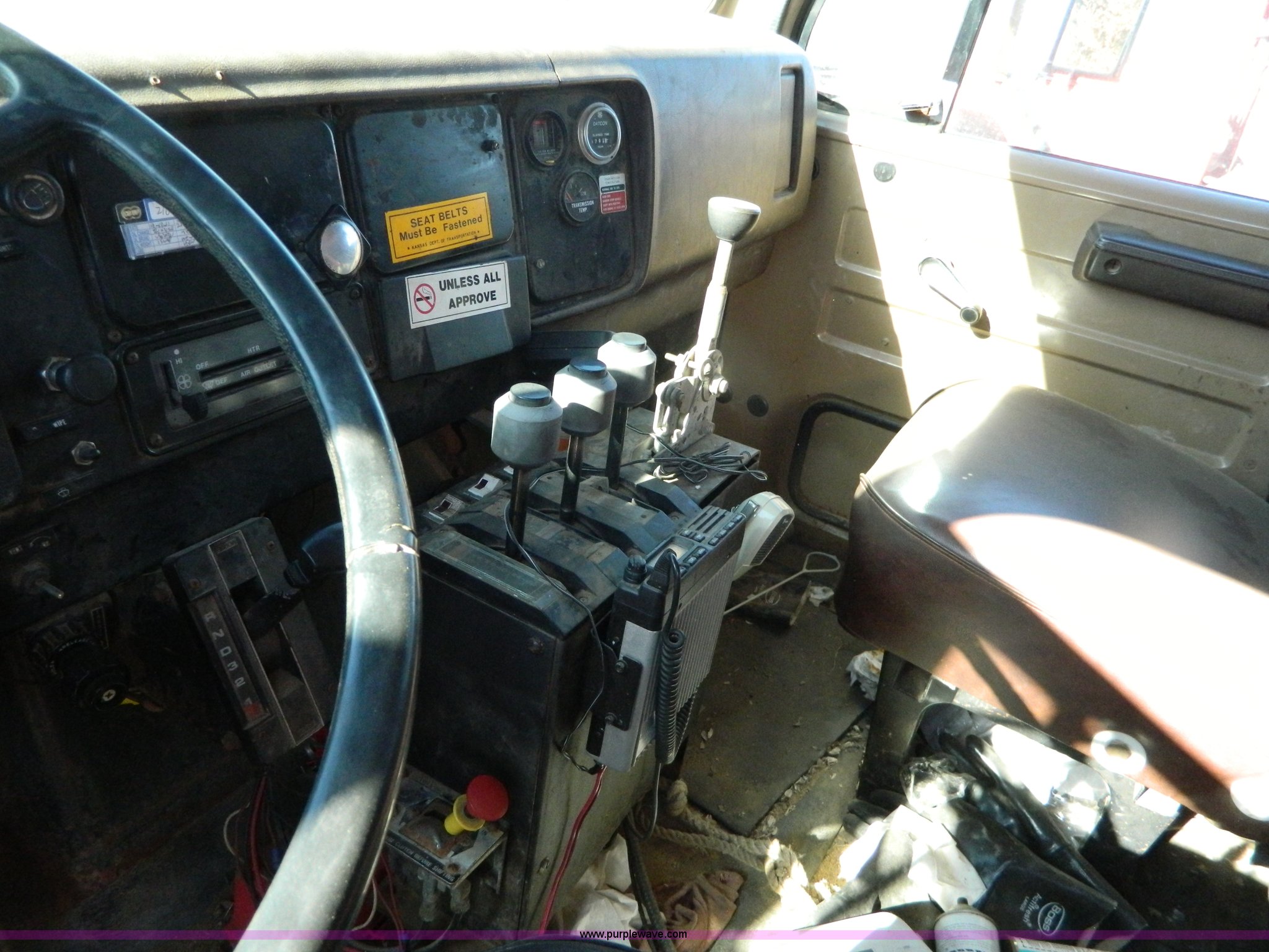 Purple Wave is selling a used Construction Dump Truck in Kansas. This item is a 1986 International S1700 dump truck with the following: 212,754 miles on odometer, 5,708 hours on meter, International DV550 9.0L V8 diesel engine, Automatic four speed transmission, Heat, Spring suspension seat, Smith 10' x 87" bed, Manual end gate, Toolboxes, Pintle hitch, Single fuel tank, Spring suspension, 10' snow plow, Swenson salt spreader, PTO, Air brakes, GVWR 35,000 lbs, Interior/exterior cosmetic damage, Rust, Exhaust manifold rusted out, Contents not included
