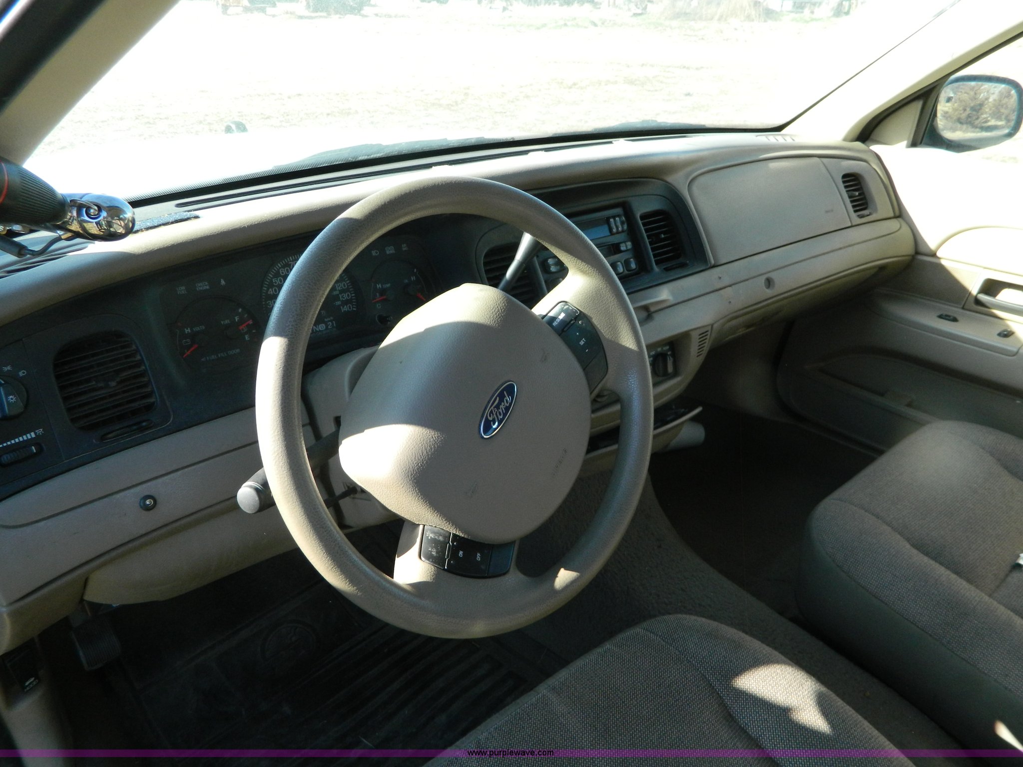 Purple Wave is selling a used Passenger Vehicle in Kansas. This item is a 2005 Ford Crown Victoria Police Interceptor with the following: 143,764 miles on odometer, 4.6L V8 EFI gas engine, Automatic transmission, AC and heat, Tilt, Cruise, AM/FM/cassette, Power windows, locks, mirrors, and seats, Cloth interior, P225/60R16 tires, Interior/exterior cosmetic damage, Roof plugs, Rear mirror missing