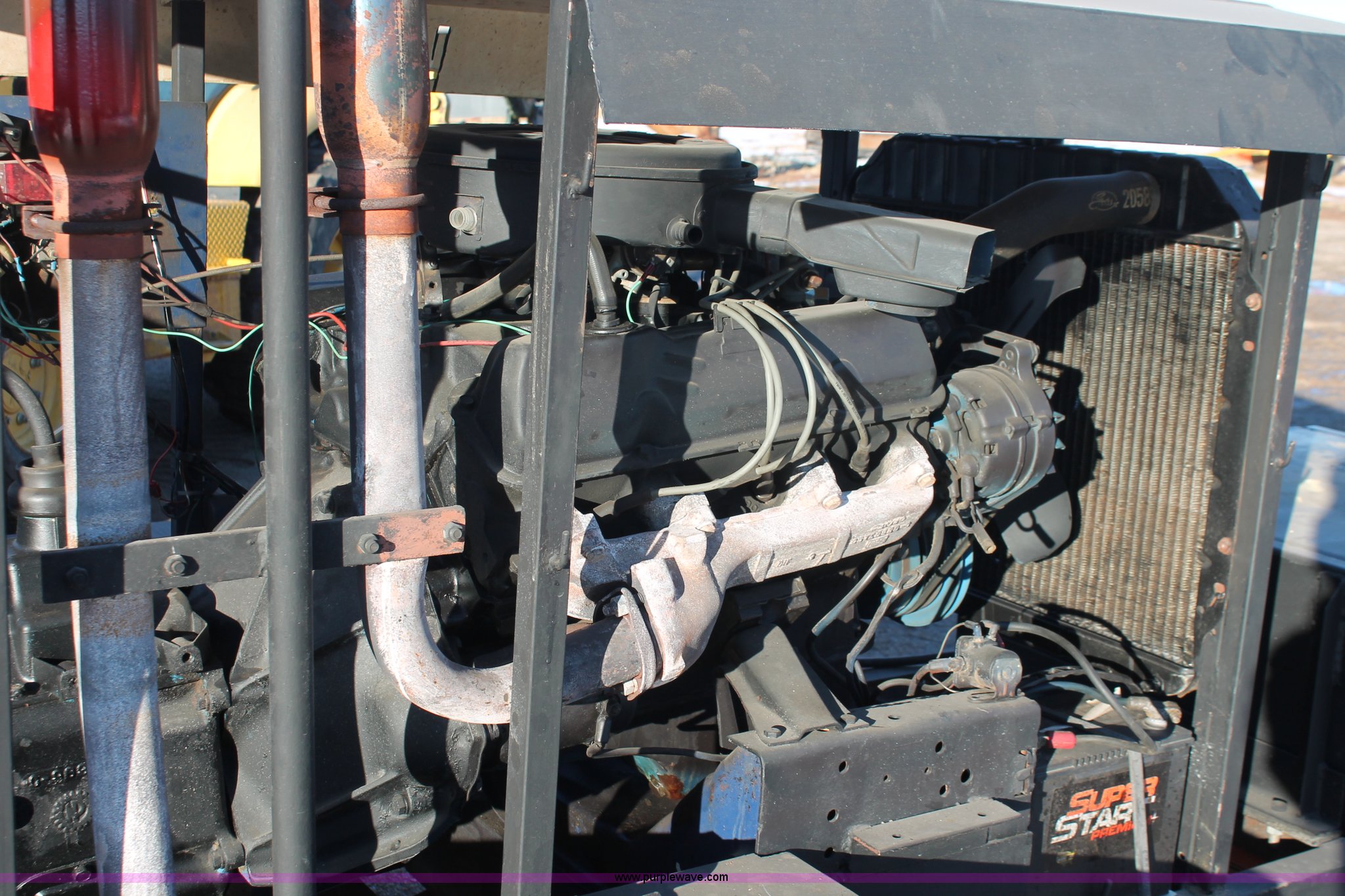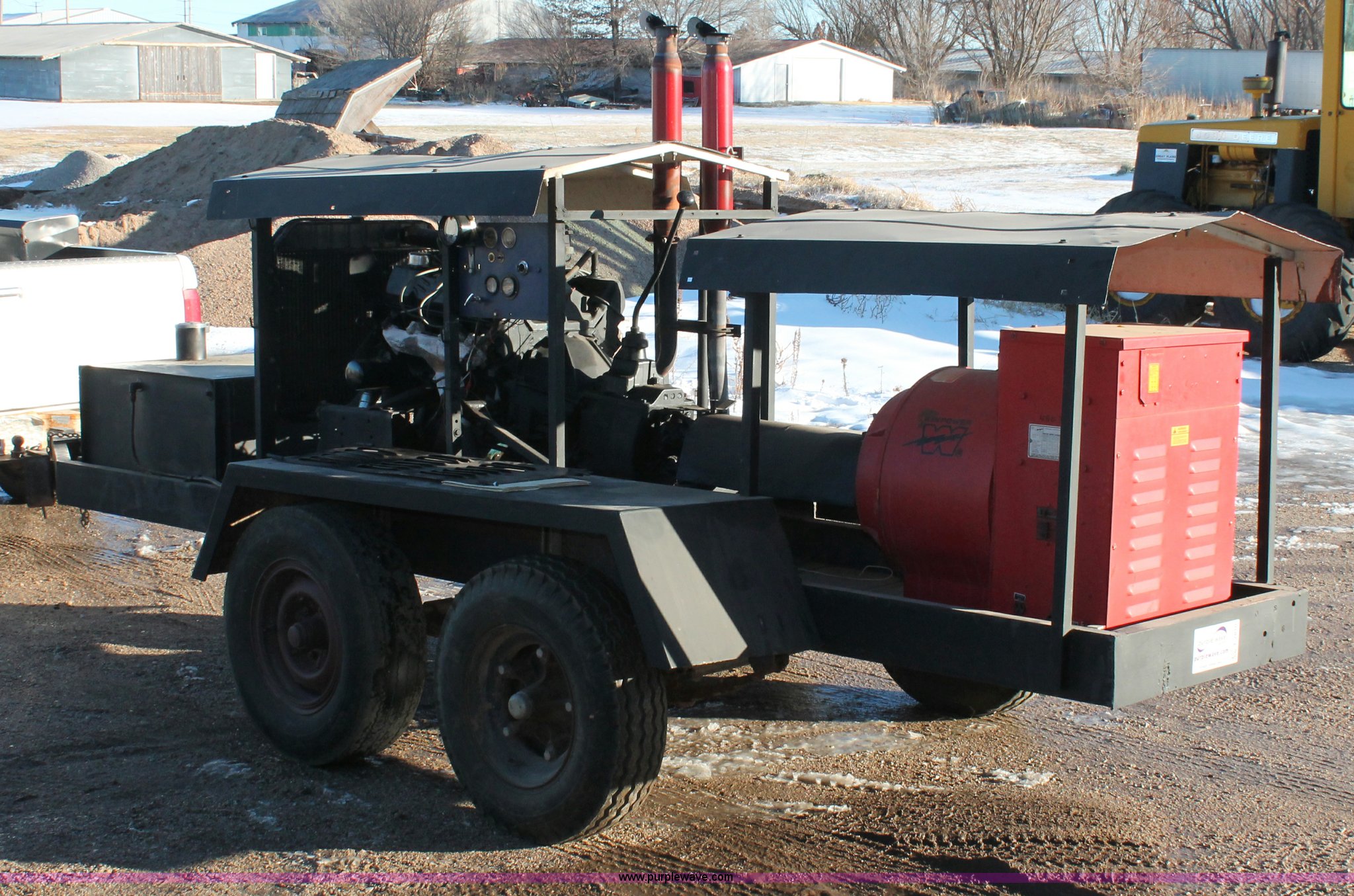 Winpower 100/60 PTJM generator. 469 hours on meter, Ford 391 CID V8 gas engine, 60 kW, 480 volts, Three phase, 40 gallon fuel tank, Pin hitch, Assorted tires, Maintenance records available, Serial M0-5571-6. Shipping quotes available. City of Buhler. 222 1/2 Regier St S. Buhler, KS 67522