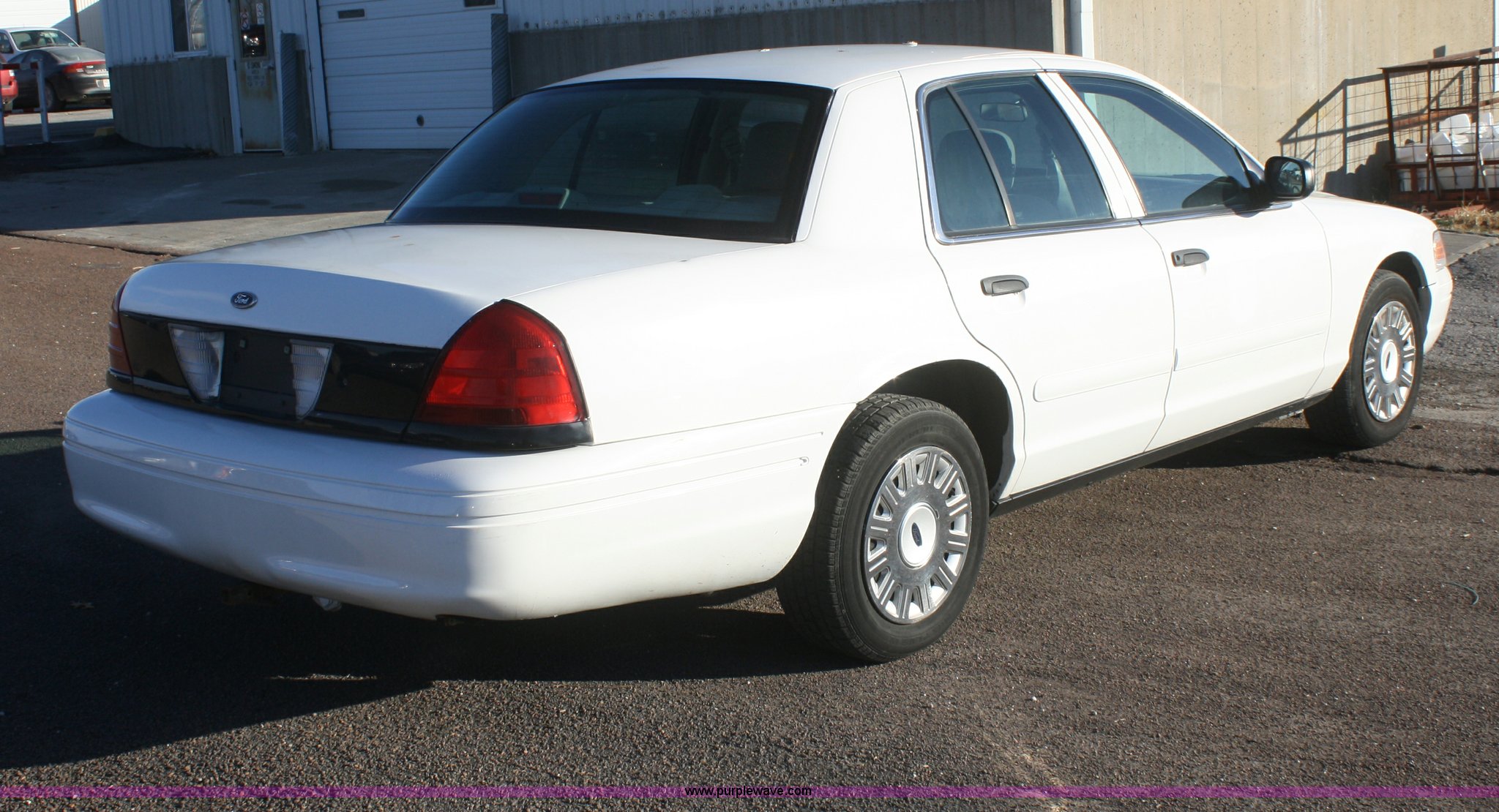 Purple Wave is selling a used Passenger Vehicle in Kansas. This item is a 2004 Ford Crown Victoria Police Interceptor with the following: 115,574 miles on odometer, 4.6L V8 EFI gas engine, Automatic transmission, AC and heat, Tilt, Cruise, AM/FM, Power windows, locks, mirrors, and seats, Cloth interior, Spotlight, 225/60R16 tires