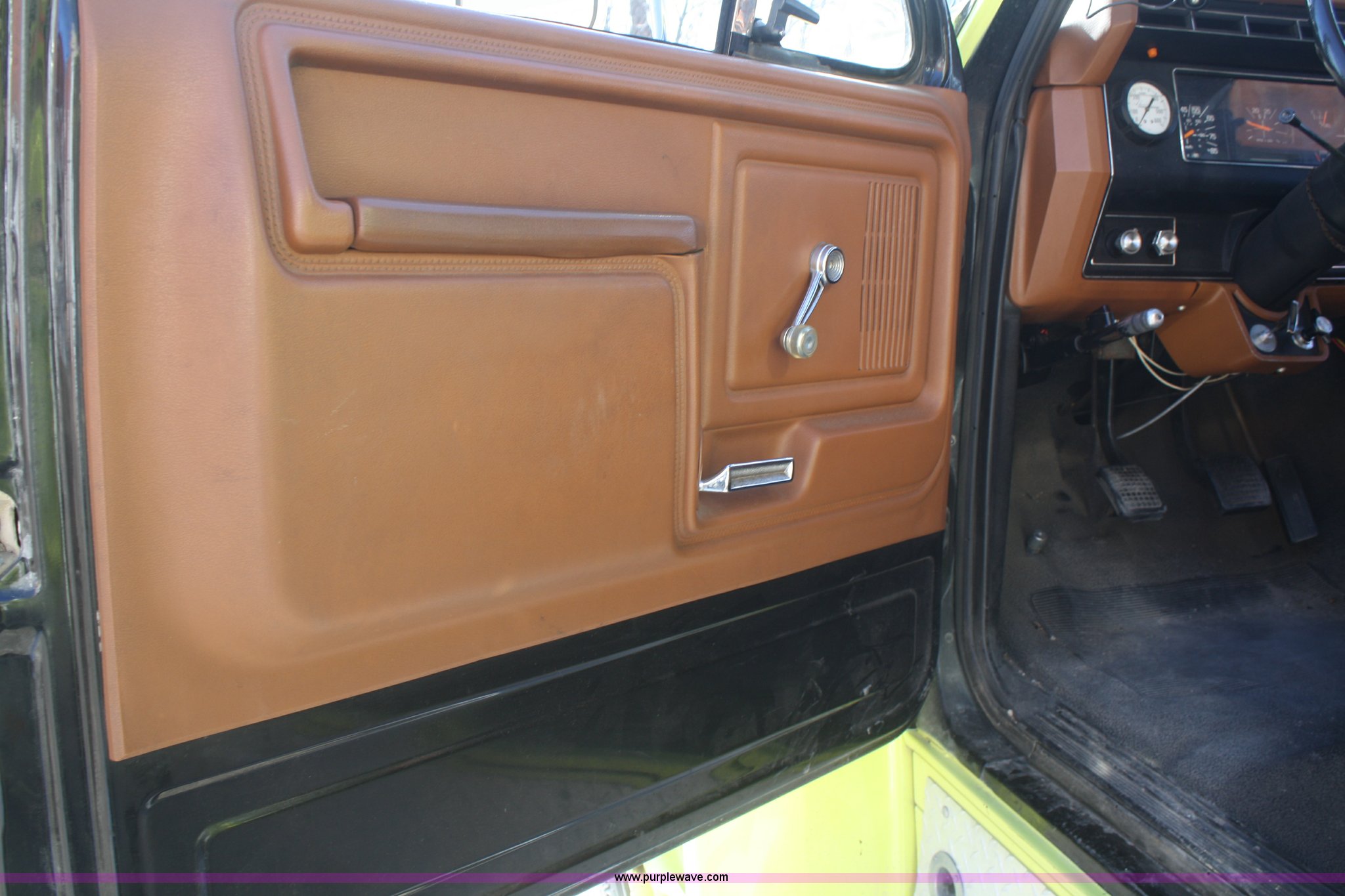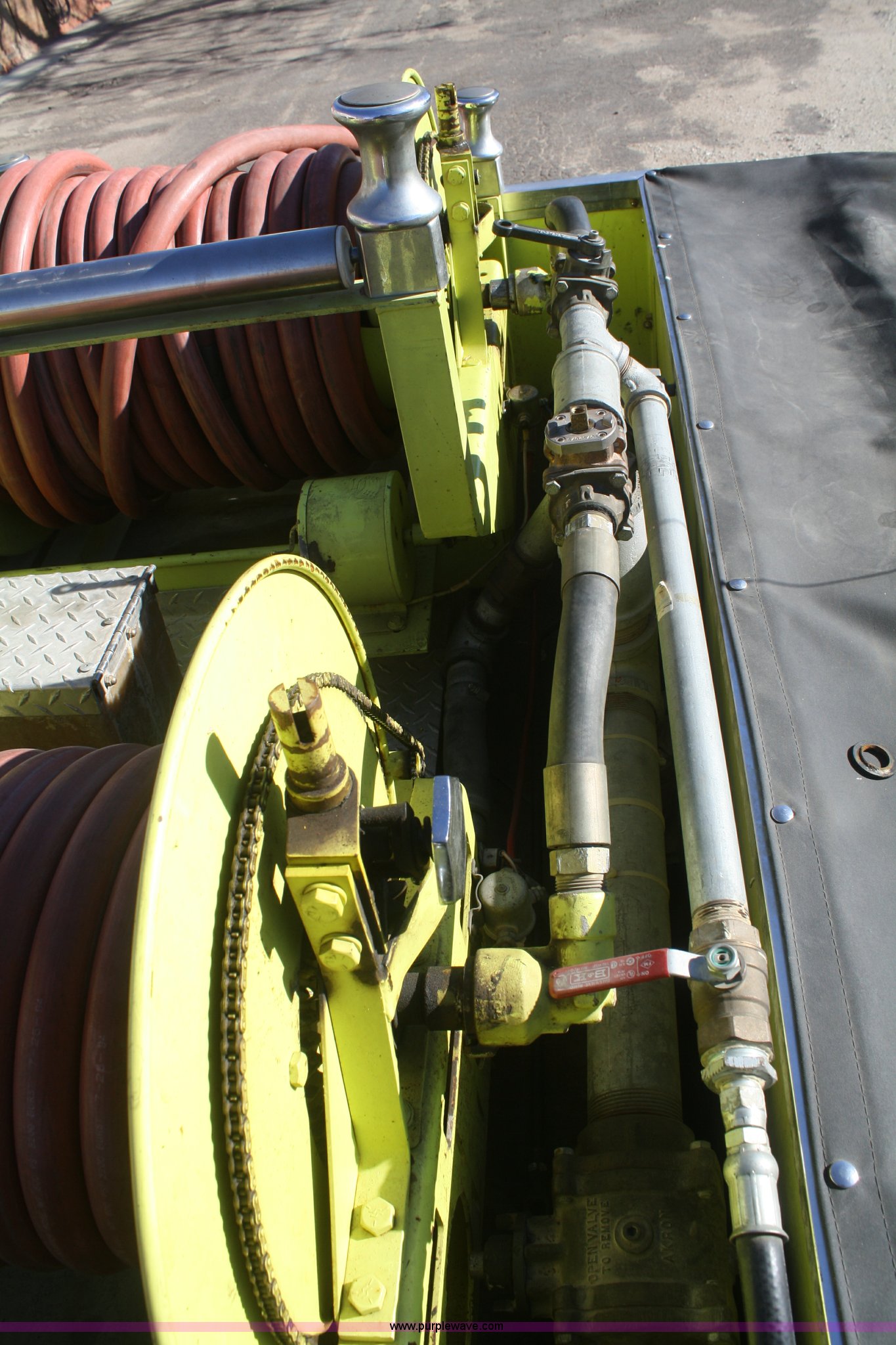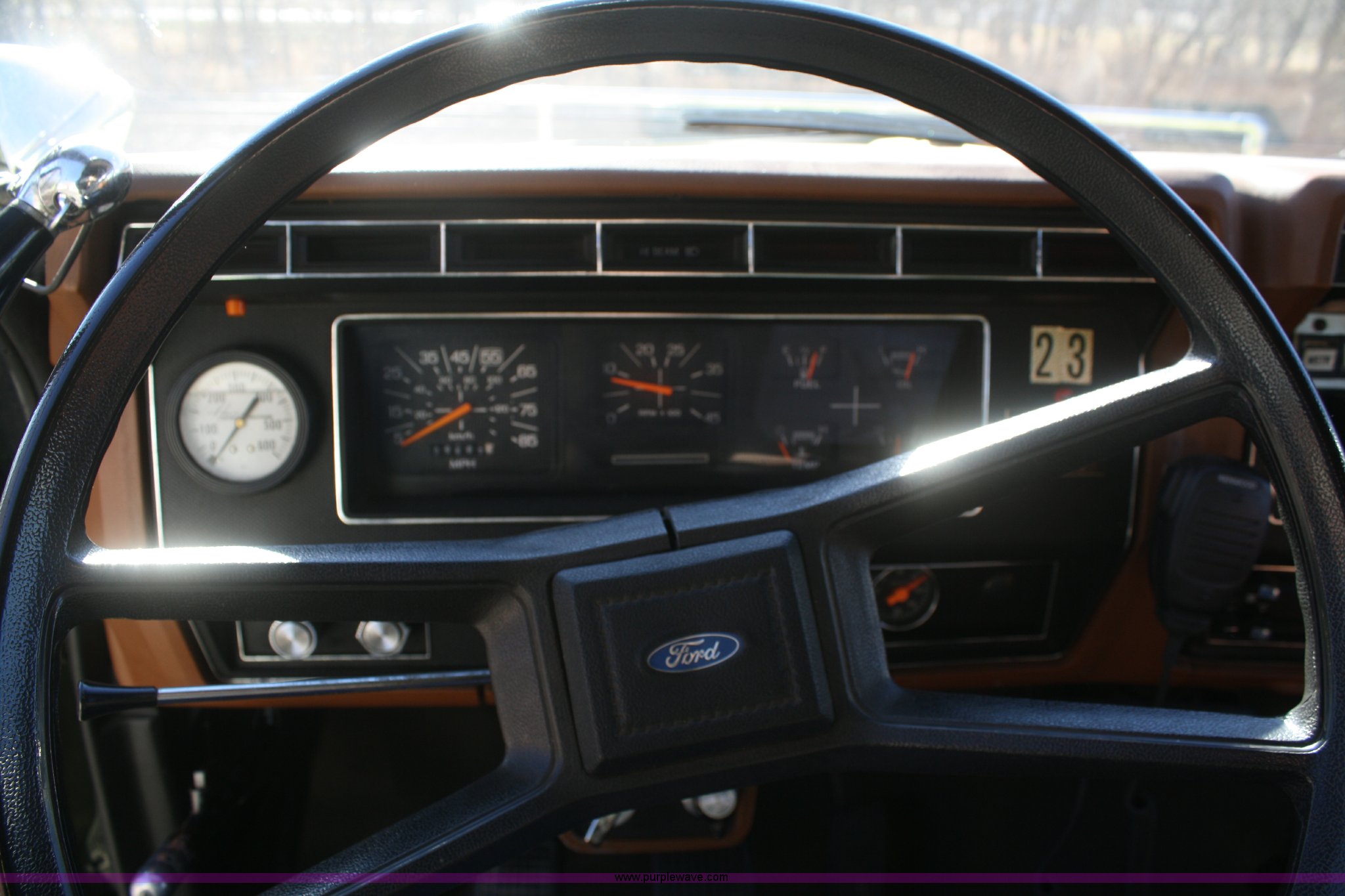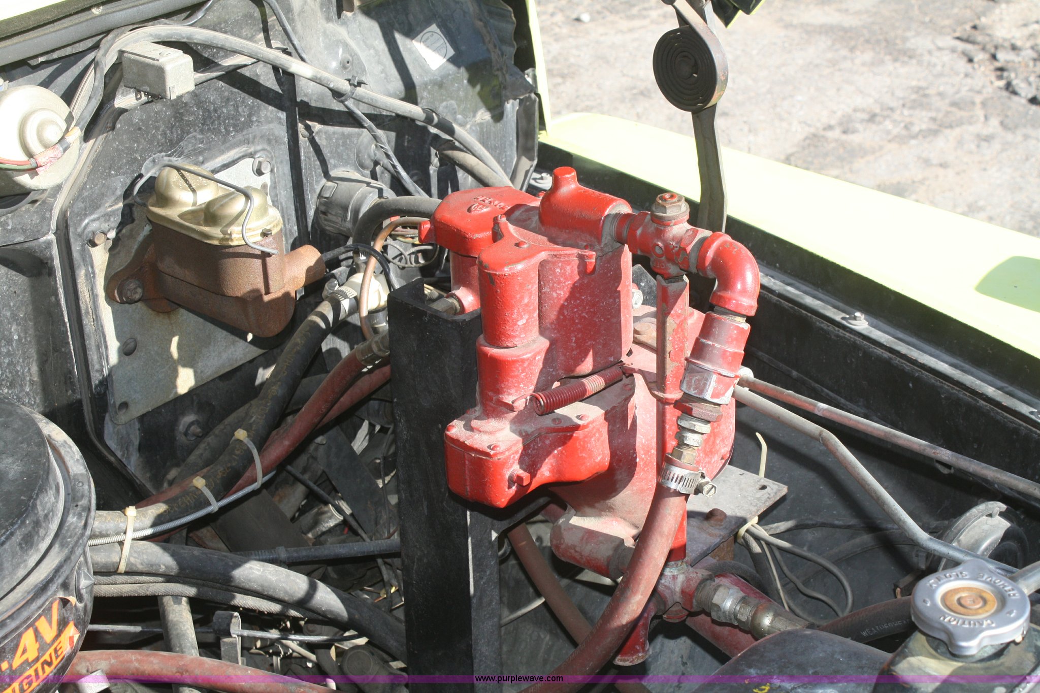 Purple Wave is selling a used Fire Truck or Emergency Vehicle in Kansas. This item is a 1981 Ford F700 firetruck with the following: 9,682 miles on odometer, Miles may vary, Will be in service until the end of the year, 7.0L V8 gas engine, Five speed manual transmission, Two speed axle, Heat, Manual windows and locks, Spotlight, 50 gallon fuel tank, American pump, 750 gpm, 157 hours on meter, Hose reels with hose included, (2) hard hose sections, Ladders, One section of hydrant hose, Extension roof ladder, Hose covers, Light bar included, 700 gallon tank, 10.00-20 tires, GVWR 27,500 lbs, Valve on front of pump not included, Radio not included