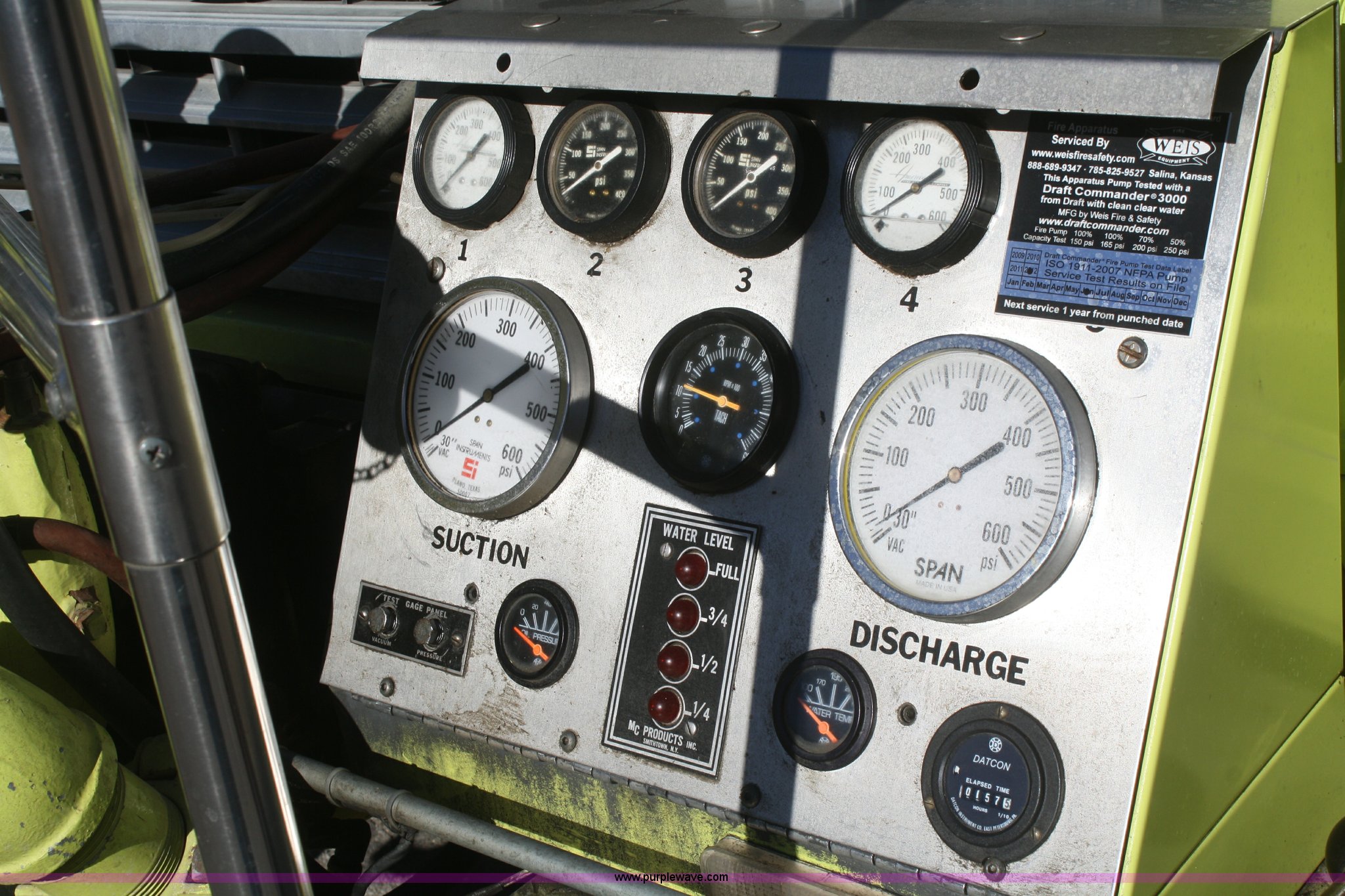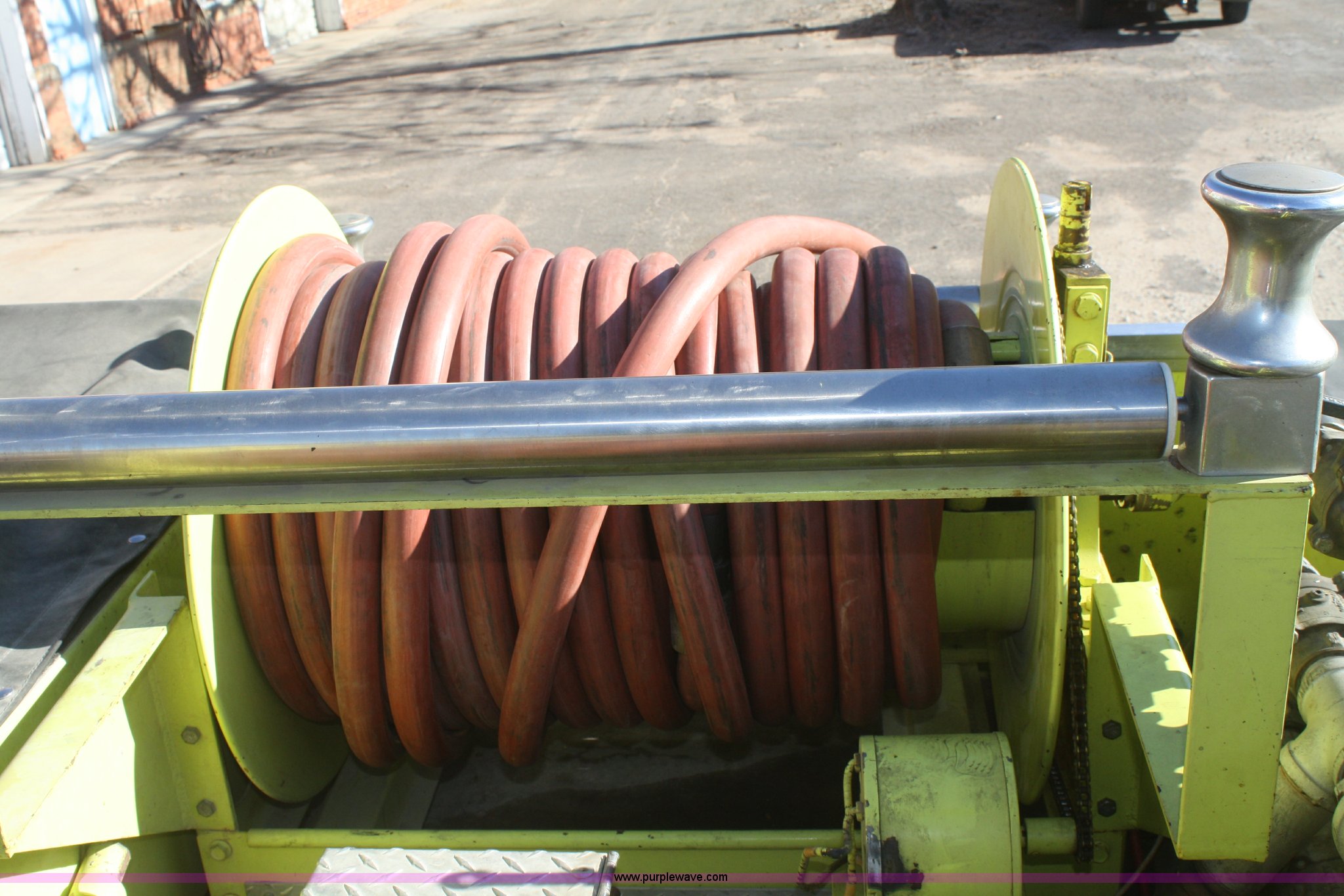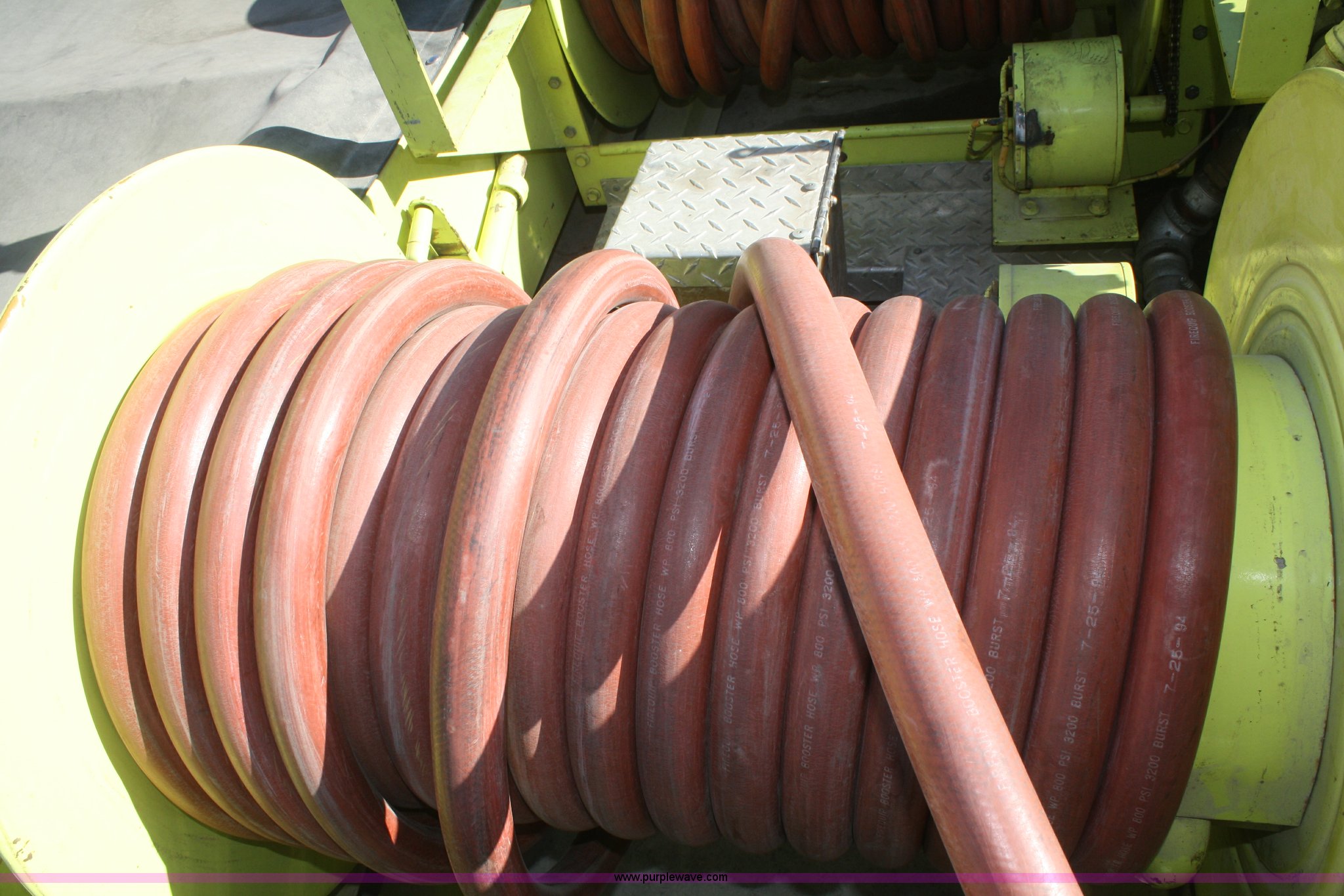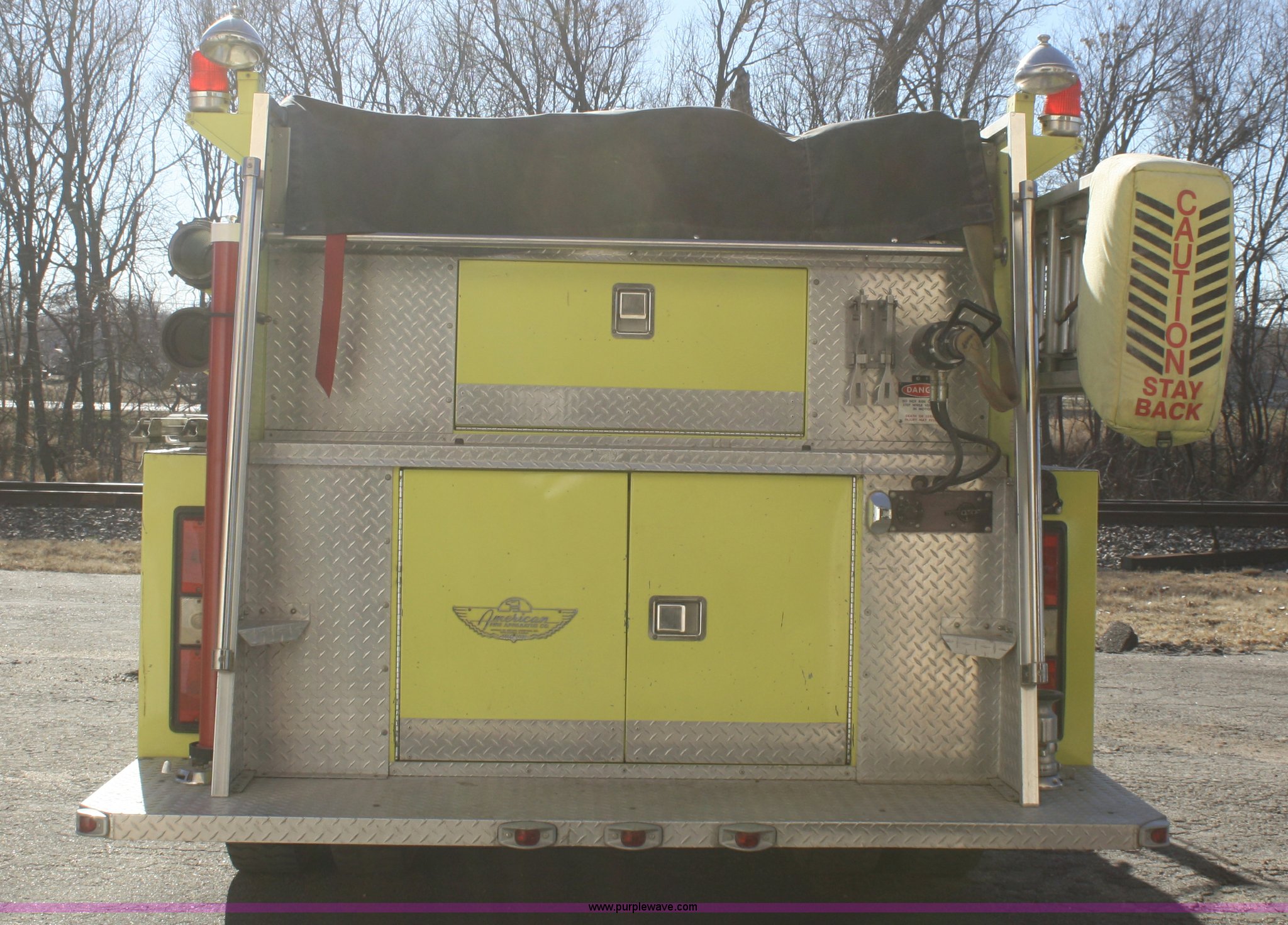 Purple Wave is selling a used Fire Truck or Emergency Vehicle in Kansas. This item is a 1981 Ford F700 firetruck with the following: 9,682 miles on odometer, Miles may vary, Will be in service until the end of the year, 7.0L V8 gas engine, Five speed manual transmission, Two speed axle, Heat, Manual windows and locks, Spotlight, 50 gallon fuel tank, American pump, 750 gpm, 157 hours on meter, Hose reels with hose included, (2) hard hose sections, Ladders, One section of hydrant hose, Extension roof ladder, Hose covers, Light bar included, 700 gallon tank, 10.00-20 tires, GVWR 27,500 lbs, Valve on front of pump not included, Radio not included
