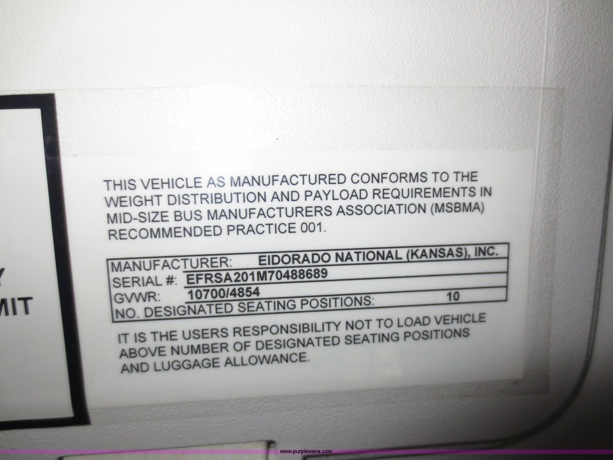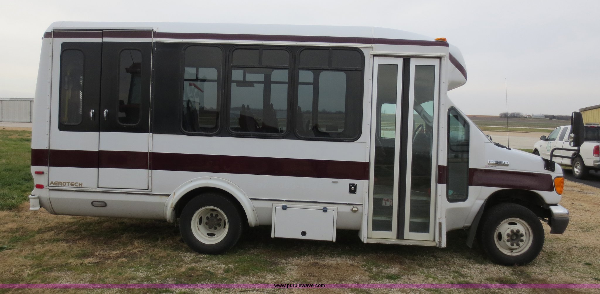 Purple Wave is selling a used Bus in Kansas. This item is a 2007 Ford Econoline E350 Super Duty bus with the following: 112,450 miles on odometer, 10 passenger, 6.7L V10 gas engine, Automatic transmission, AC and heat, Front and rear controls, AM/FM/CD, Power drivers seat, Fast idle controls, Non-skid floor, Wheelchair lift, Passenger step entry door, Aerotech body, LT225/75R16 tires, GVWR 10,700 lbs, FAWR 4,600 lbs, RAWR 7,800 lbs