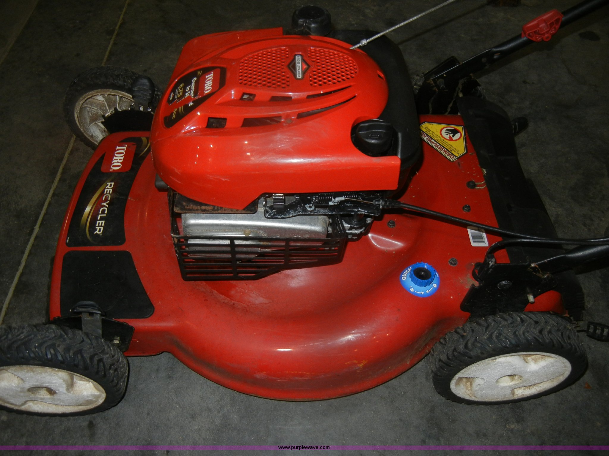 Purple Wave is selling a used Lawn and Garden in Kansas. This item is a (2) Toro push mowers with the following: SR4 Super Recycler, 22" cut, Briggs & Stratton engine, Self-propelled, Crank shaft bent, Operational, Recycler, 22" cut, Briggs & Stratton 6.75 HP engine, Self-propelled, Operational