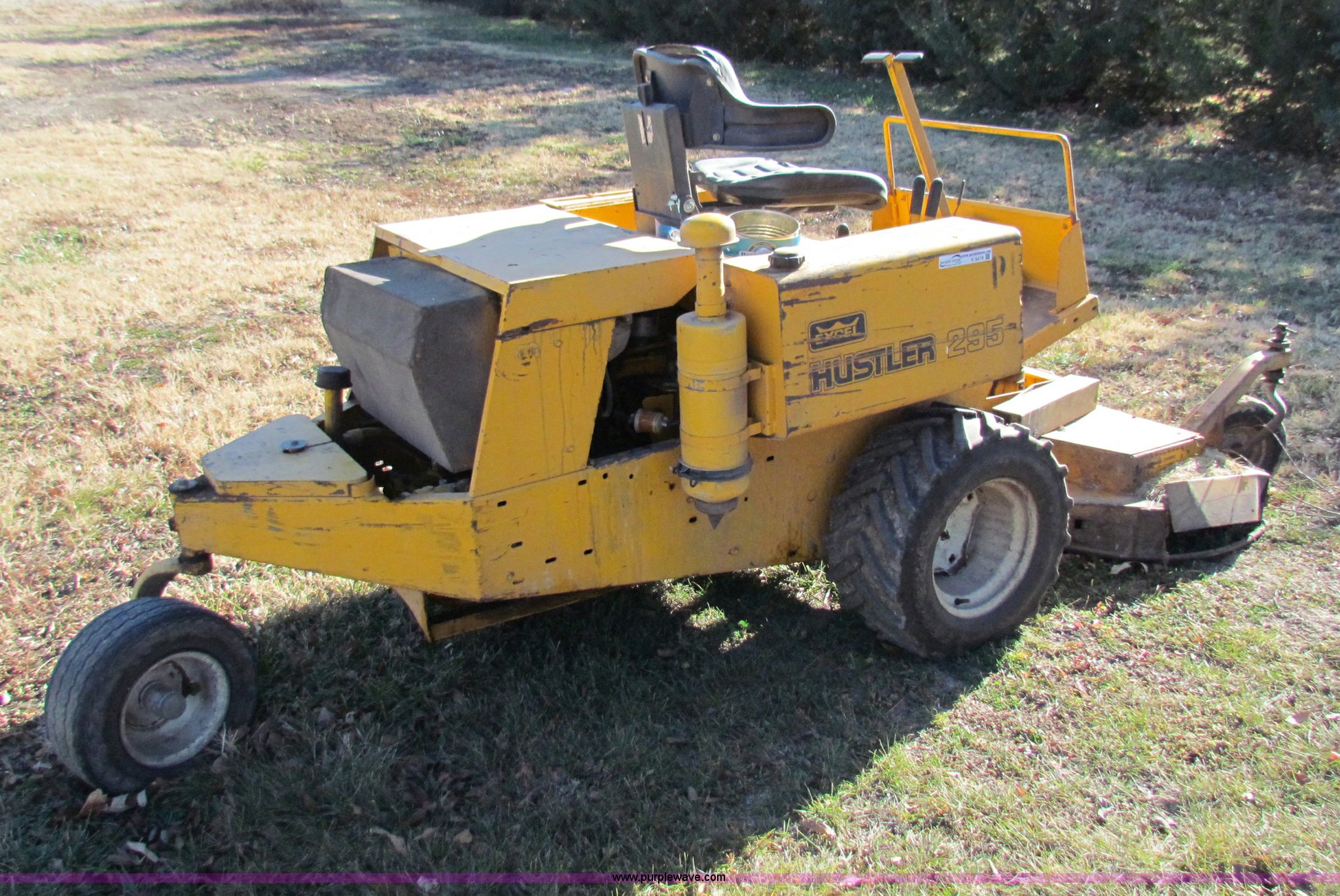 Purple Wave is selling a used Lawn and Garden in Kansas. This item is a Hustler 295 ZTR lawn mower with the following: Model 922427, 60" cut, 2,264 hours on meter, Two cylinder water cooled engine, Hydrostatic transmission, Shaft drive deck, 23 x 10.50-14 drive tires, 16.5 x 6.5-8 rear tires, 13.5 x 6 front deck tires, Will not stay running, Drive motor seal leaks, Serial 6451573