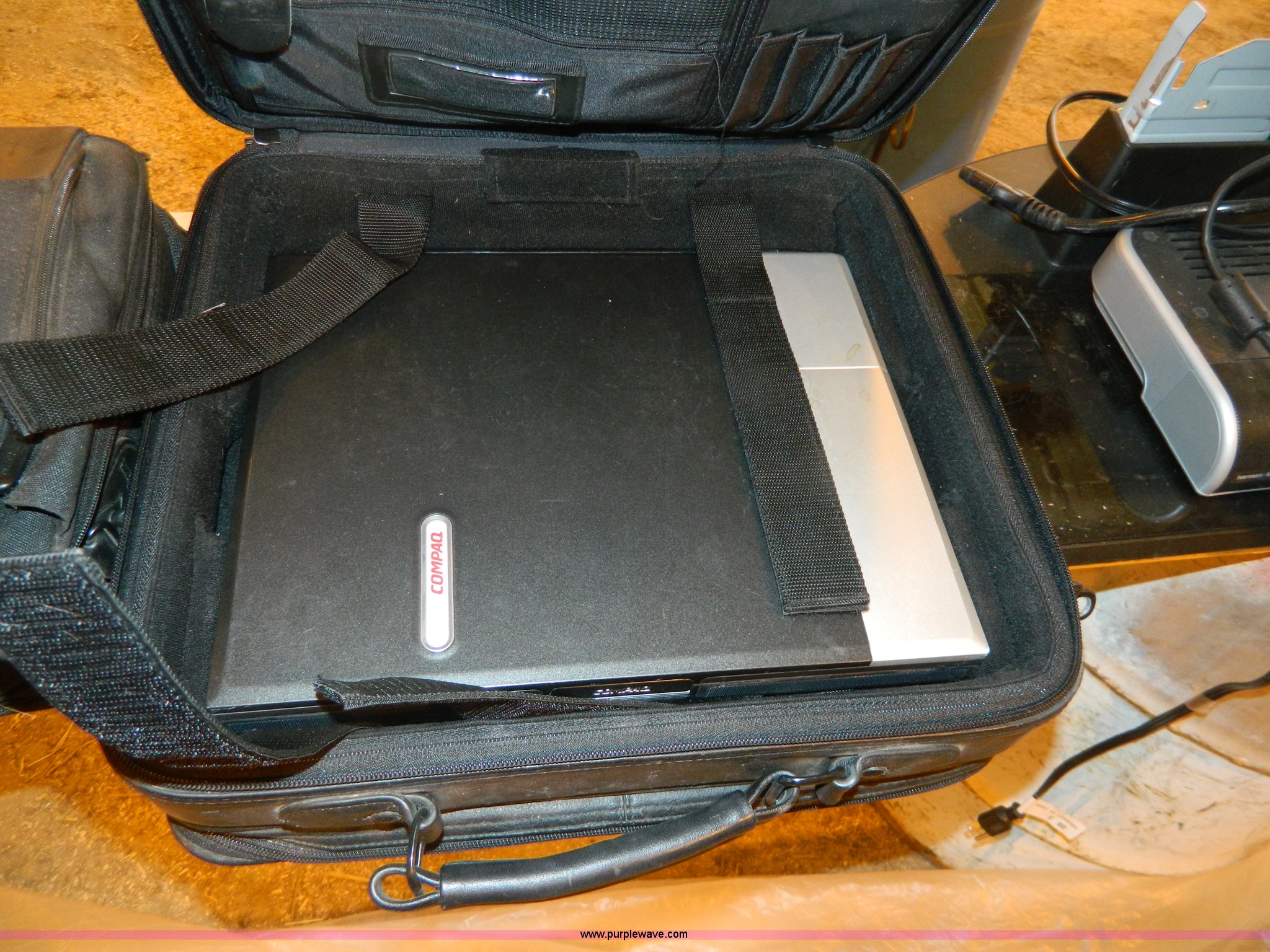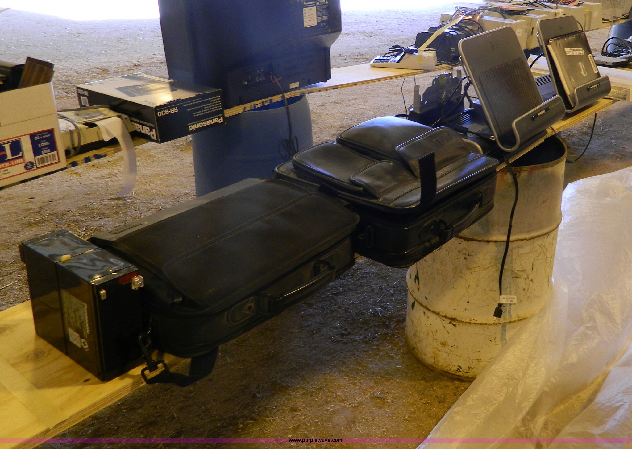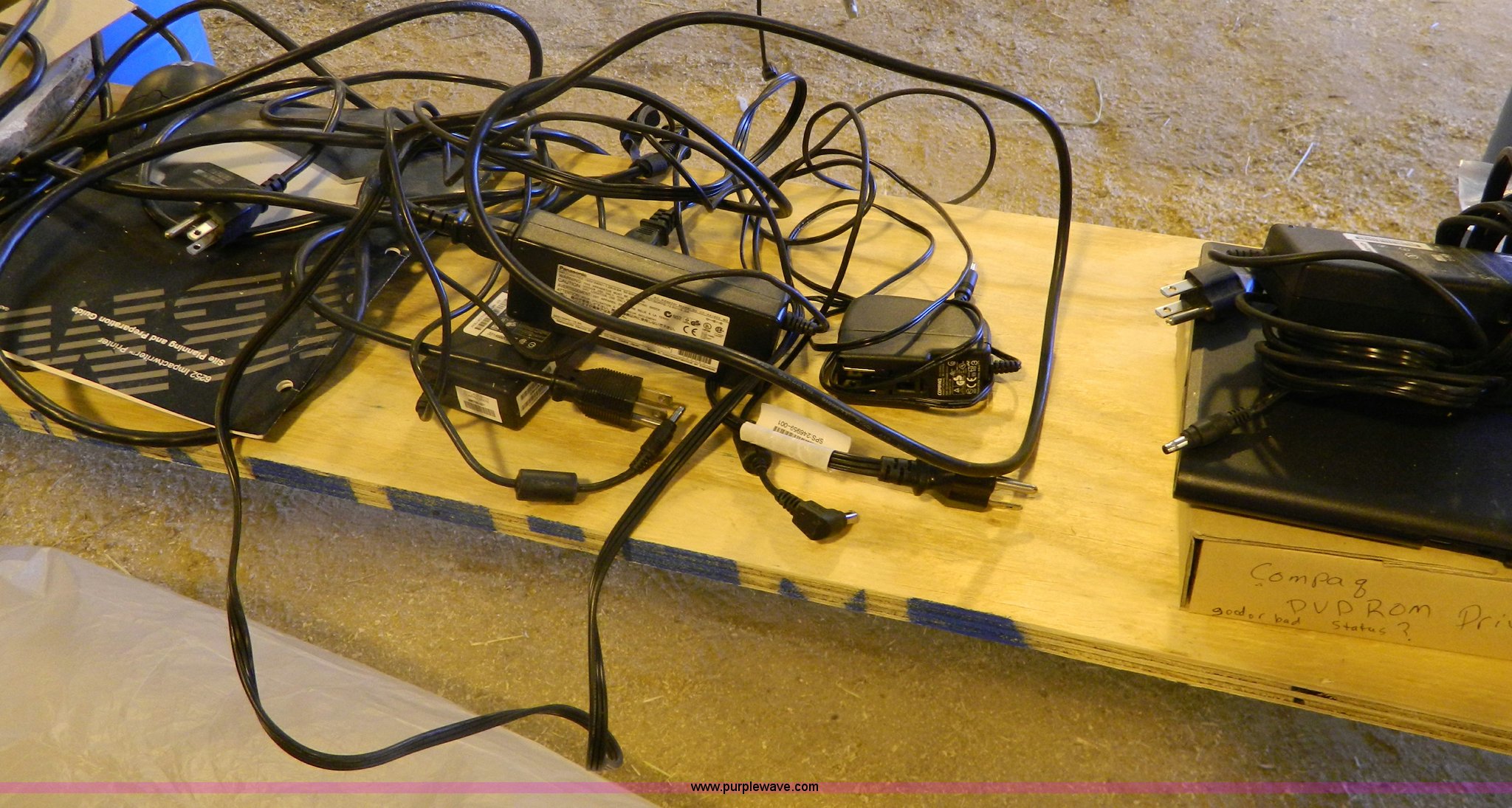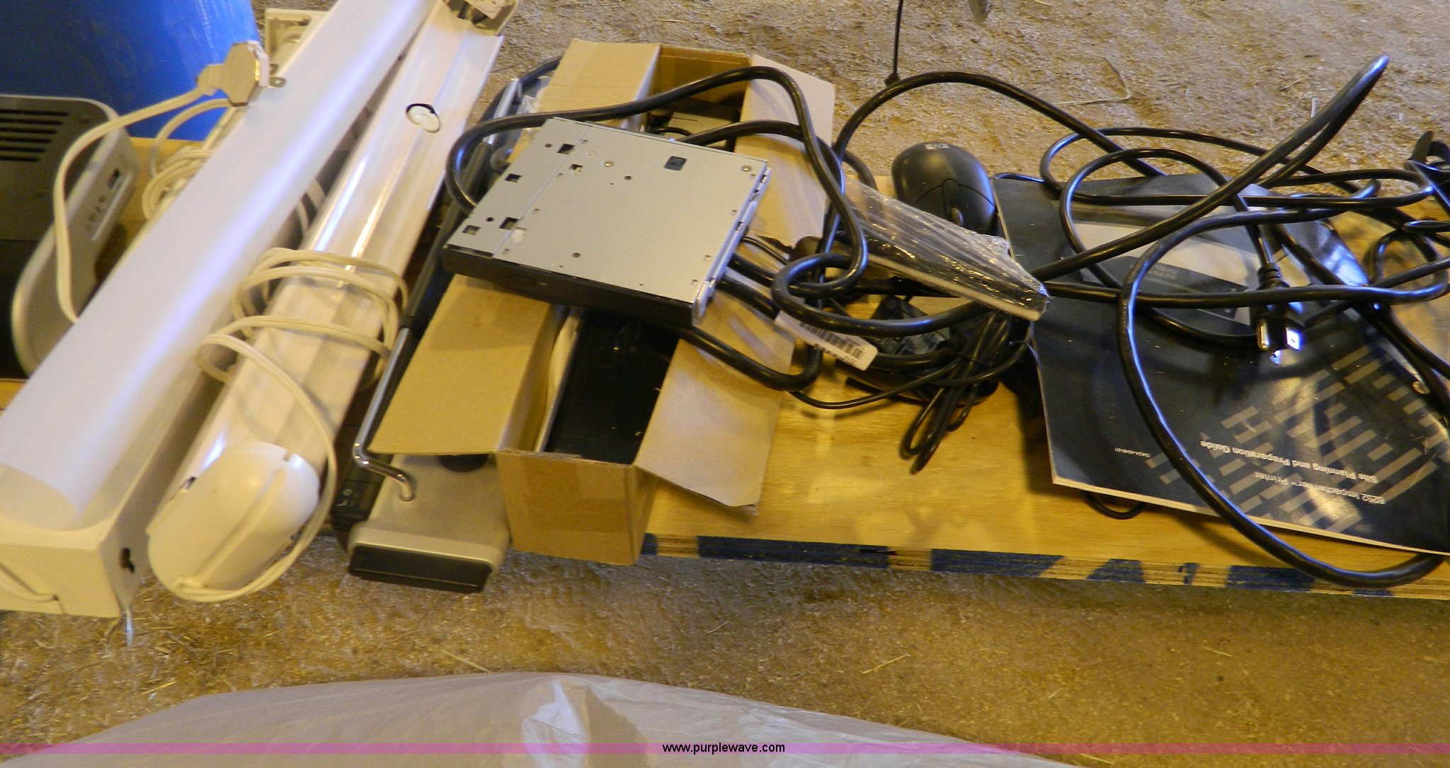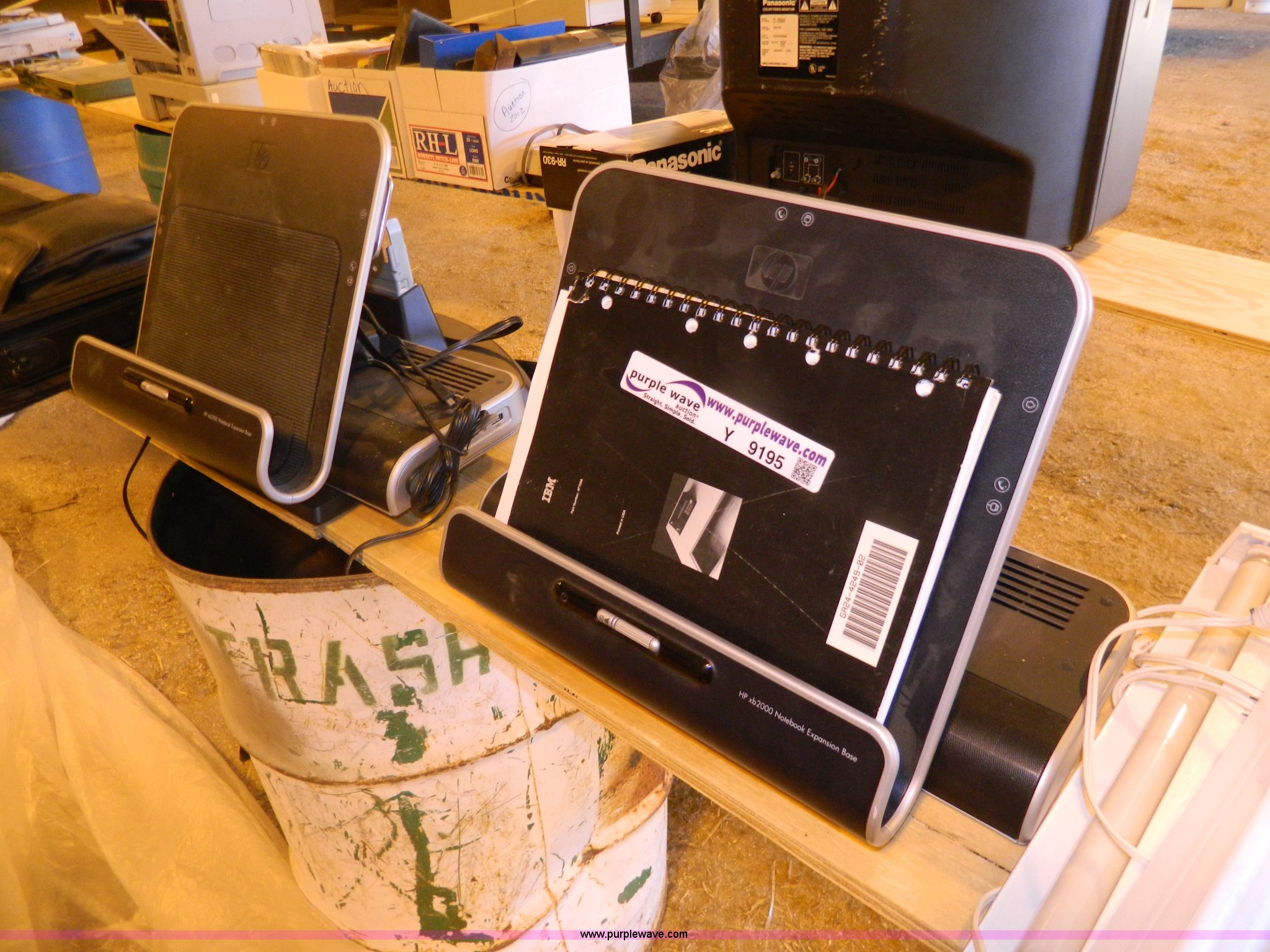 Purple Wave is selling a used Electronics in Kansas. This item is a Assorted computer supplies with the following: (2) laptop computers, Light fixtures, Docking stations