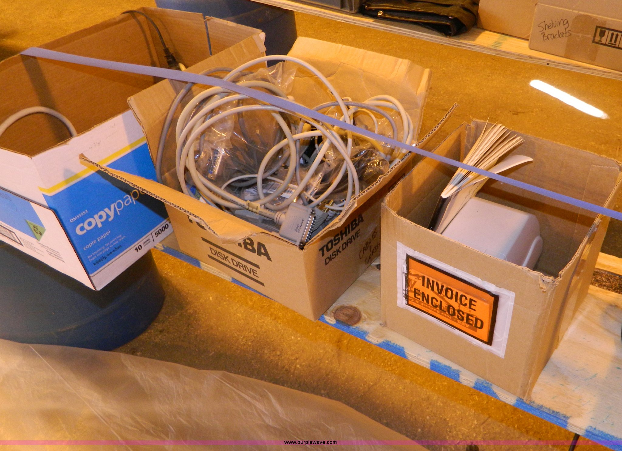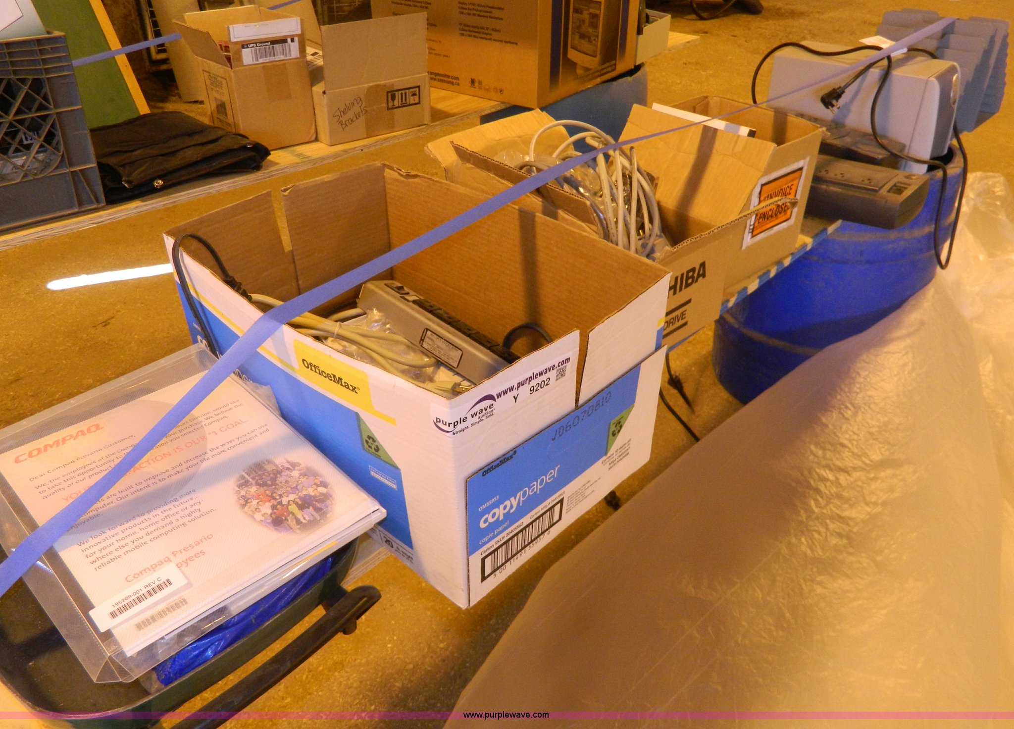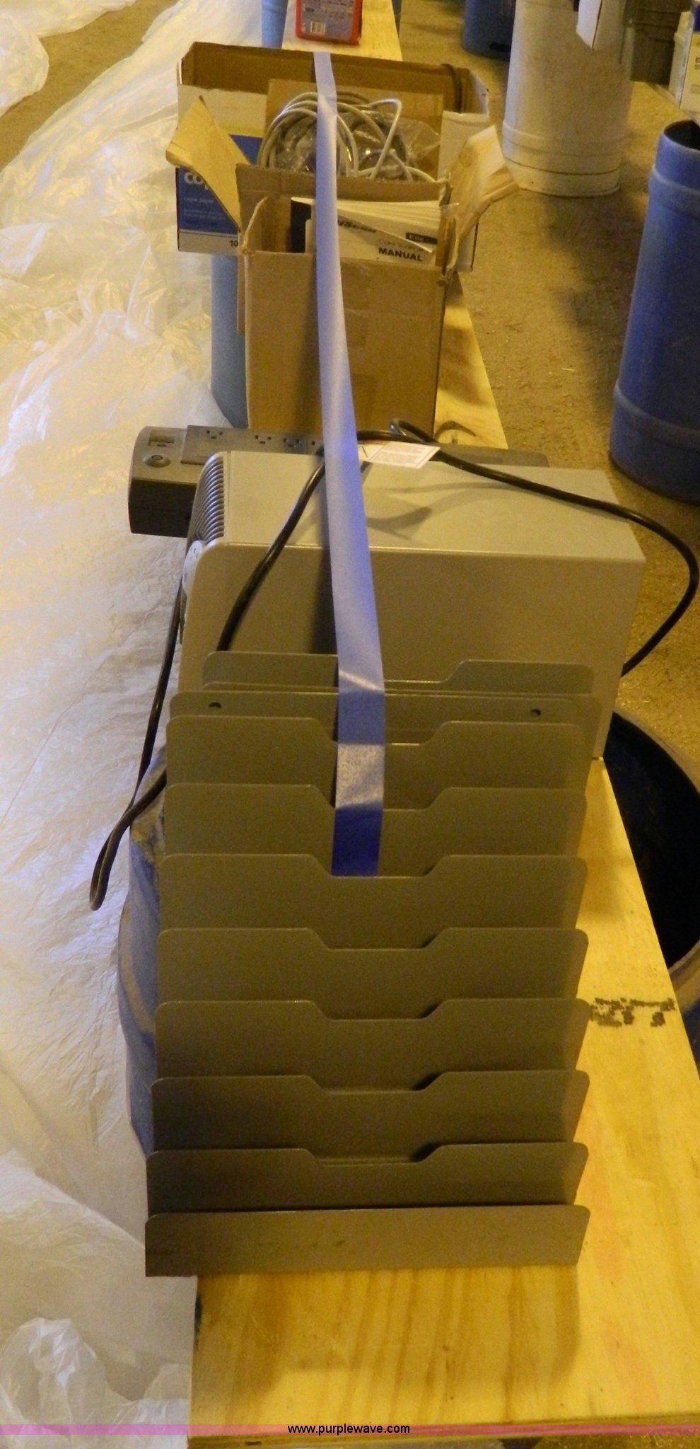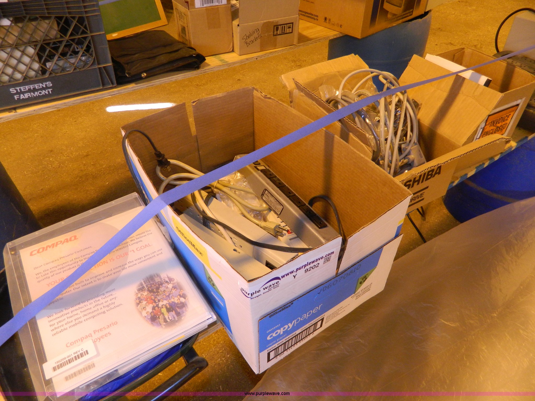 Purple Wave is selling a used Office Supplies and Equip. in Kansas. This item is a Assorted office supplies with the following: Multi-Power ports, Computer cables, File indexes, HP T7000 supply