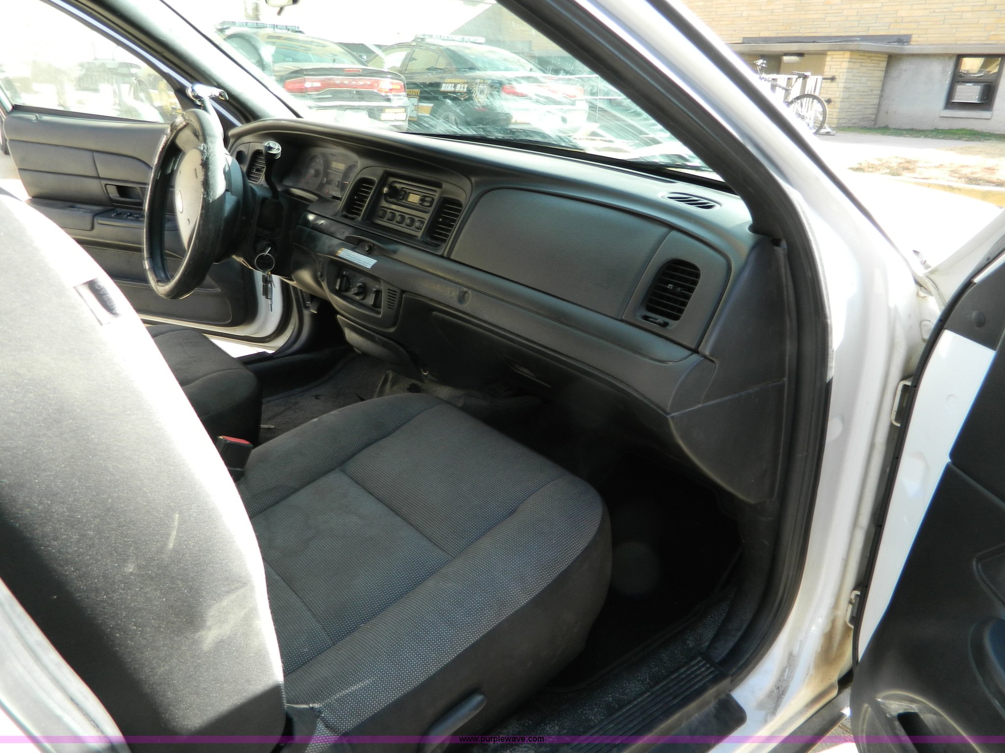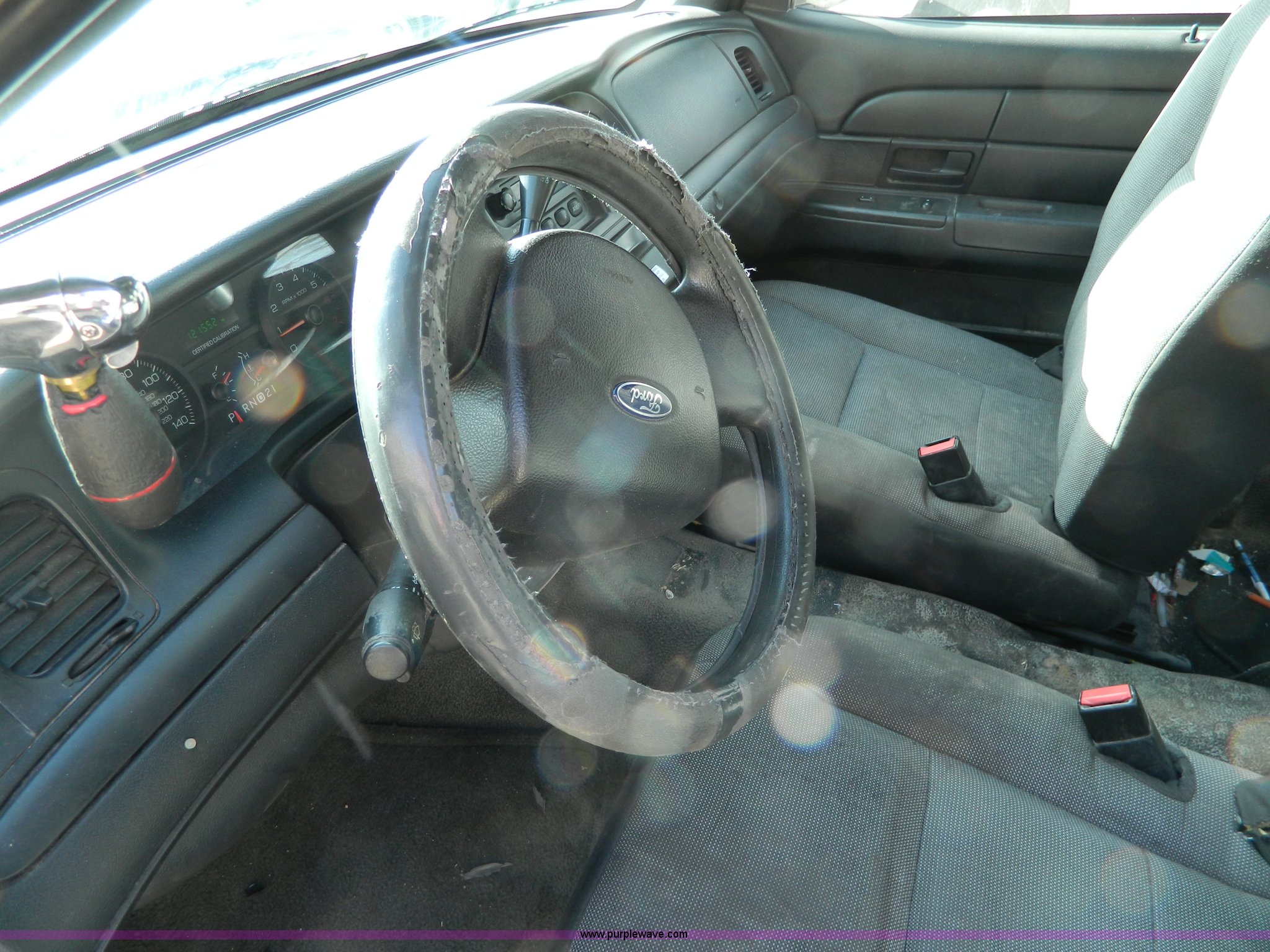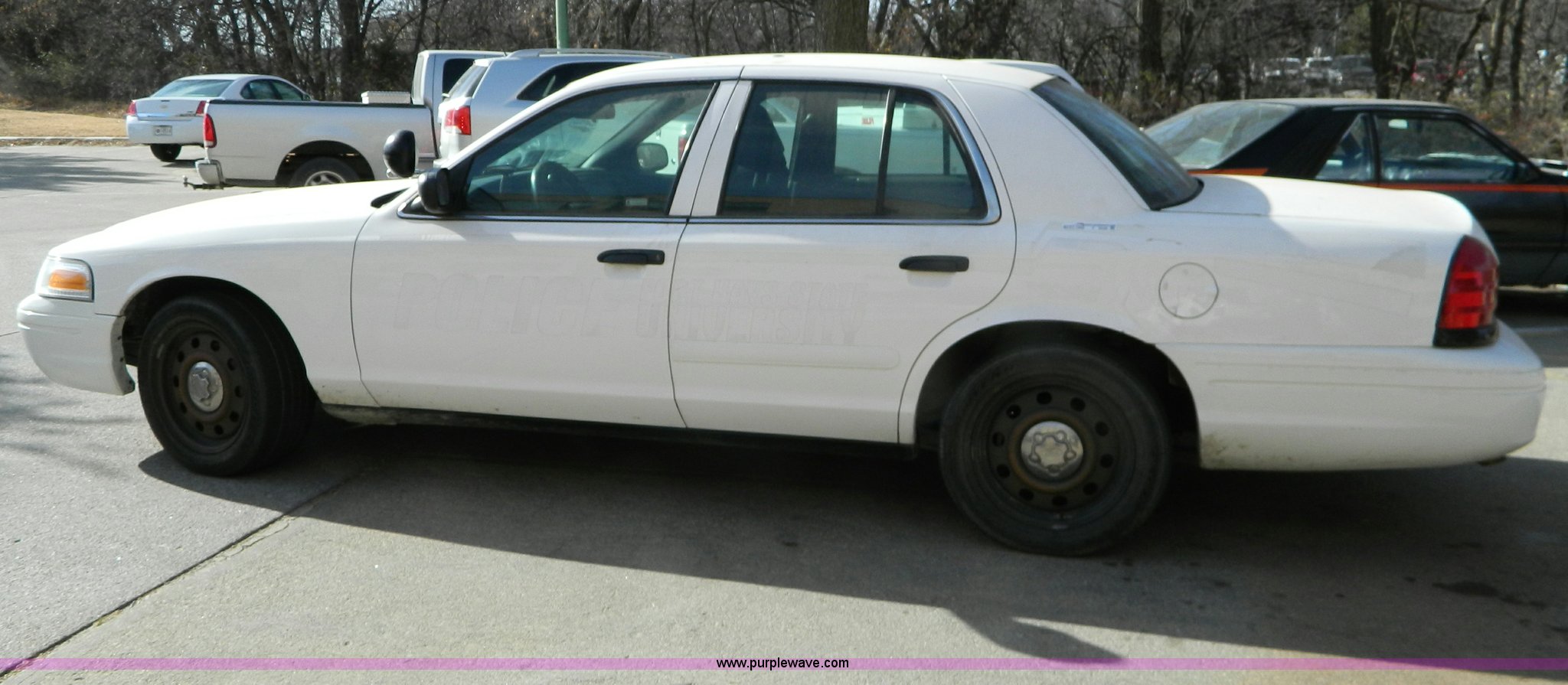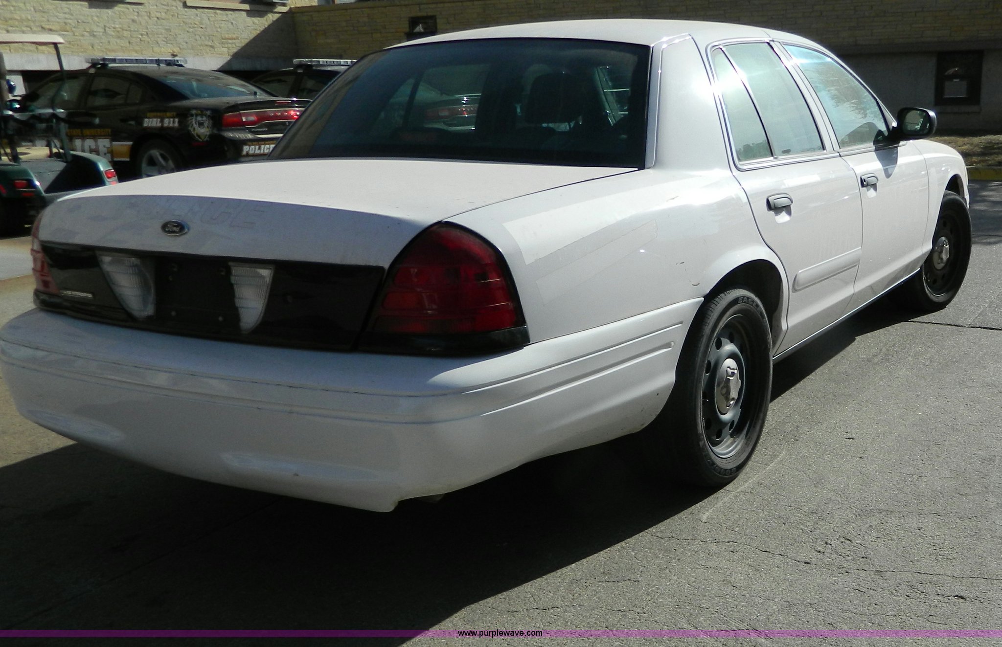 Purple Wave is selling a used Passenger Vehicle in Kansas. This item is a 2008 Ford Crown Victoria Police Interceptor with the following: 121,552 miles on odometer, 4.6L V8 EFI gas engine, Automatic transmission, AC and heat, Tilt, AM/FM, Power windows, locks, and mirrors, Cloth interior, P235/55R17 tires, Decal residue, Torn seat, Cosmetic damage, Roof plugs, ABS light is on, Brake light is on