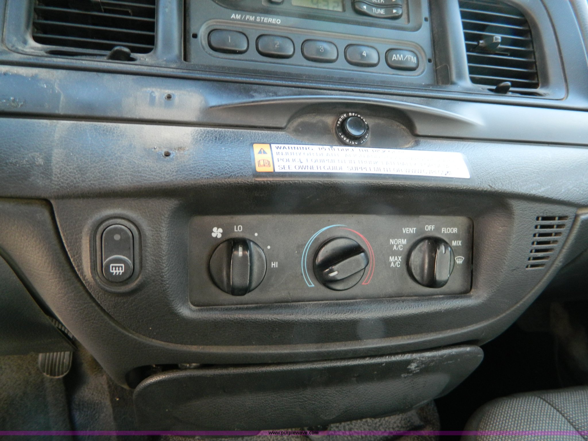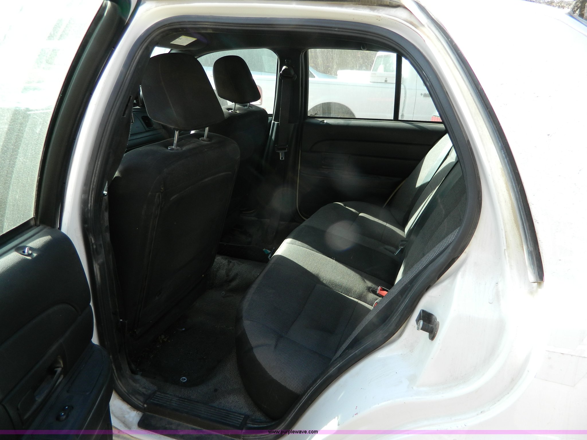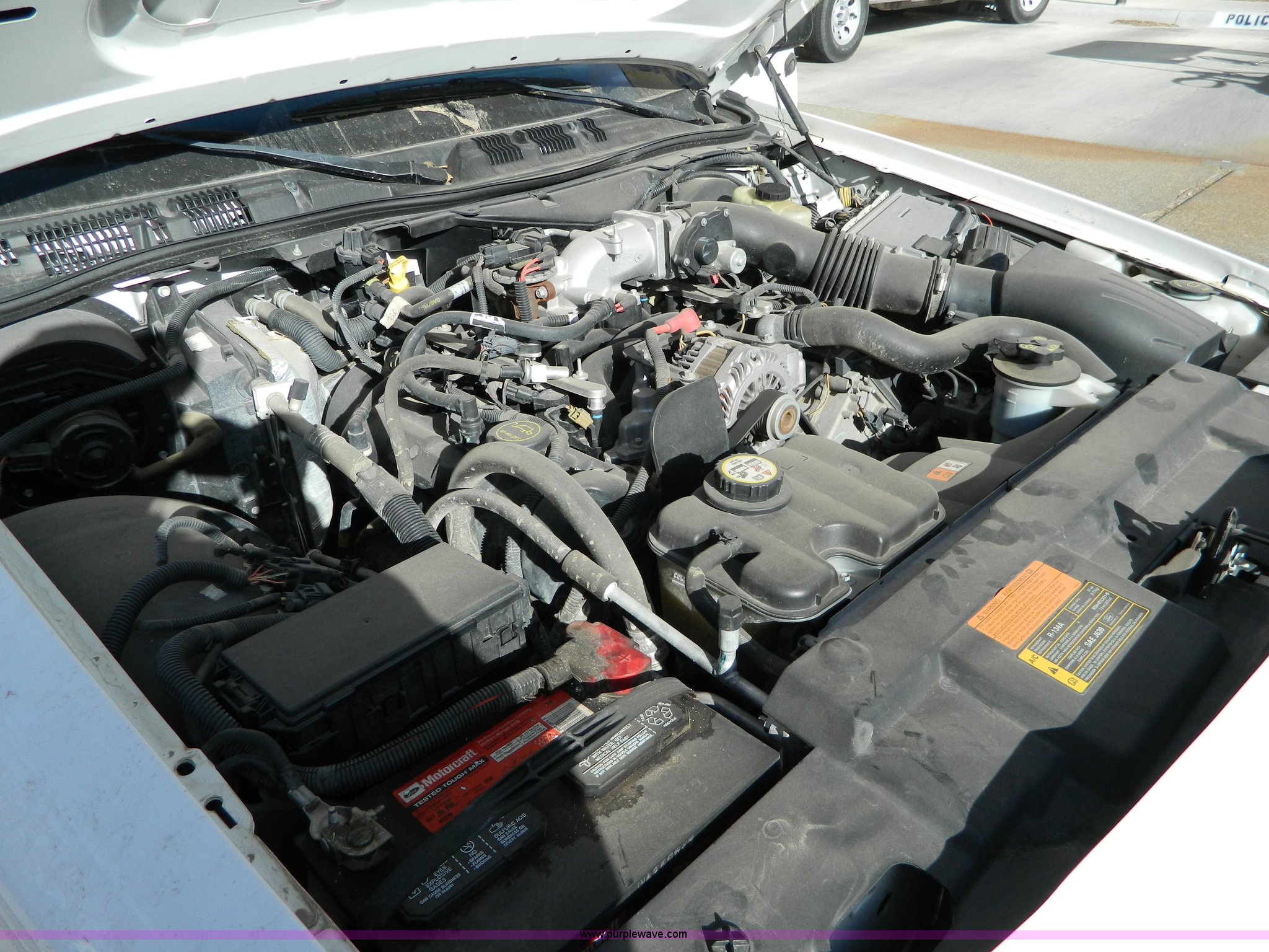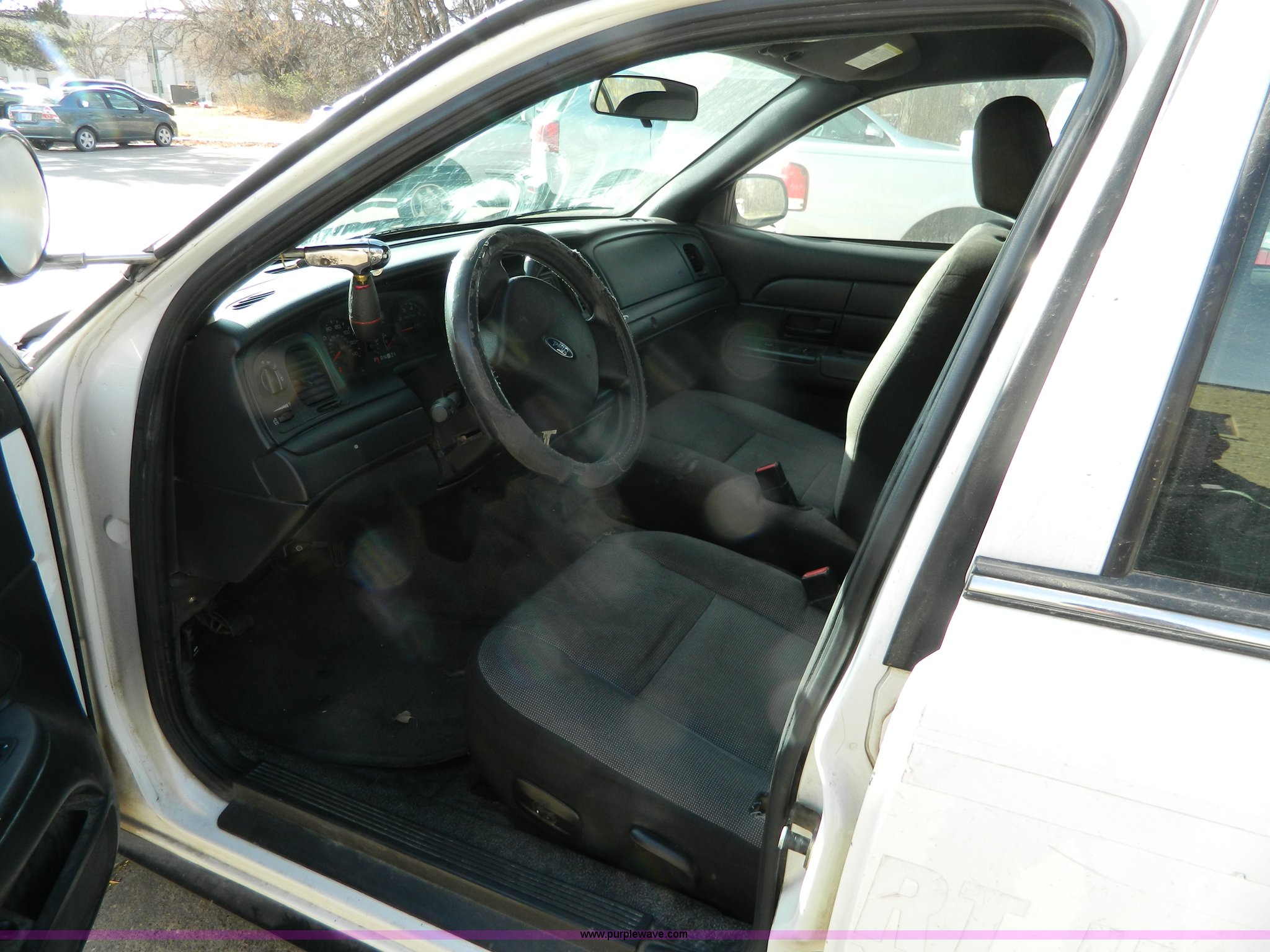 Purple Wave is selling a used Passenger Vehicle in Kansas. This item is a 2008 Ford Crown Victoria Police Interceptor with the following: 121,552 miles on odometer, 4.6L V8 EFI gas engine, Automatic transmission, AC and heat, Tilt, AM/FM, Power windows, locks, and mirrors, Cloth interior, P235/55R17 tires, Decal residue, Torn seat, Cosmetic damage, Roof plugs, ABS light is on, Brake light is on