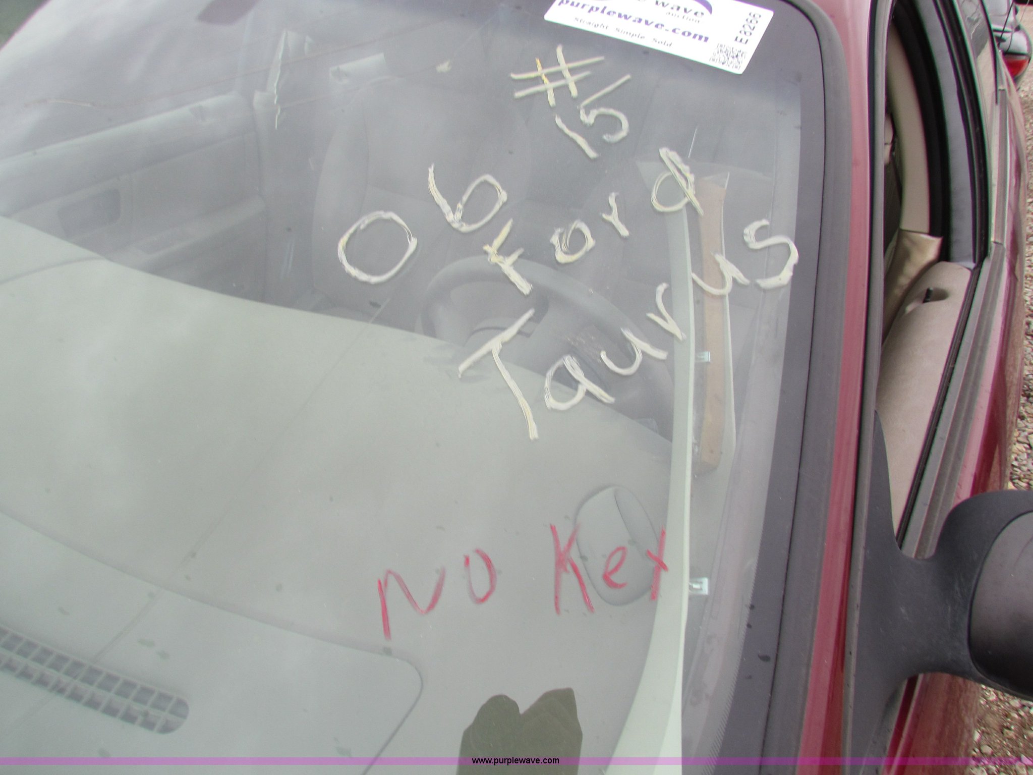 Purple Wave is selling a used Passenger Vehicle in Kansas. This item is a 2006 Ford Taurus SE with the following: Mileage unknown, 3.0L V6 OHV 12V gas engine, Automatic transmission, AC and heat, Tilt, Cruise, AM/FM/CD, Power windows, locks, mirrors, and seats, 215/60R16 tires, Wrecked, No keys, Unit# 15