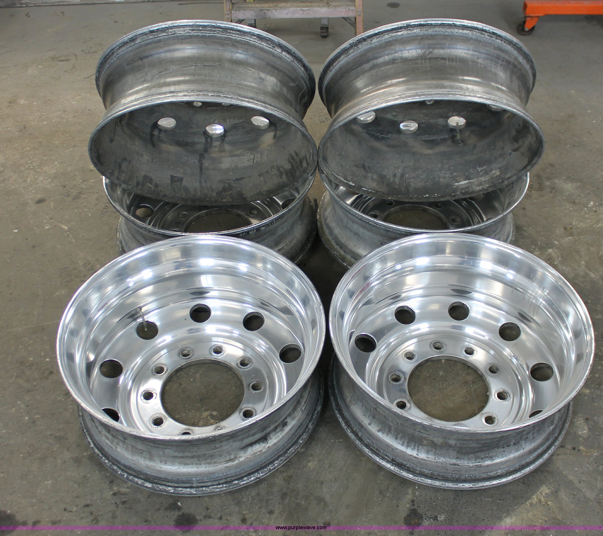 (6) Alcoa Forged 24.5 x 8.25 wheels. 7,300 lbs maximum load, 120 maximum psi, 15 degree DC, Valve stems included. Shipping quotes available. 2108 NE Meriden Road. Topeka, KS 66608