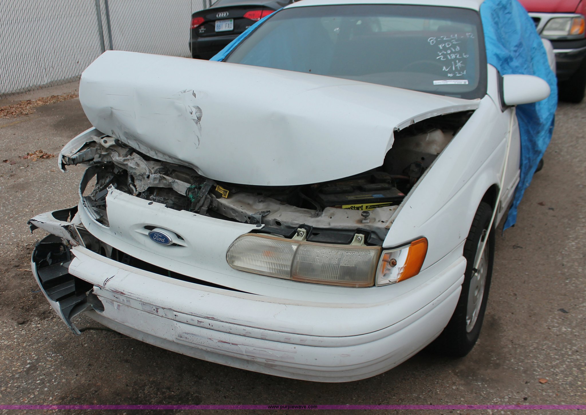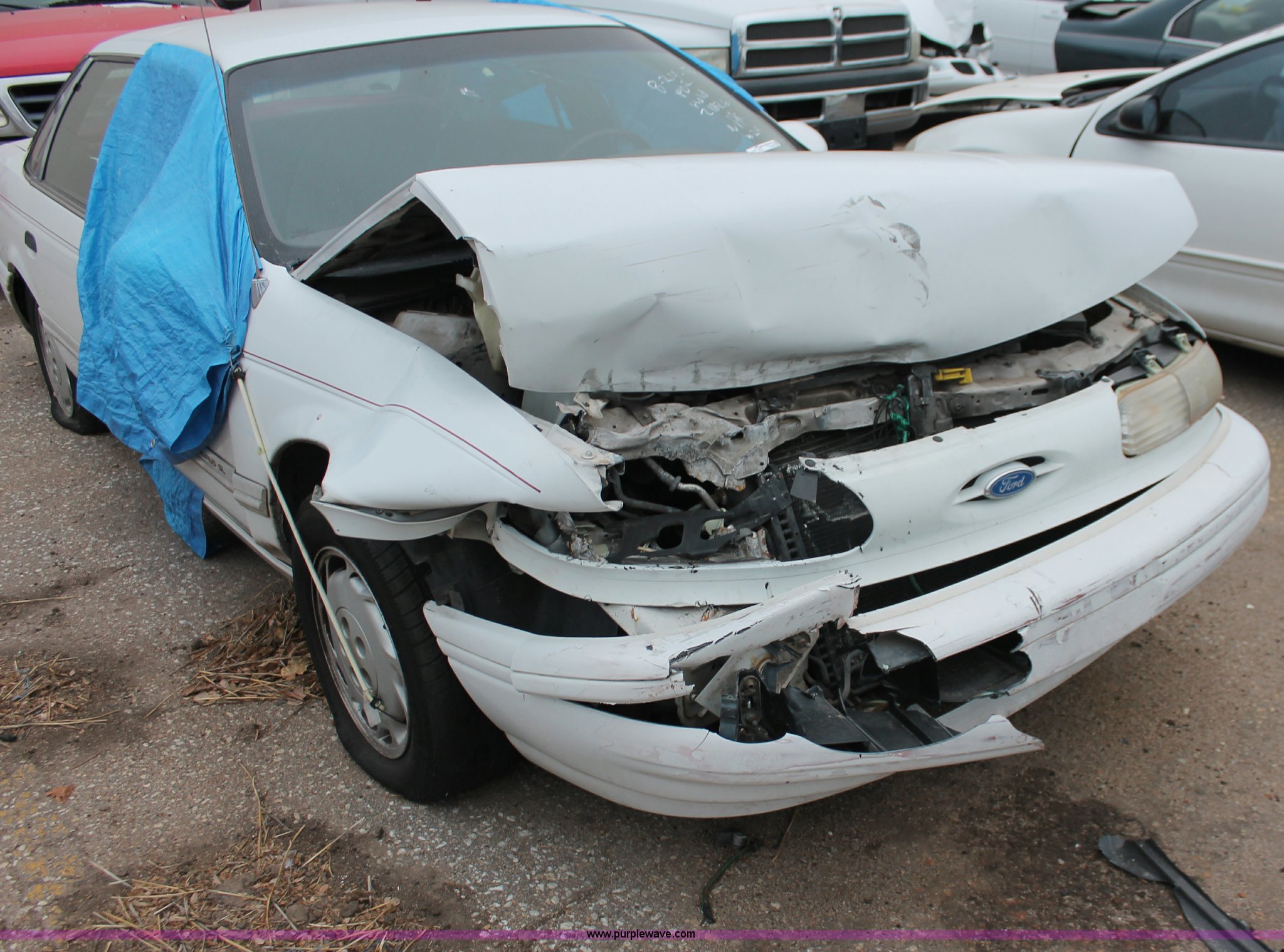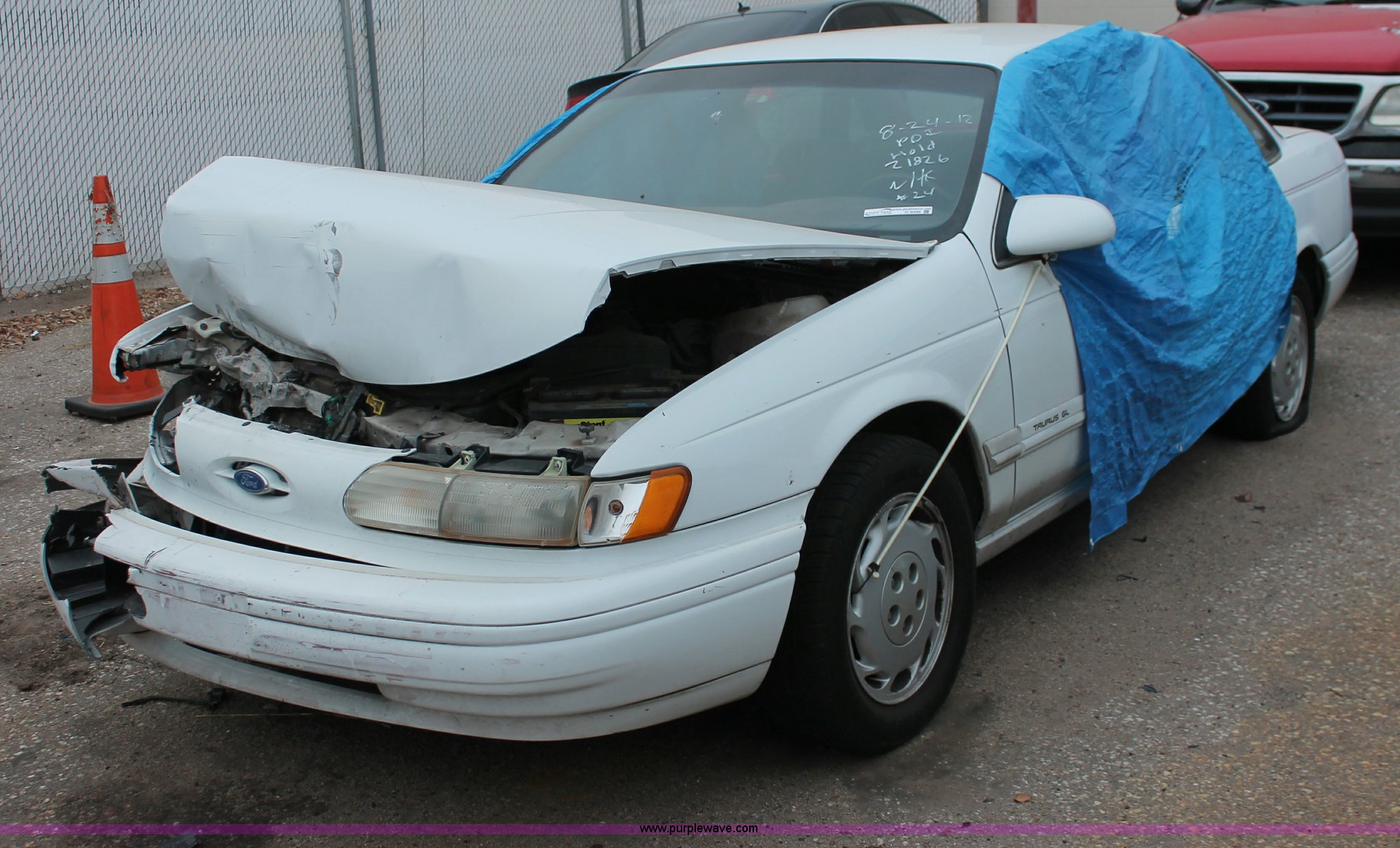 Purple Wave is selling a used Wrecked and Abandoned in Kansas. This item is a 1993 Ford Taurus GL with the following: 57,884 miles on odometer, 3.8L V6 OHV 12V gas engine, Automatic transmission, AC and heat, Tilt, Cruise, Pioneer AM/FM/CD, Power windows, locks, and mirrors, Cloth interior, Interior/exterior cosmetic damage, Front end damage, Cracked windshield, Windows missing, Flat tires, Air bags deployed, Unknown running condition, Case# 12C058754