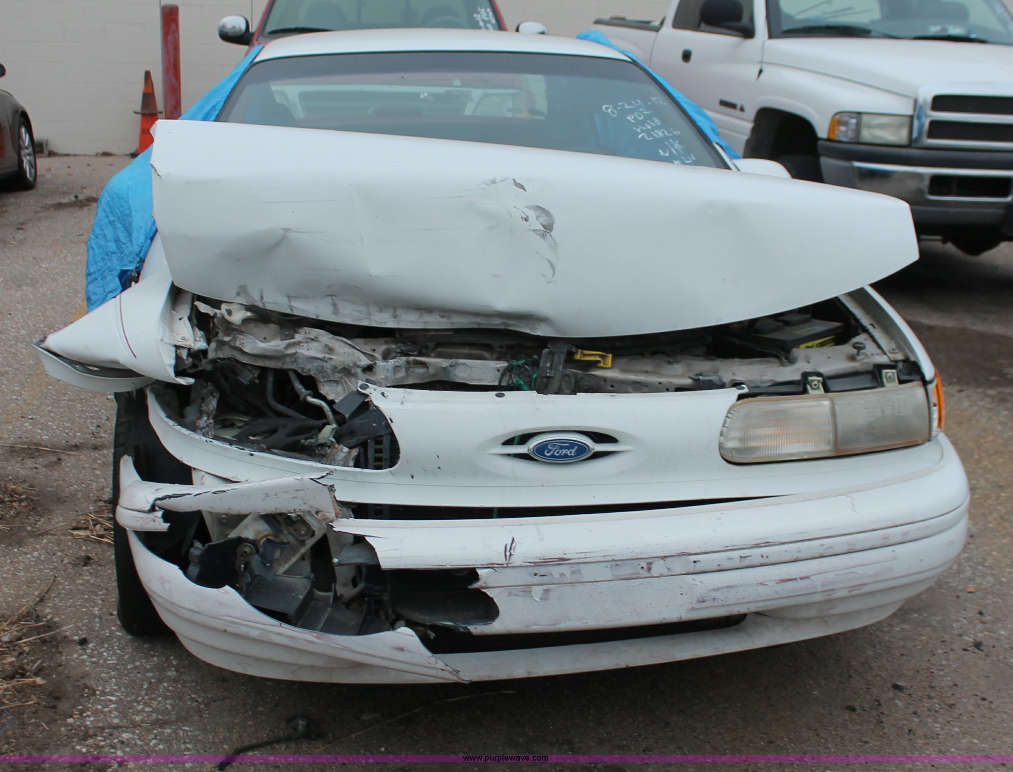 1993 Ford Taurus GL. 57,884 miles on odometer, 3.8L V6 OHV 12V gas engine, Automatic transmission, AC and heat, Tilt, Cruise, Pioneer AM/FM/CD, Power windows, locks, and mirrors, Cloth interior, Interior/exterior cosmetic damage, Front end damage, Cracked windshield, Windows missing, Flat tires, Air bags deployed, Unknown running condition, Case# 12C058754. Vehicle is abandoned. No additional information is available. Vehicle does not have keys unless notated otherwise in the item listing.. Buyer will receive paperwork indicating the abandoned status of the vehicle and which is sufficient to receive a title.. Items must be removed within 7 days following the close of the auction. Failure to do so will result in a $20 per day storage fee payable to the tow company. 1FALP524XPG181900. Shipping quotes available. Bud Roat Towing. 310 N Handley. Wichita, KS 67203