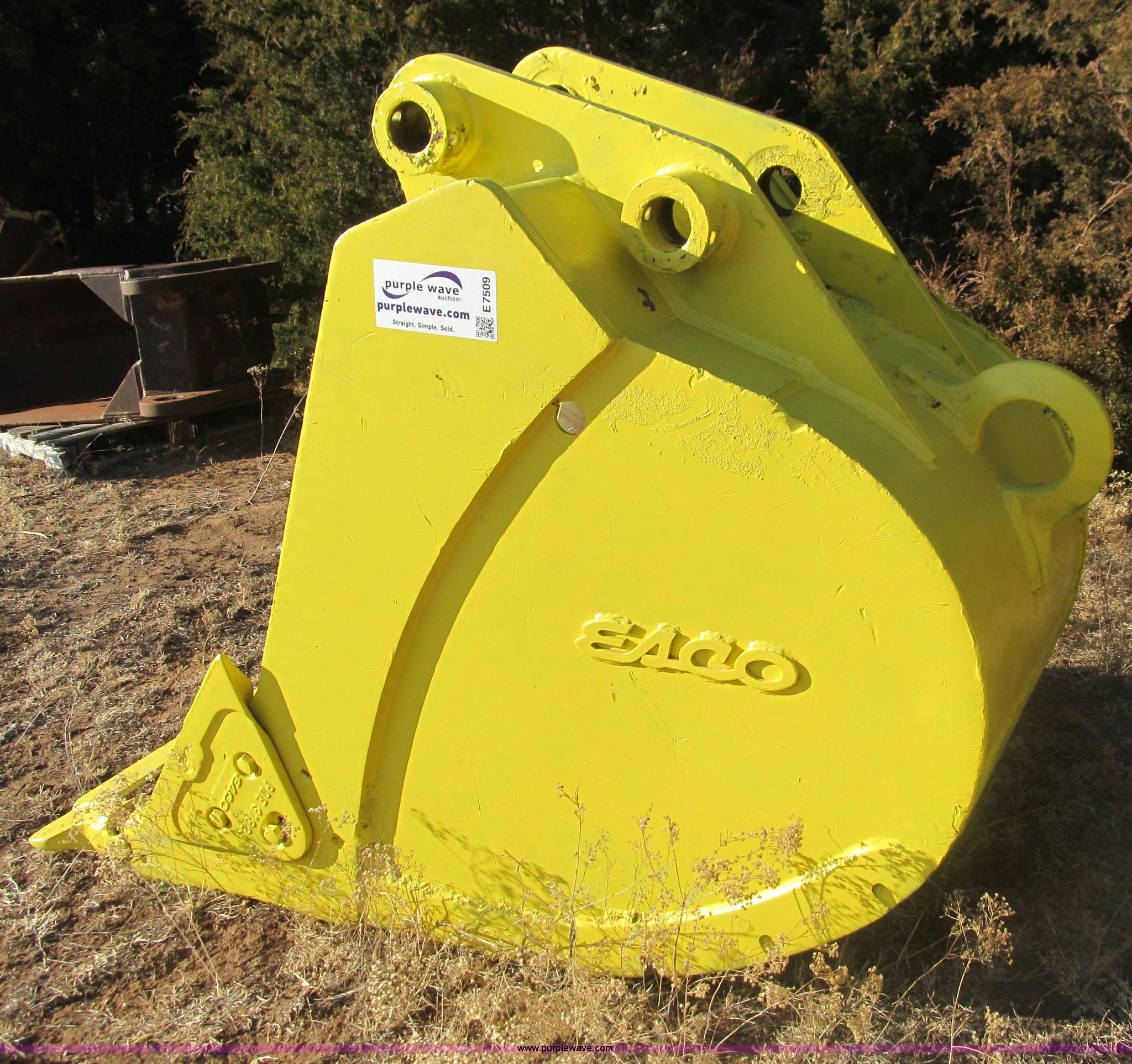 Purple Wave is selling a used Excavator Attach. in Oklahoma. This item is a Eaco excavator bucket with the following: 24"W, (4) teeth, 8" long, Side cutters, 12.75" ear distance, 3" channel holes