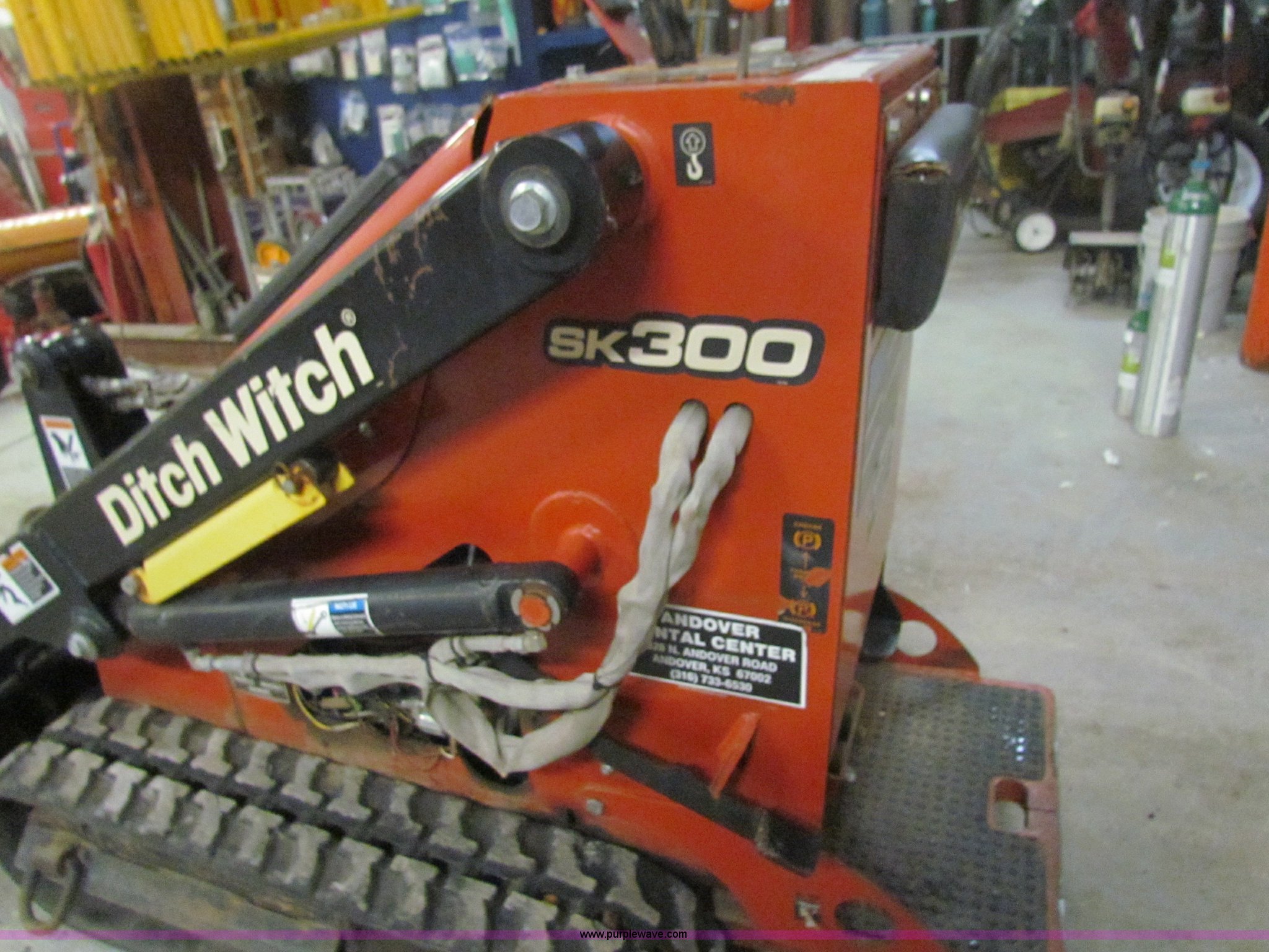 Purple Wave is selling a used Compact Utility Loader in Kansas. This item is a Ditch Witch SK300 walk behind track loader with the following: Kohler Command CH440 engine, Two year warranty, Forward and reverse, 3' bucket, Key start, Front remote, 58.2"L x 42.5"H, 870 lb tipping weight, Three mph ground speed, Rubber tracks, 1,420 lbs. base operating weight, Serial 1X4378