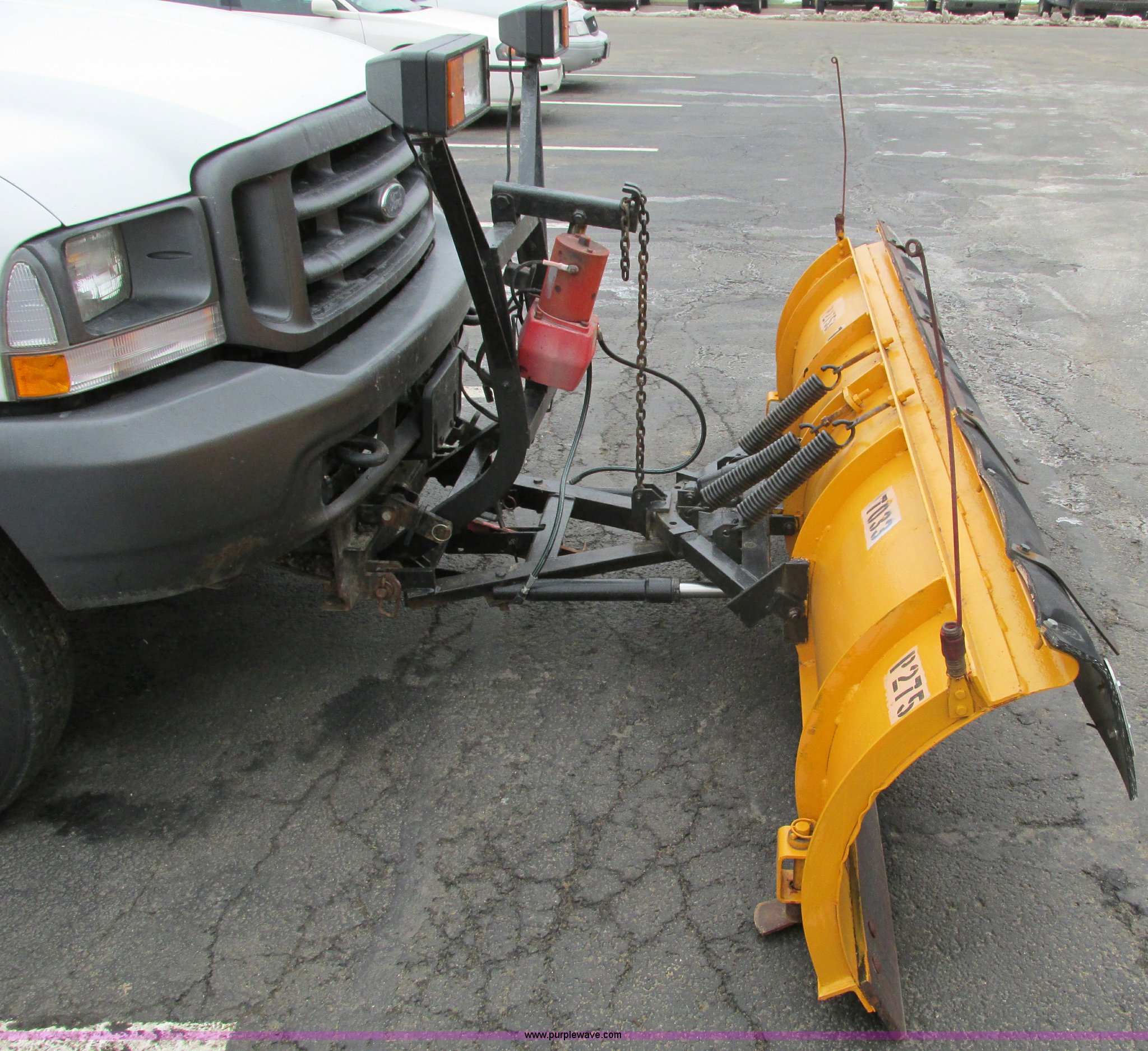 Purple Wave is selling a used 3/4 or 1 Ton Pickup or Van in Missouri. This item is a 2002 Ford F350 Super Duty pickup truck with the following: 166,491 miles on odometer, 7.3L V8 OHV 16V turbo diesel engine, Automatic transmission, AC and heat, AM/FM, Manual windows and locks, Vinyl interior, Long bed, 9' four-way pivot snow plow, Smooth cutting edge and break-away springs, Work lights, Flink salt spreader with calcium tanks, Model 8HSU, 8'L x 4.5'W, Grate over top, Hydraulic operated, Serial 1152, Receiver hitch, Trailer wiring, 215/85R16 tires, CB radio not included, Unit# 7033